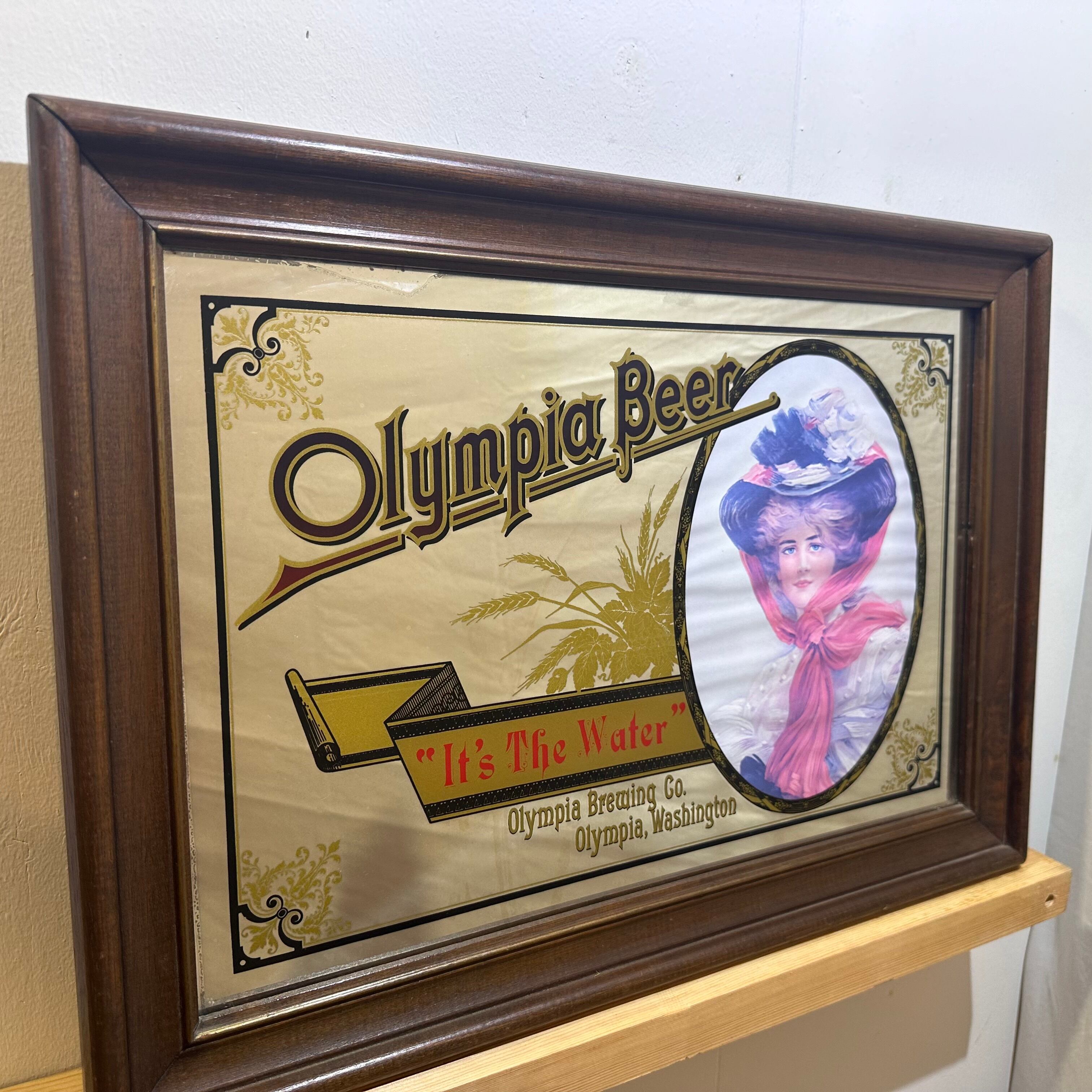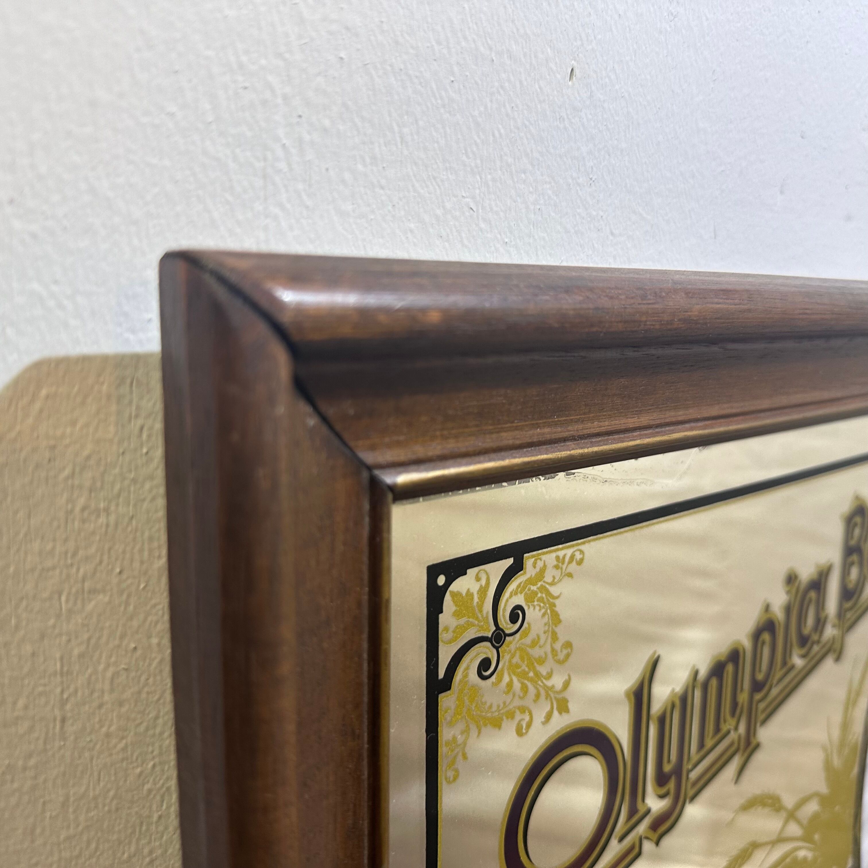 アメリカのビールメーカー「オリンピアビール」のパブミラーです。オリンピア醸造会社は、アメリカ合衆国北西部のオリンピア近郊のワシントン州タムウォーターにある醸造所です。この美しいパブミラーは、OLYMPIA BEERの象徴的なデザインを引き立てるアイテムで、お部屋やバーのインテリアにぴったりです。ビール愛好家にはたまらない存在感を持ったこのミラーは、空間に特別な雰囲気を加えます。