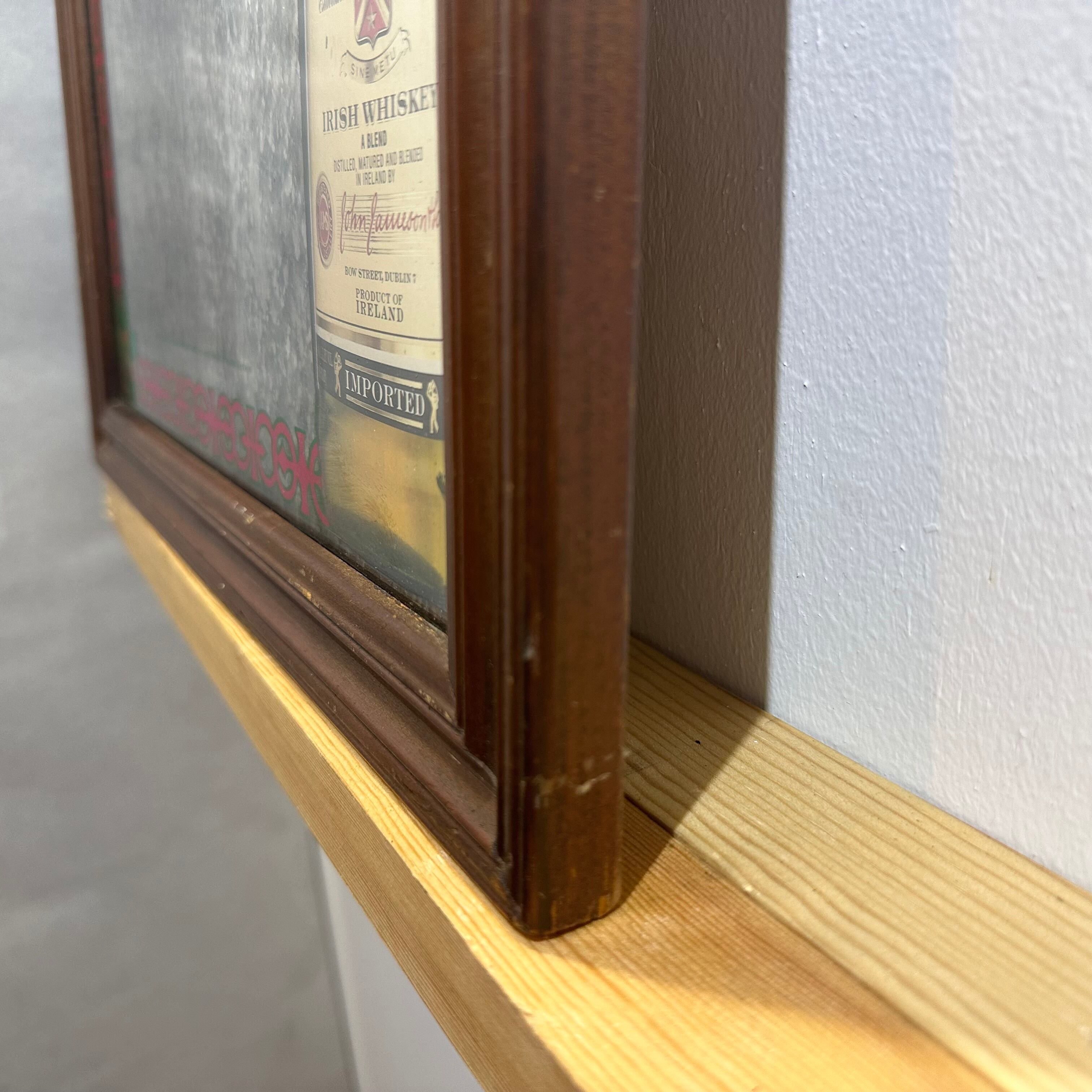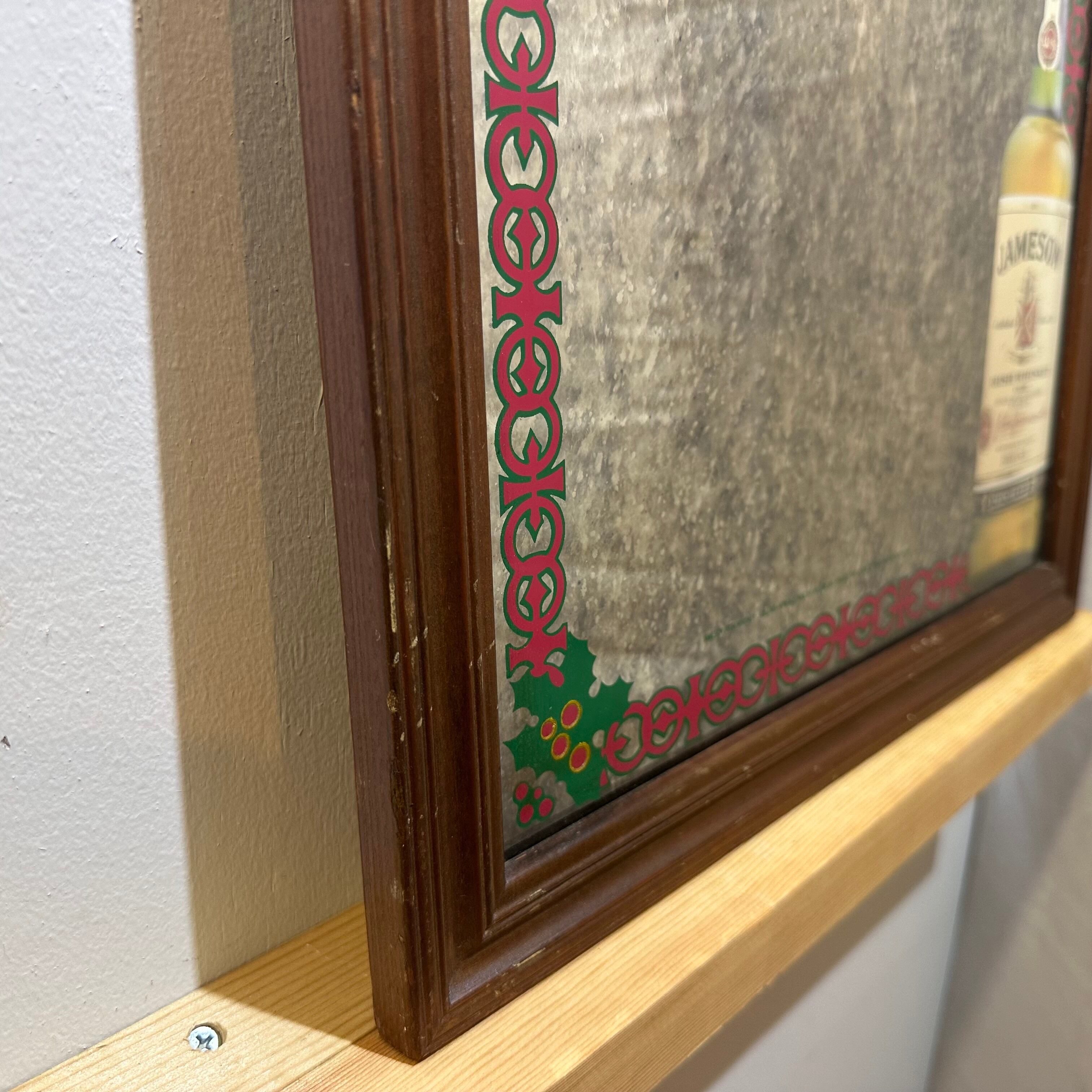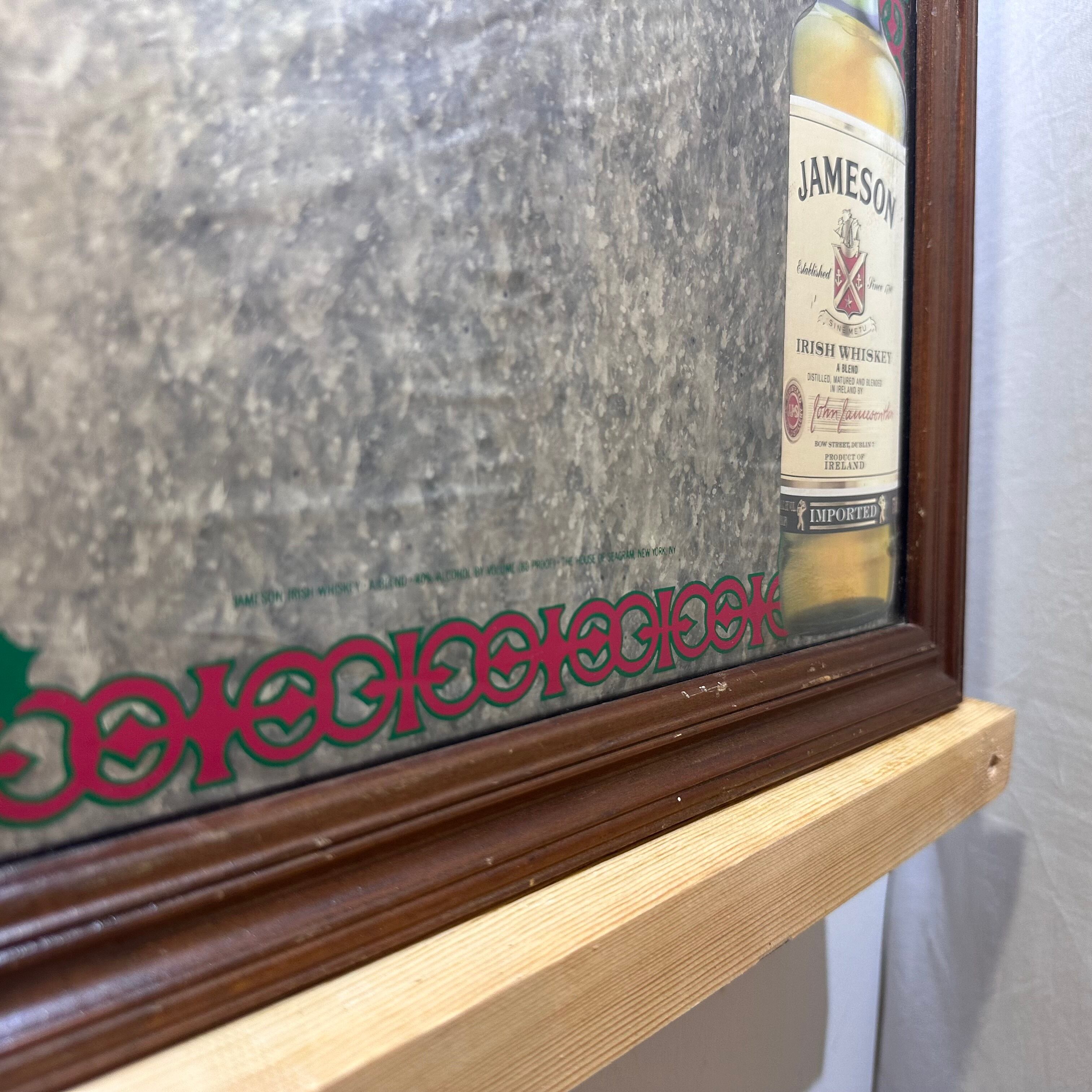 「ジェムソン・アイリッシュ・ウイスキー」通称ジェムソンのパブミラーです。「ジェムソン」は、スコットランドからアイルランドへ渡ったジョン・ジェムソンによって1780年に生み出されました。ピートを使わず、大麦、モルト、グレーンの3つを原料とし、3回蒸留によって造られる「ジェムソン」の豊かな香味とスムースな味わいは、No.1アイリッシュウイスキーとして世界中で愛されています。アイルランドの名酒「JAMESONウイスキー」の魅力を引き立てるこのミラーは、パブやリビングルームのインテリアに最適なアイテムです。独特のデザインが施されたこのミラーは、ウイスキー愛好家にとって特別な存在感を与え、お部屋を一層引き立てます。