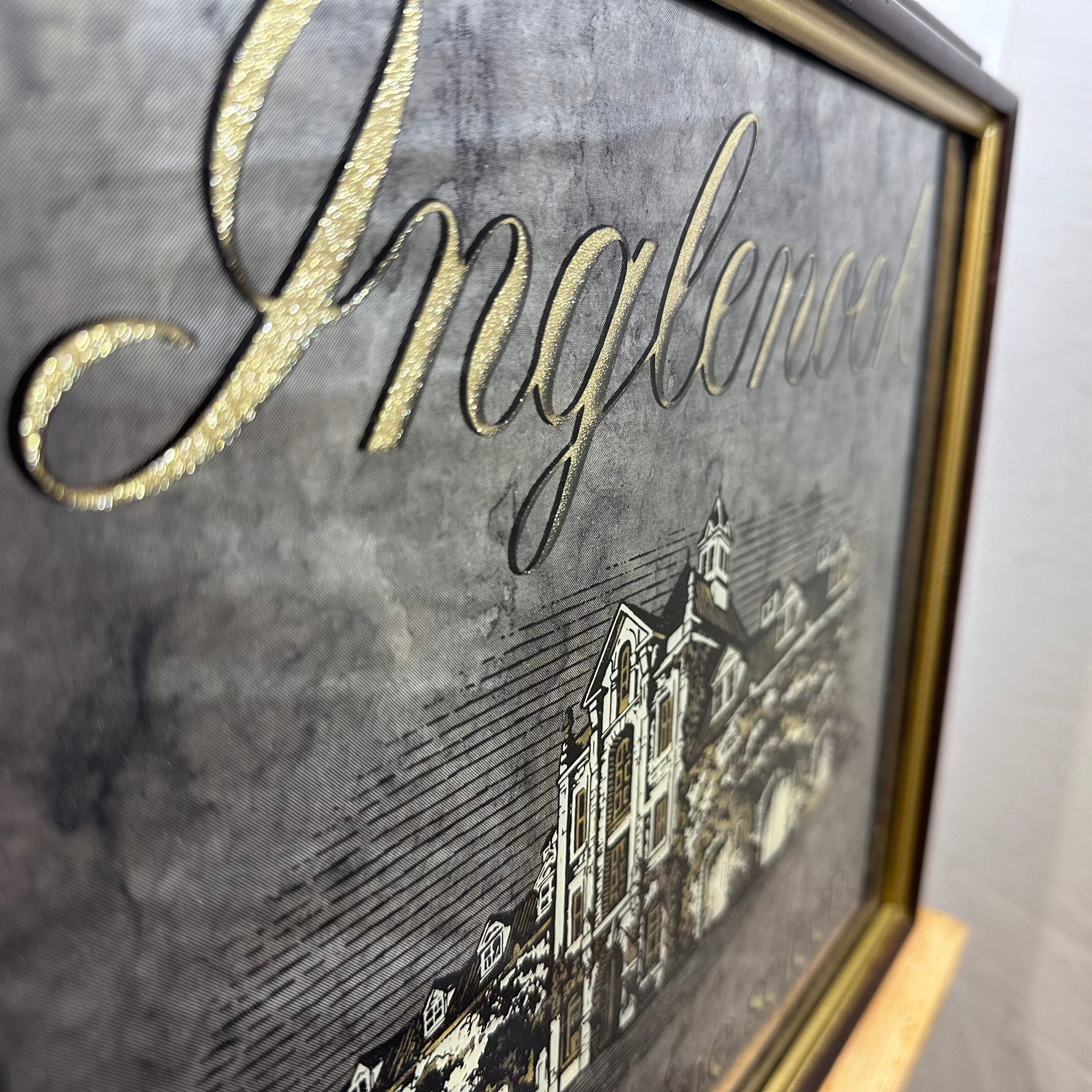 アメリカ カリフォルニア州ナパ・バレーのワイナリー「イングルヌック」のパブミラーです。フレームの色も相まって、パブミラーの中では珍しく上品なデザインとなっております。お部屋や店舗のインテリアに是非いかがでしょうか。