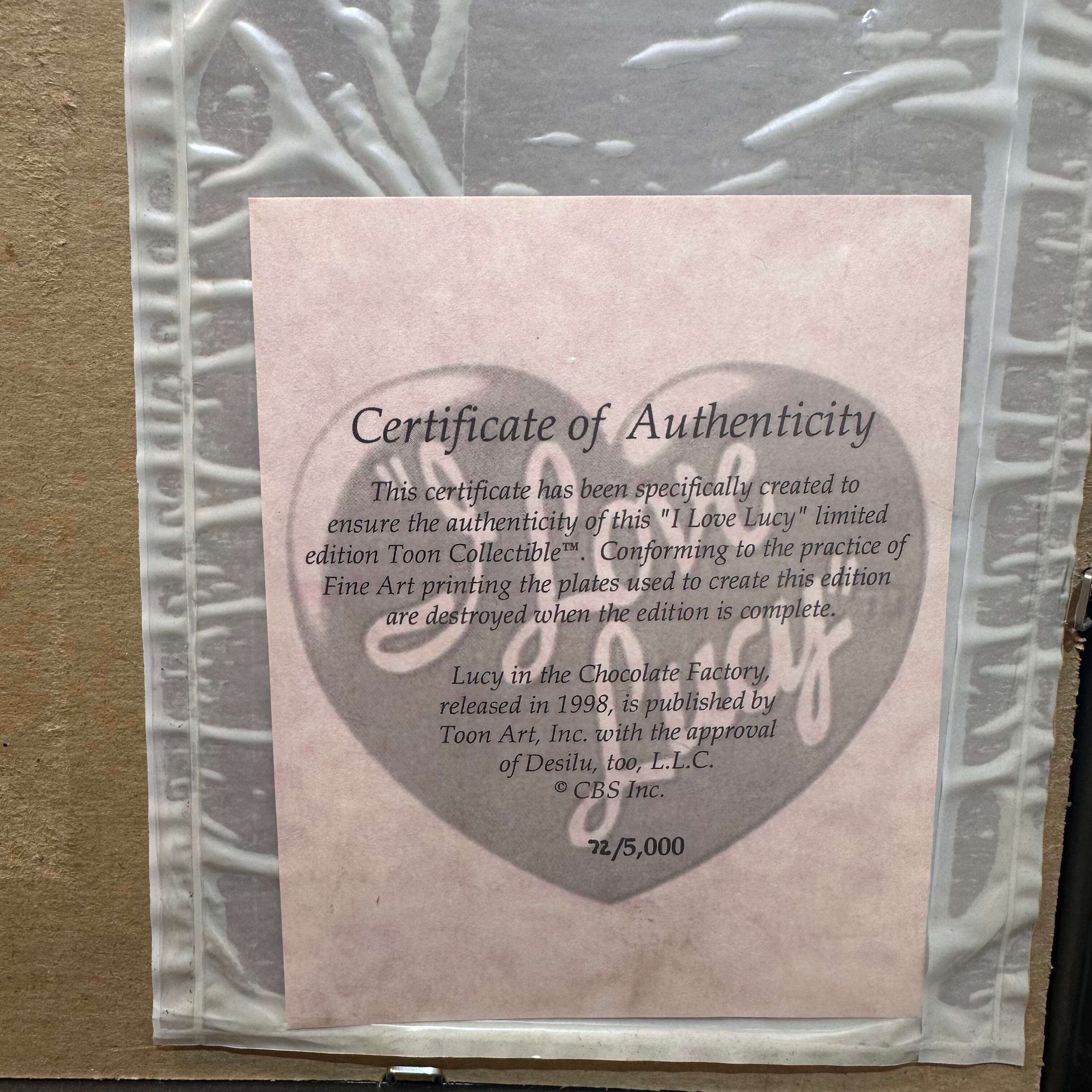 アメリカで1951年〜1957年に渡って放送された、「I Love Lucy アイ・ラブ・ルーシー」のアートポスターです。チョコレートファクトリーで働く、天真爛漫なルーシーが描かれております。本商品は、アート作品の真正性を証明する証明書付きのポスターです。美術品を愛する方や、独自の空間を演出したい方に最適なアイテムとなっております。お部屋やオフィスで、印象的なインテリアとしてご利用いただけます。ご自宅やお店のインテリアにいかがでしょうか。フレーム付ですのでデザインを気に入った方は是非インテリアとしてご活用ください。