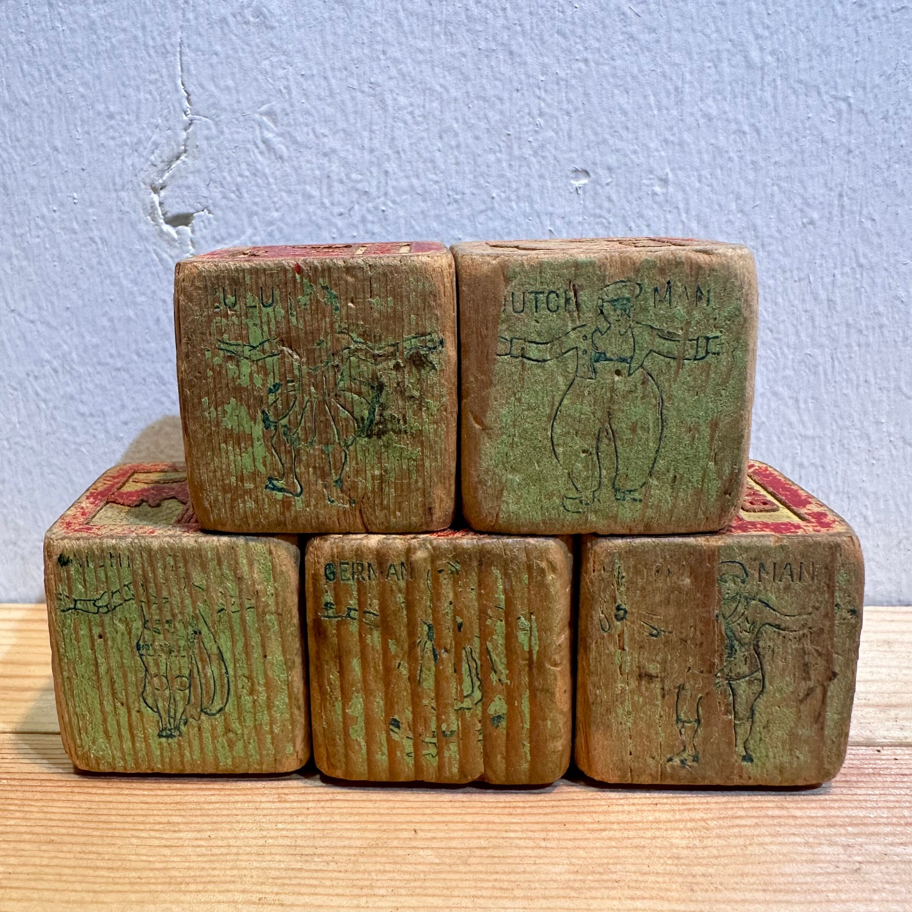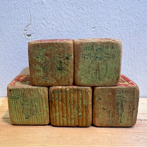 木の温もりを感じる「Wooden Toy Blocks ウッドブロック5個セット」です。木製で出来たブロックとなります。アメリカで仕入を行ったアイテムです。ヴィンテージ品のため、経年からの汚れ、細かな傷等がありますが、ヴィンテージならではの雰囲気のあるアイテムとなりますので、ディスプレイにいかがでしょうか。