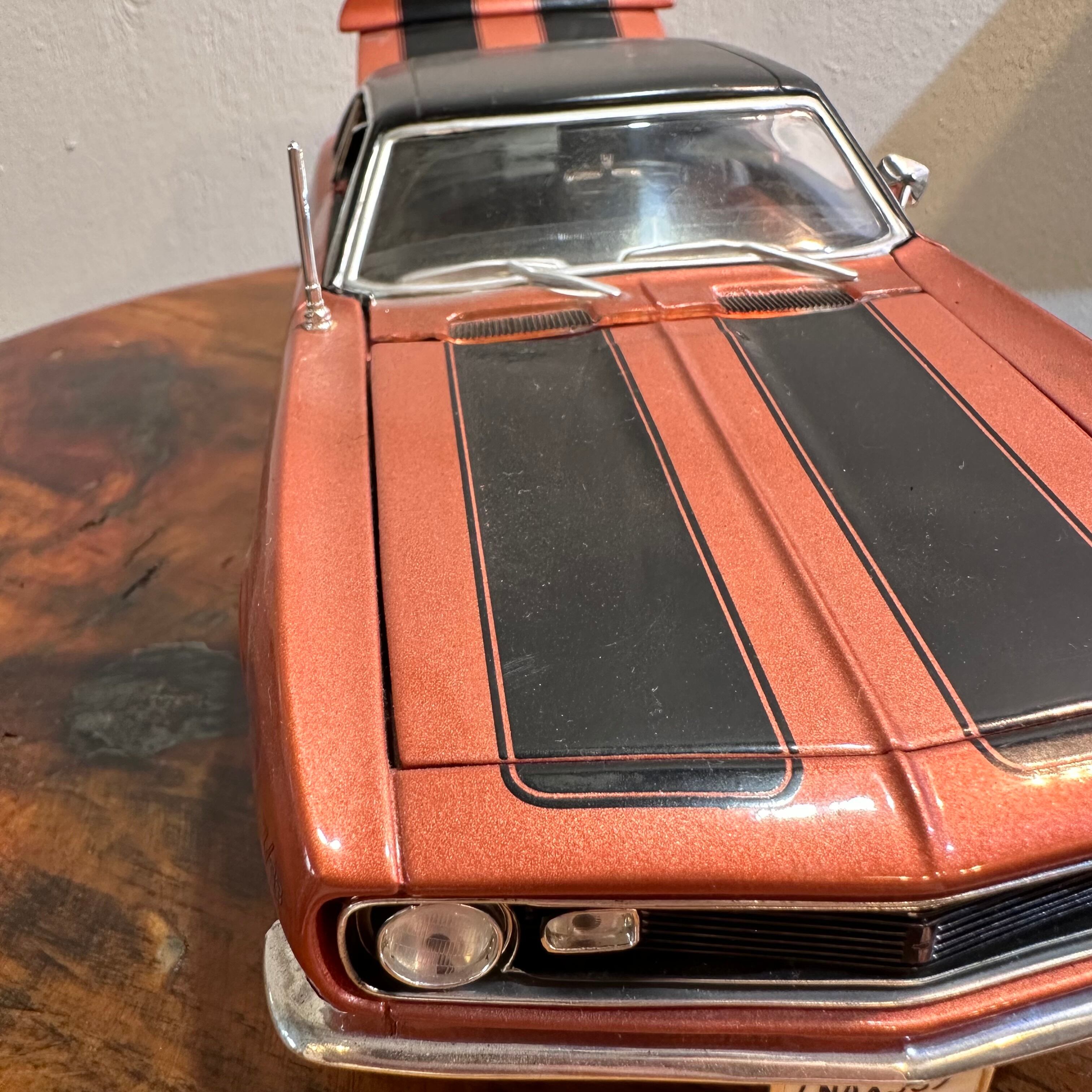 アメリカのカー文化を代表する「Chevrolet CamaroZ28ミニカー」です。洗練されたデザインと精巧なディテールが魅力のこのミニカーは、カーコレクターや自動車ファンにとって必見のアイテムとなっております。実車の迫力をギュッと詰め込んだような存在感で、インテリアとしても素敵なアクセントになること間違いなしです!