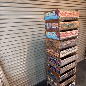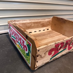 側面や底面には薄い板に紙が貼り付けられています。実際に使用されていた物ですので、小傷や汚れ、木の欠けが見受けられますが、これがヴィンテージならではの素材感として雰囲気づくりに貢献しています。