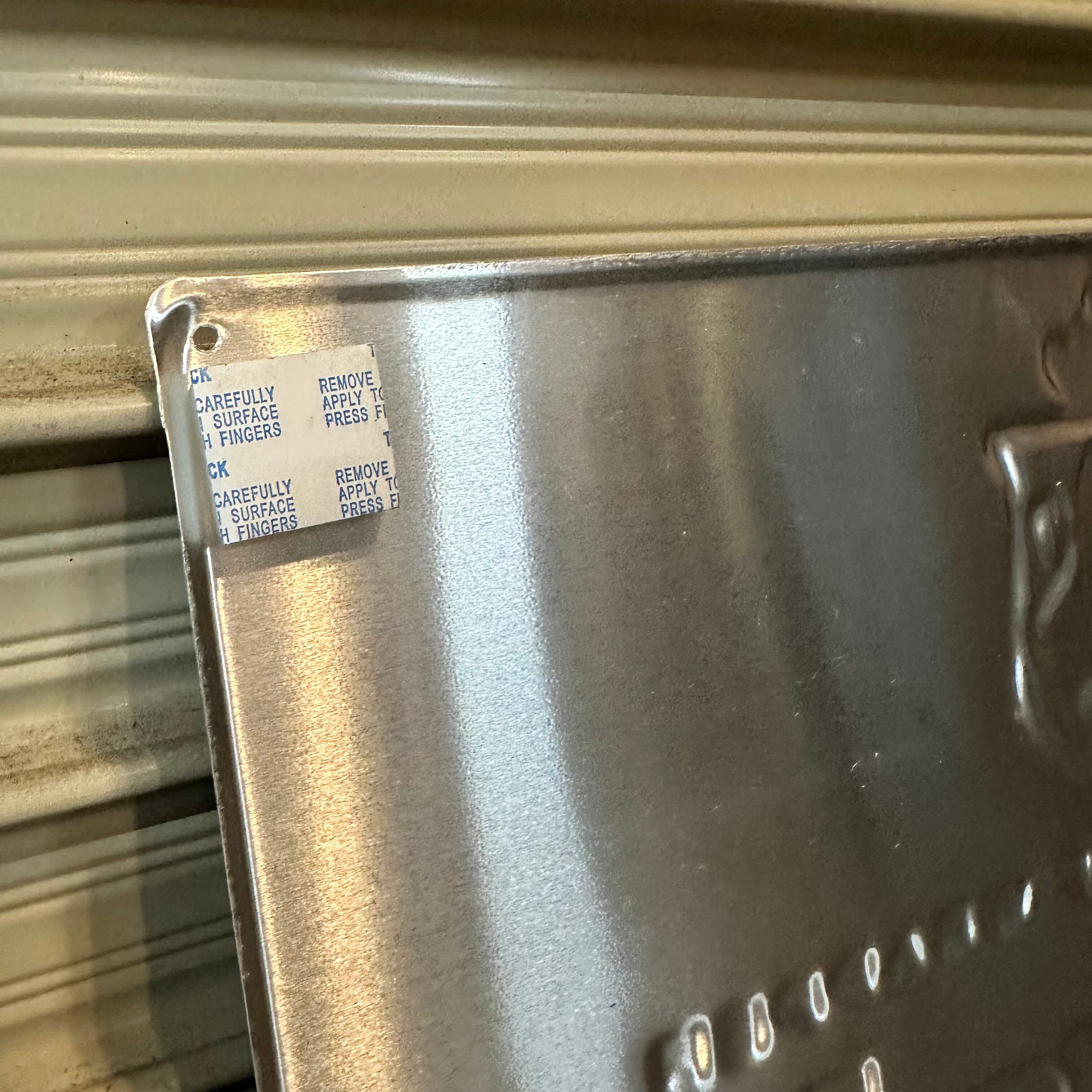 ブラックとゴールドのカラーリングでとてもカッコよく、非常に状態が良いです。お部屋やお店のインテリアにいかがでしょうか。エンボス加工が施されております。そのまま壁掛けすることはできませんが、ビスなどで壁に取り付けていただくか、裏面に両面テープが付いておりますので、壁に直接貼り付けることができます。
