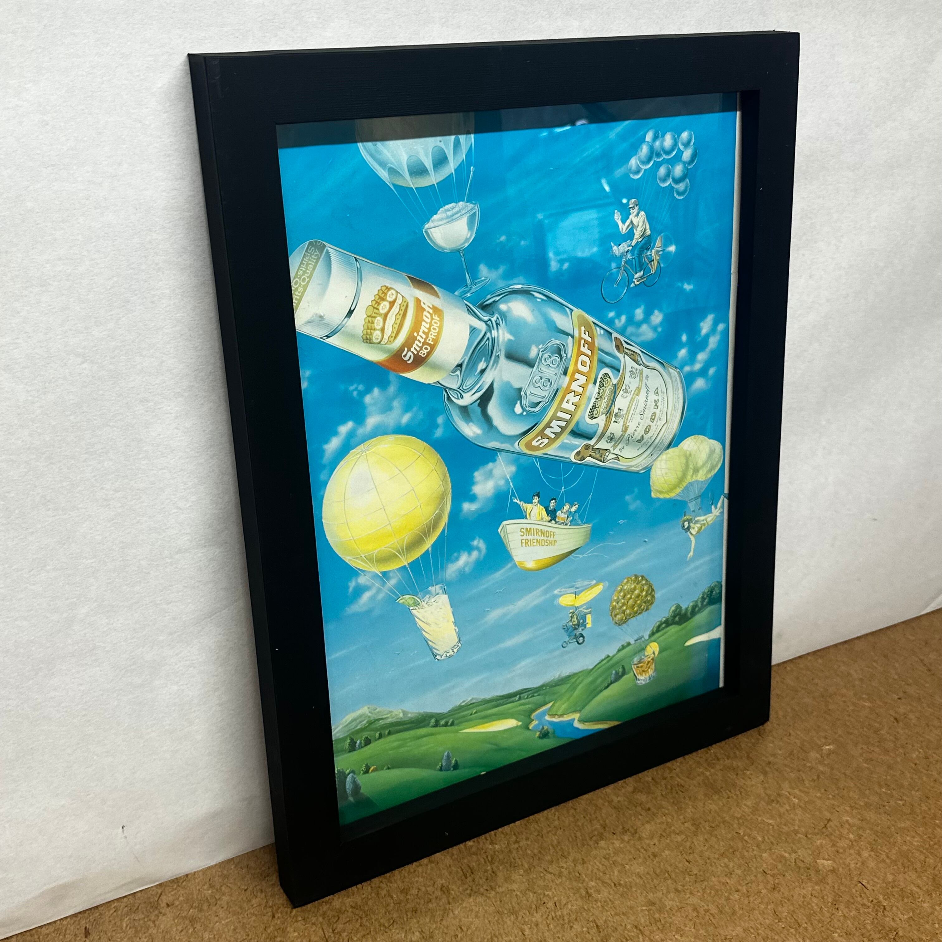 実際にアメリカのコンビニでプロモーション用としてコンビニで使用されていたスミノフのポスターです。紙製ですのであまりポスターの状態は良くないですが、色落ち等も含めて当時の雰囲気を感じていただければと思います。フレーム付きでの販売となりますので簡単にお部屋やお店に飾っていただけます。フレームはオーナーの手作りです。しっかりとした木製のフレームですので重量感もあり雰囲気づくりにぴったりです。