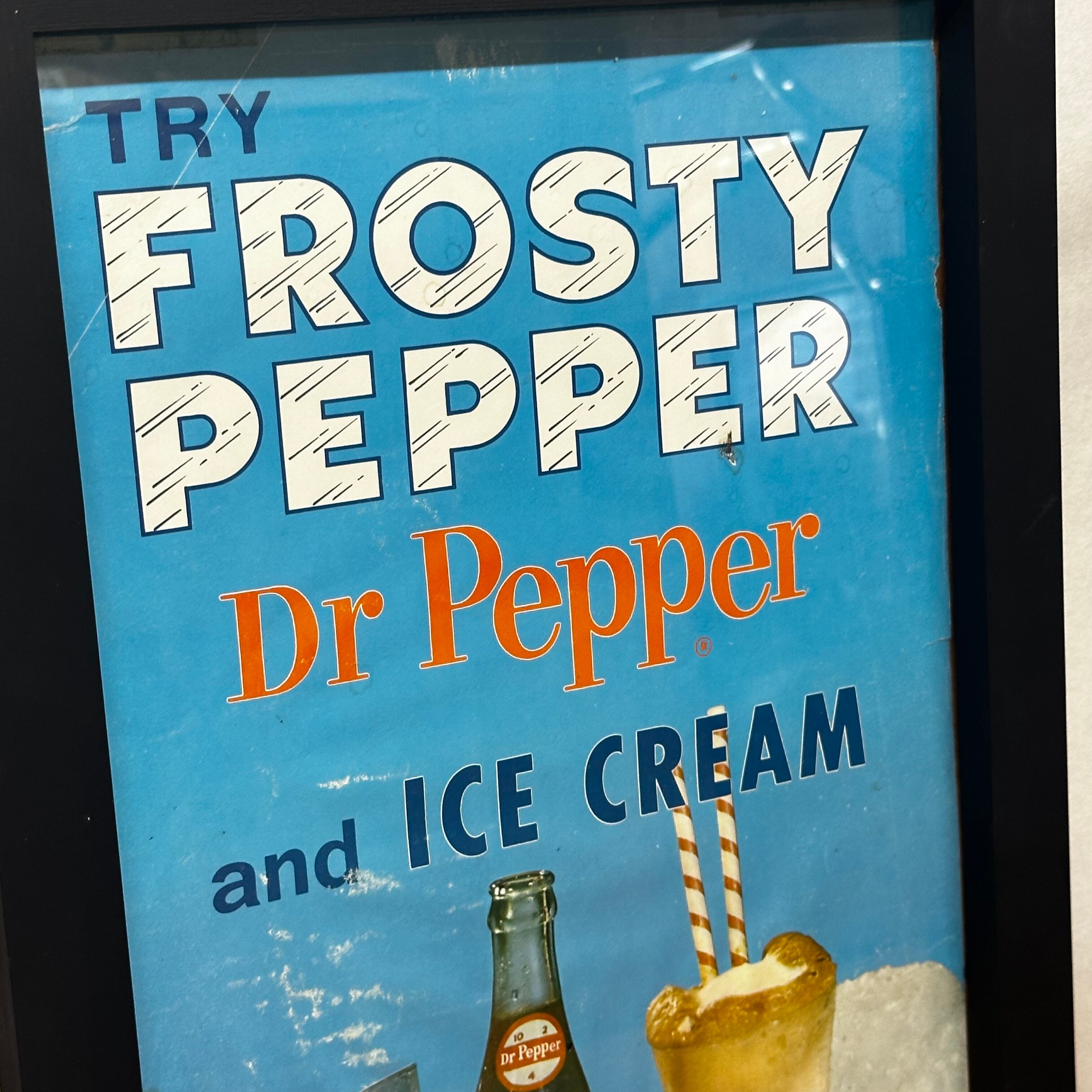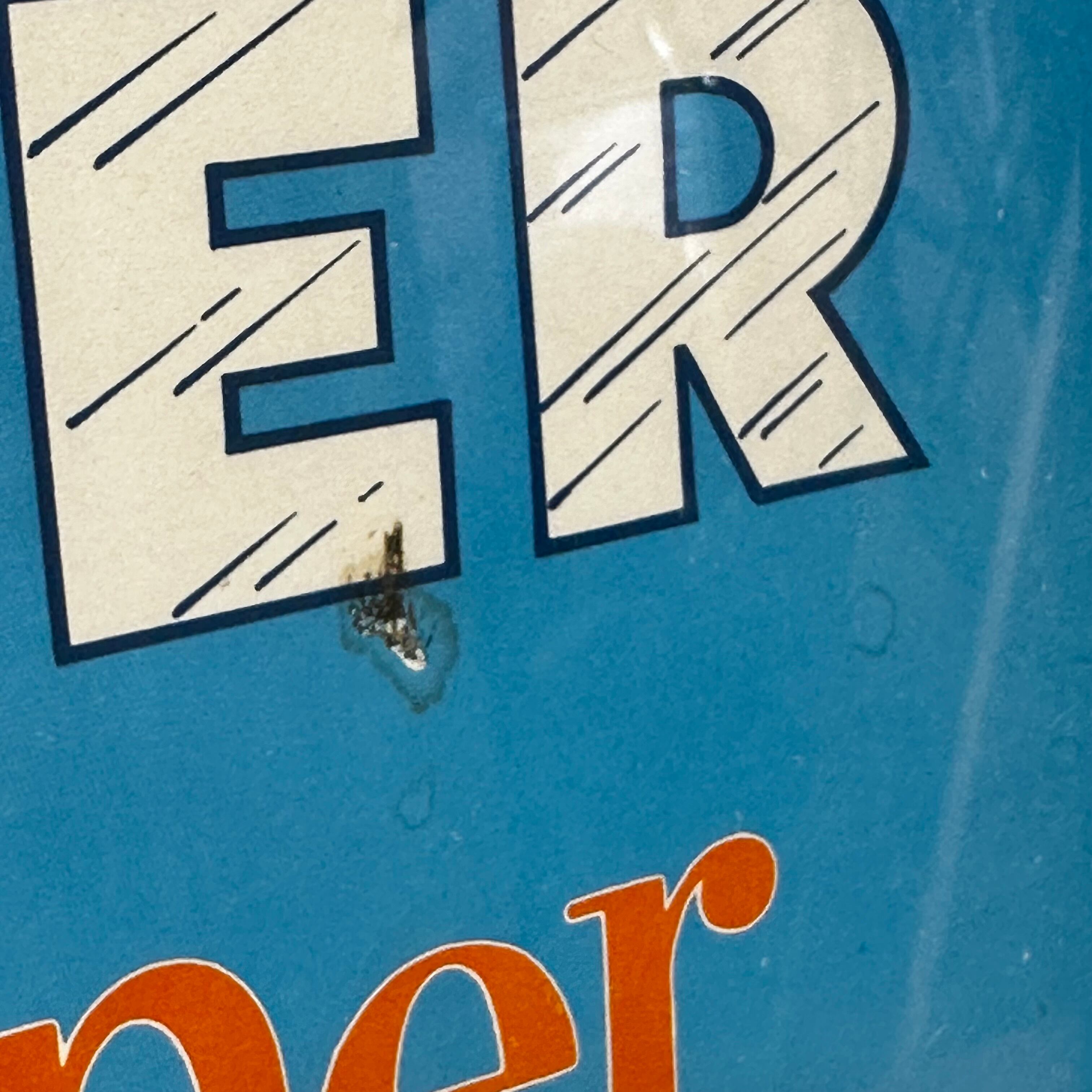 実際にアメリカのコンビニでプロモーション用としてコンビニで使用されていたDr.Pepperのポスターです。紙製ですのであまりポスターの状態は良くないですが、色落ち等も含めて当時の雰囲気を感じていただければと思います。フレーム付きでの販売となりますので簡単にお部屋やお店に飾っていただけます。フレームはオーナーの手作りです。しっかりとした木製のフレームですので重量感もあり雰囲気づくりにぴったりです。