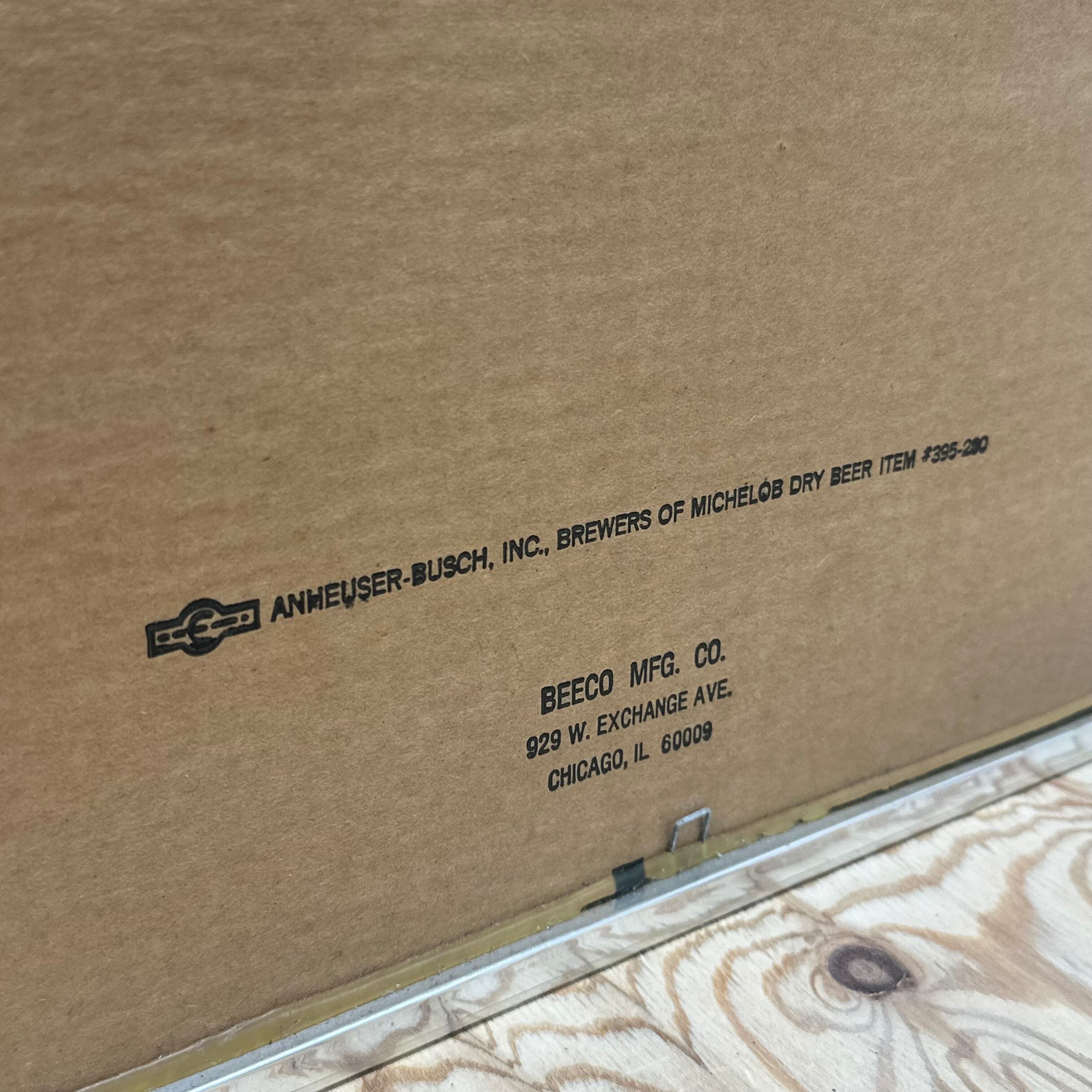 「MICHELOB DRY」のパブミラーです。ミケロブはバドワイザーで有名な「アンハイザーブッシュ社」から発売されているペールラガービールです。1896年に販売が開始されて以来、1バドワイザーよりも苦味やコクを重視し、味わって飲むビールとして親しまれています。ペールエールとは、上面発酵で醸造されるビールです。イギリス発祥で、パブ文化がある国では主流のビールとなっています。