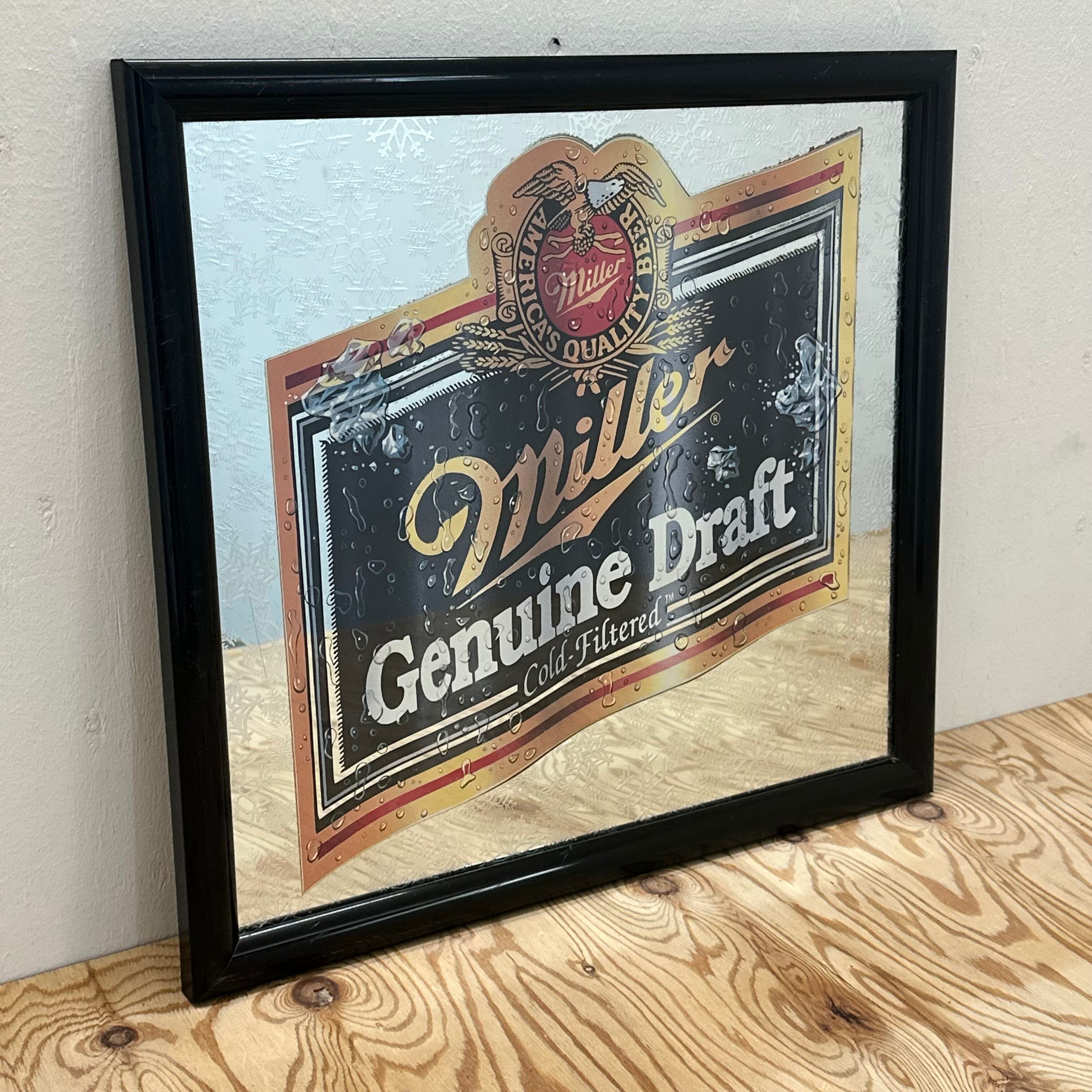 現在アメリカンビンテージ市場で人気が出てきている「Miller Beer」のパブミラーです。ミラーらしい、黒を基調とした強くクールなデザインが印象的です。雪の結晶のデザインがミラー面に施されており魅力的です。お部屋やガレージ、店舗のインテリアに是非いかがでしょうか。