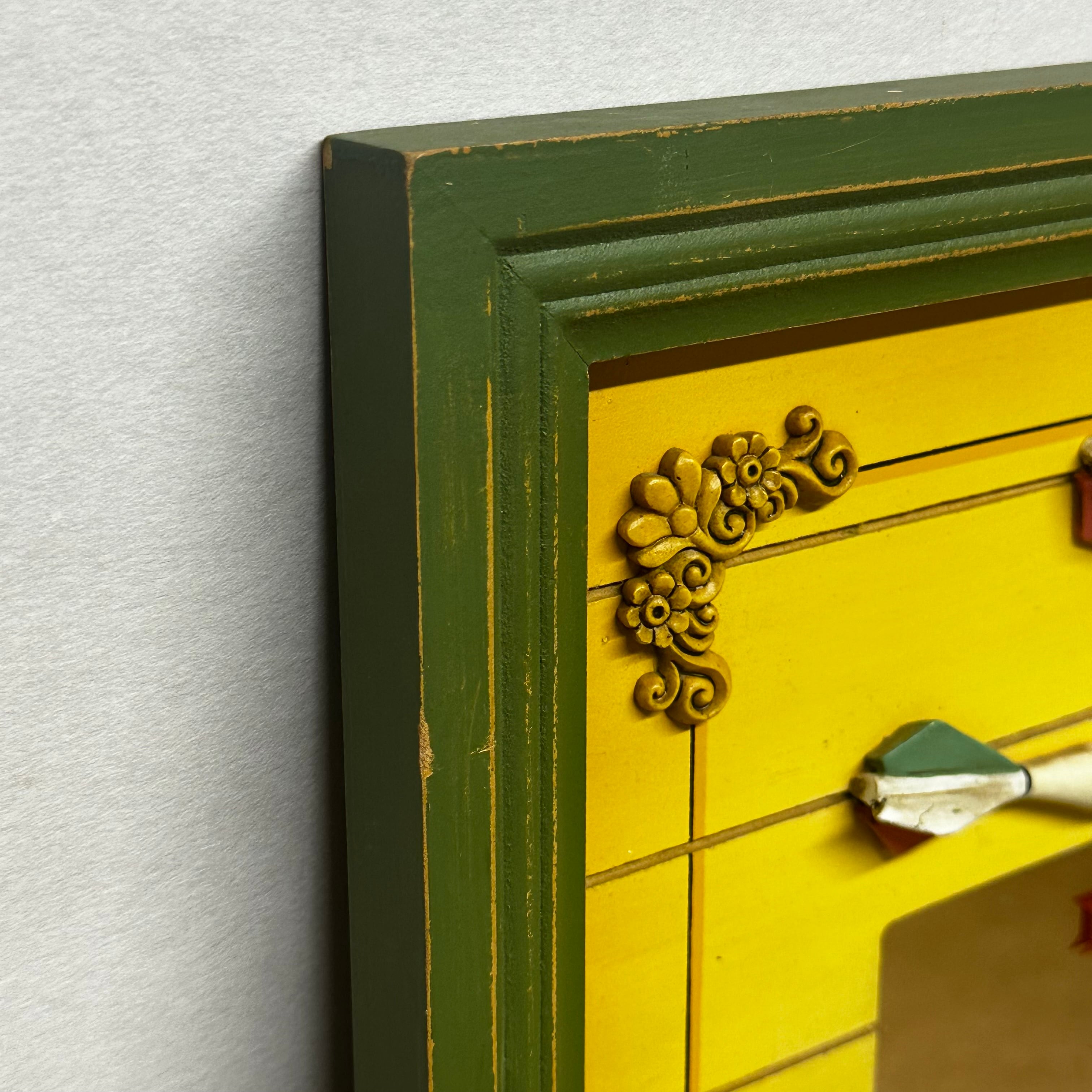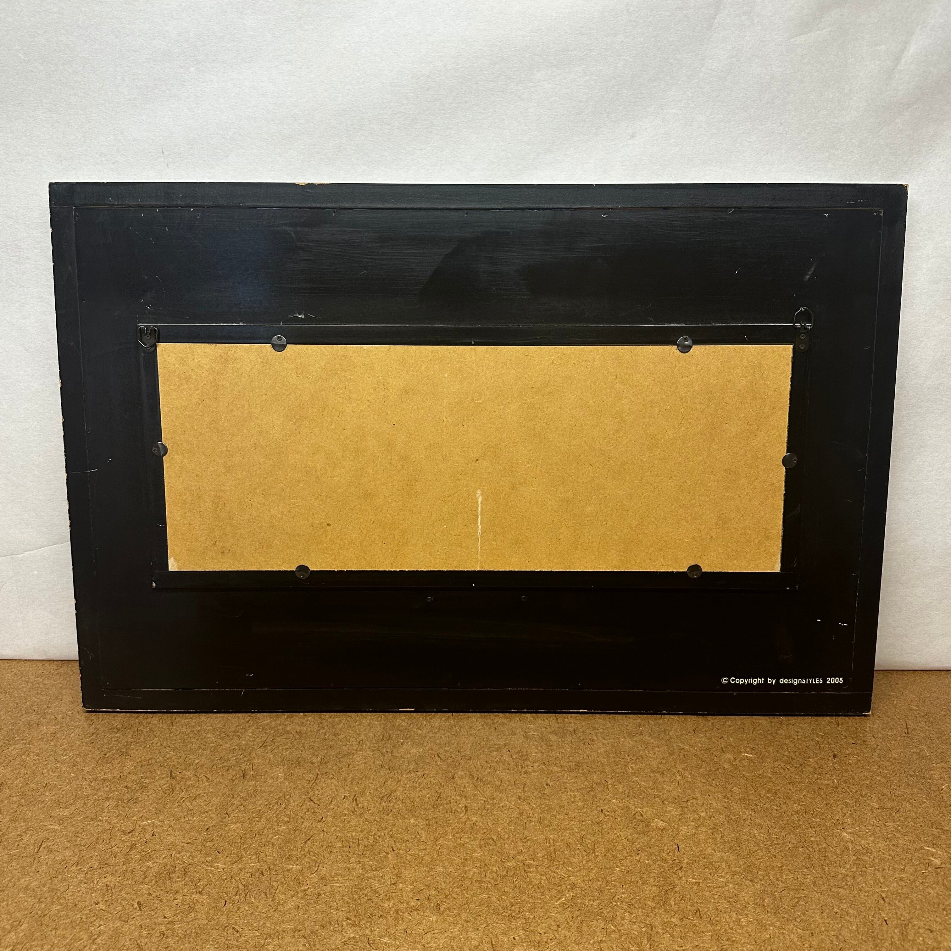アメリカの遊園地「Cedar Point(シダーポイント)」で開催されたプロフェッショナル・ダーツ・トーナメントをモチーフにした、ヴィンテージ風のデザインミラーです。赤・青・白を基調としたダーツボードと、レトロなグラフィックが印象的なアイテムで、バーやガレージ、お部屋のインテリアとしても映えます。裏面には「 © Copyright by designSTYLES 2005」の表記がありますので、アメリカの雑貨メーカーまたはデザインスタジオが当時手がけた正規品であることがうかがえます。デザイン性の高いミラーや看板などを多く手がけているブランドで、アメリカらしい遊び心とヴィンテージ感が魅力です。