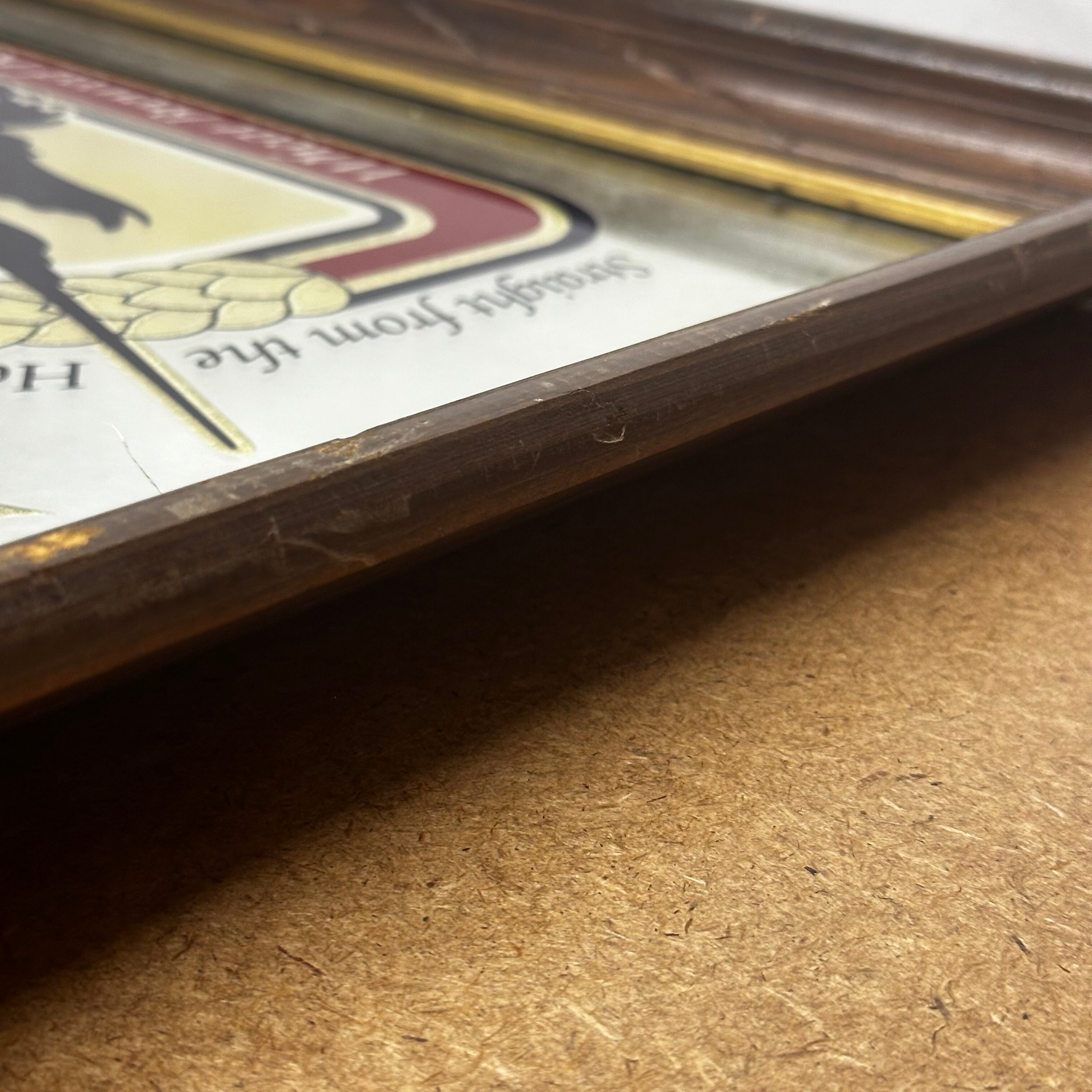 アメリカ、Miller Brewing 社が1987年にテストマーケティングのため約9ヶ月間だけ発売した「Dakota Beer」(Wheat Brewed Beer)を訴求する、珍しい広告ミラーです。北米ハートランド産の小麦をイメージしたビールブランドで、現在では非常に珍しいコレクタブルアイテムとなっています。大胆なロゴとシンボルデザインが目を引くこのミラーは、アメリカンバーやガレージ風インテリアに最適。壁に掛けるだけで空間にレトロな重厚感が加わり、並べてディスプレイすればヴィンテージ感満載のコレクション空間を演出できます。リビングや玄関に飾っても普通の鏡以上の個性とセンスを感じさせてくれる一枚です。