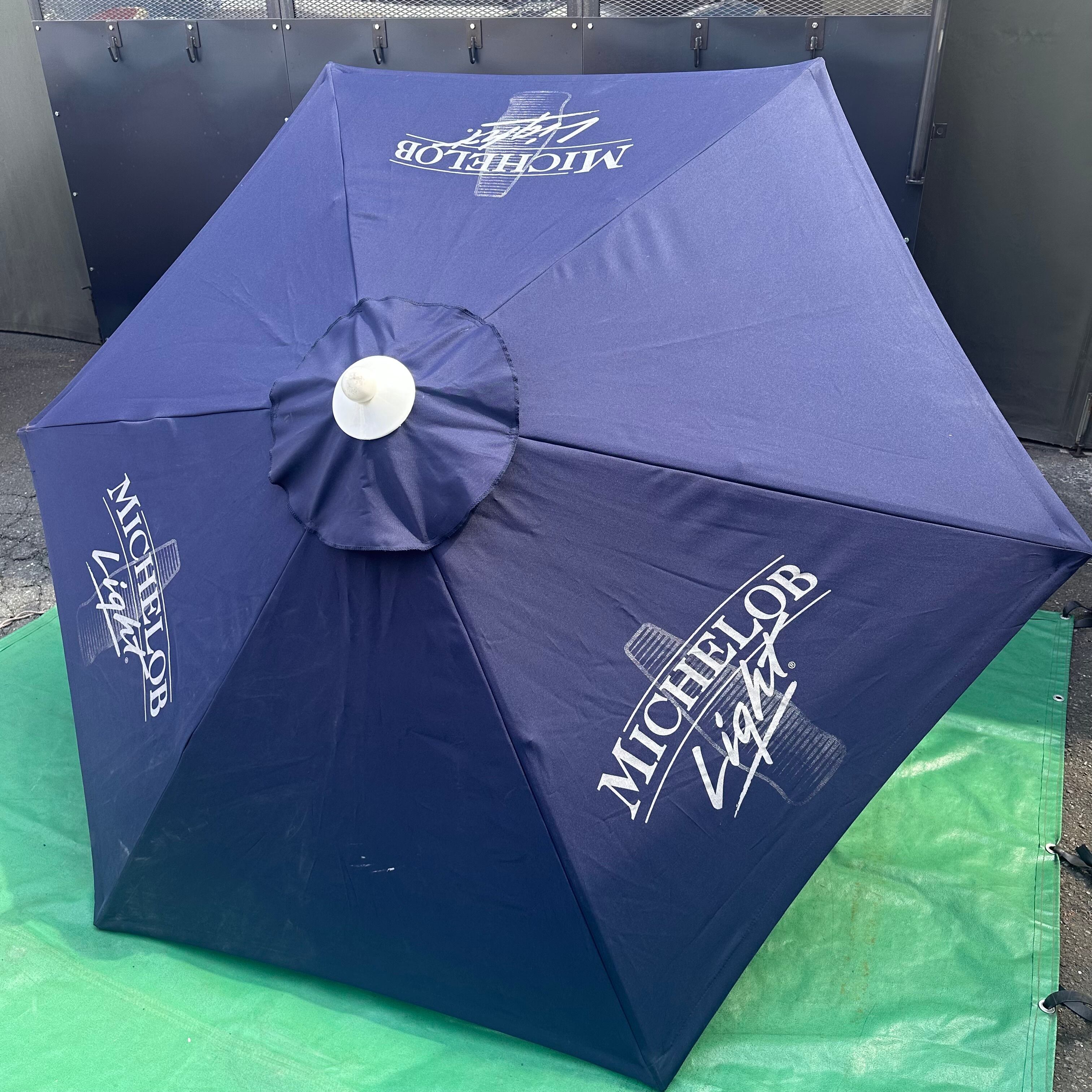 アメリカのミズーリ州セントルイスに本社を置くアンハイザーブッシュ社のビールメーカーMICHELOB Light「ミケロブライト」のパラソルです。日本ではほとんど見かけないであろう希少なアイテムです。その他のパラソルも多数出品しておりますので、お気に入りの1点をお探しください。