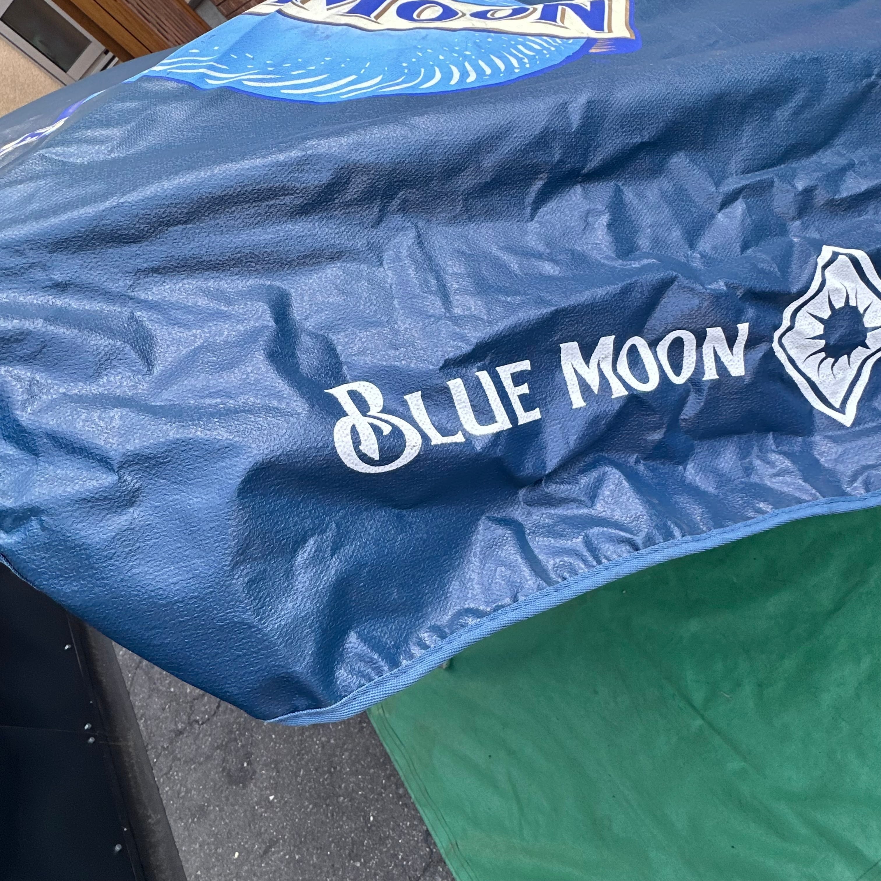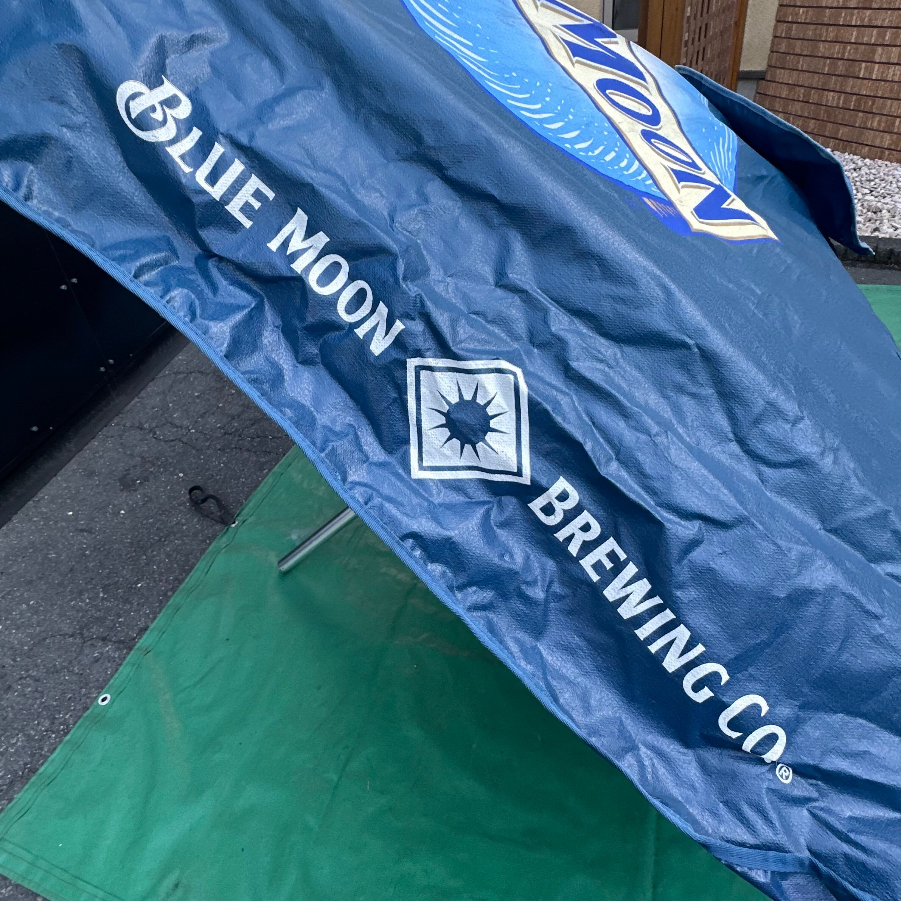 アメリカの「ミラークアーズ社」生まれのホワイトビール、ベルギースタイルとして生産されている、BLUEMOON「ブルームーン」のパラソルです。ガレージやお店のインテリアにいかがでしょうか。日本ではほとんど見かけないであろうレアアイテムです。その他のパラソルも多数出品しておりますので、お気に入りの1点をお探しください。