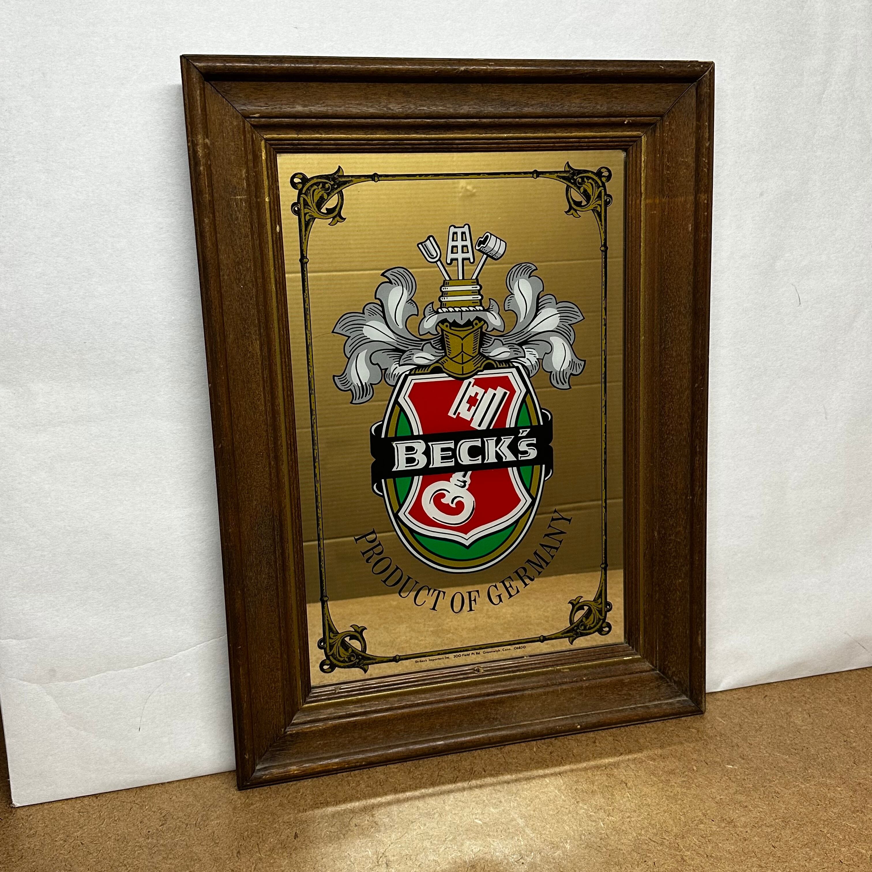 アメリカンヴィンテージの魅力をそのまま切り取った Beck's(ベックス)パブミラー が入荷しました。世界的に知られるドイツのビールブランド「Beck's」の広告デザインを、そのまま映し出すクラシックなミラーです。