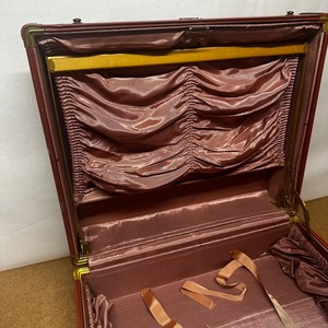 アメリカの老舗ブランド「SAMSONITE(サムソナイト)」のヴィンテージトランクケースです。 深みのあるレッドカラーが印象的で、クラシックな雰囲気を漂わせる一品。堅牢な作りと持ち運びやすいハンドルデザインは、当時から高品質で知られるサムソナイトならではの魅力です。経年によるスレや小傷は見られますが、それもまたヴィンテージらしい味わいとなっており、インテリアや店舗ディスプレイ、撮影用の小道具としても存在感を発揮します。実際に使用するだけでは無く、アメリカンヴィンテージ好きや旅行グッズコレクターにもおすすめのトランクです。