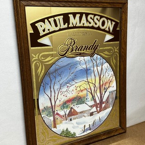 フォルニアのスパークリングワインで知られるポール・マッソンを象徴するヴィンテージパブミラーです。オーク材の温かみあるフレームに包まれた鏡面には、雪景色の中に佇むお家と木々の美しいイラストが描かれ、見る人の目を引きます。
