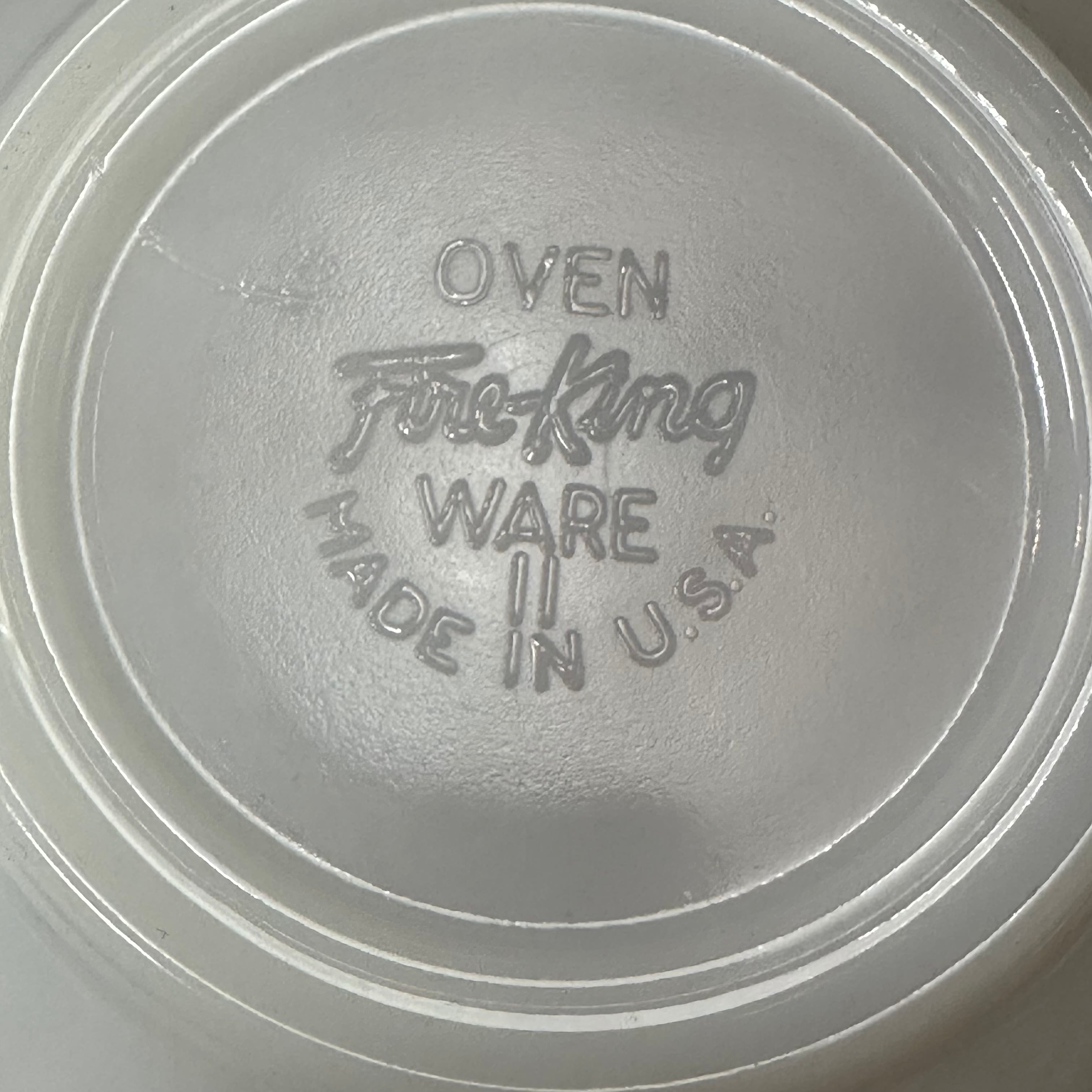 1950年代~70年代にアメリカ・オハイオ州で製造された、ファイヤーキング(Fire King)社製のサラダボウルです。ホワイトのミルクガラスボディに、精緻な野鳥のデザインが施されたこのボウルは、アメリカンヴィンテージの魅力を存分に感じさせてくれます。特に「Game Bird」シリーズは、野鳥愛好家やヴィンテージ食器コレクターにとって、コレクションの中でも特別な位置を占めています。