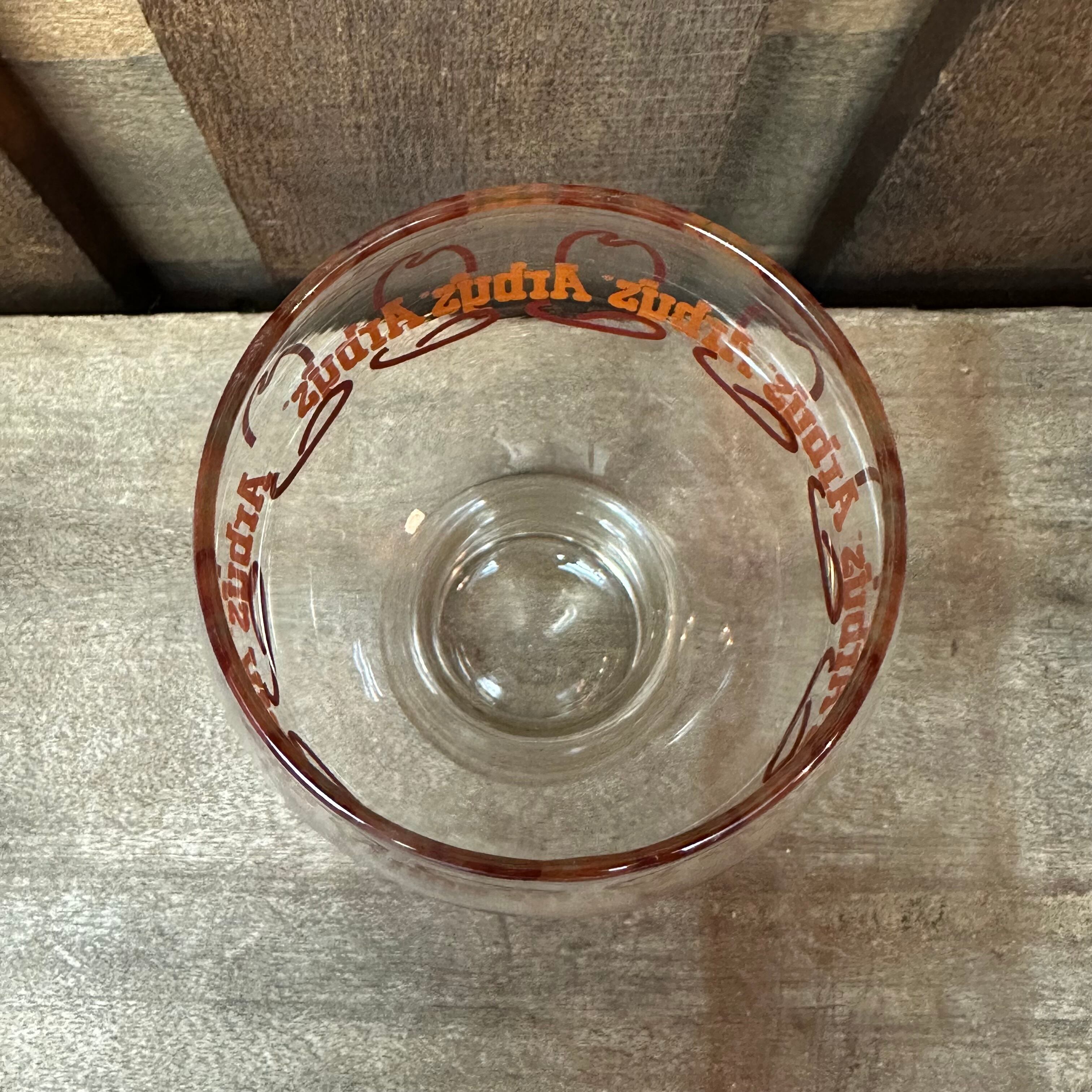 オハイオ州発祥のフードチェーン、Arby'sのユニークなデザイングラスです。かつて日本でもフランチャイズ展開がありましたが、1997年までに全店舗が閉店。今ではなかなか出会えないレアな一品です。