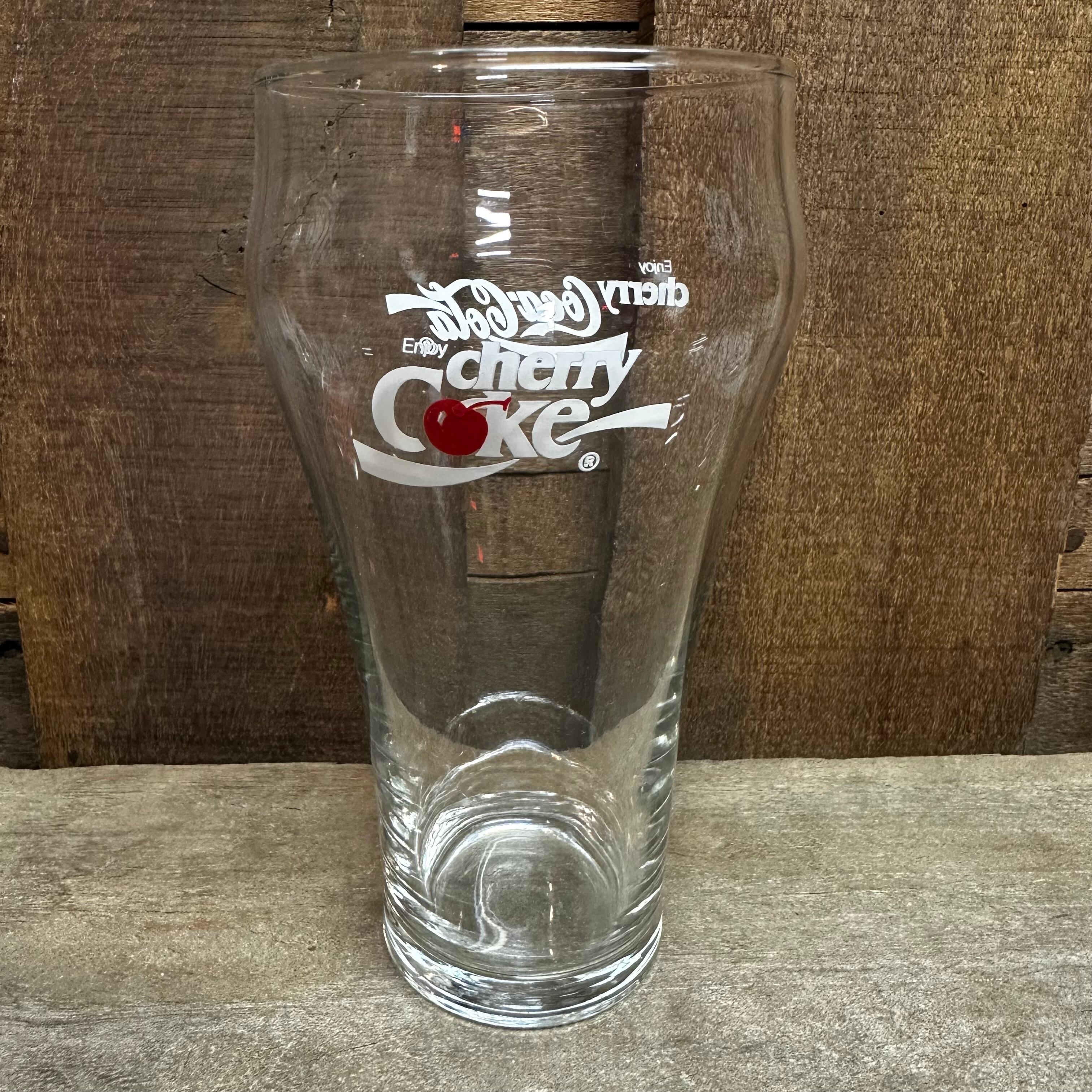 透明なガラス製で、正面には「Enjoy Cherry Coke」のロゴと特徴的な赤いチェリーのイラストがプリントされています。レトロなデザインが特徴で、コカ・コーラやヴィンテージアイテムのコレクターの方にもおすすめです。チェリーコークは1985年にアメリカで正式に発売され、このグラスに描かれている「Enjoy Cherry Coke」のロゴと特徴的なチェリーのデザインは、その発売初期である1980年代のレトロロゴとして認識されています。