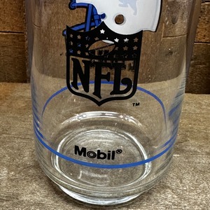 こちらは、アメリカンフットボールのプロリーグNFLに所属する「デトロイト・ライオンズ」のロゴがあしらわれた、ヴィンテージのドリンクグラスです。おそらく1980年代後半から1990年代初頭にかけて、モービル(Mobil)のガソリンスタンドでプロモーション品として配布されたものと考えられます。