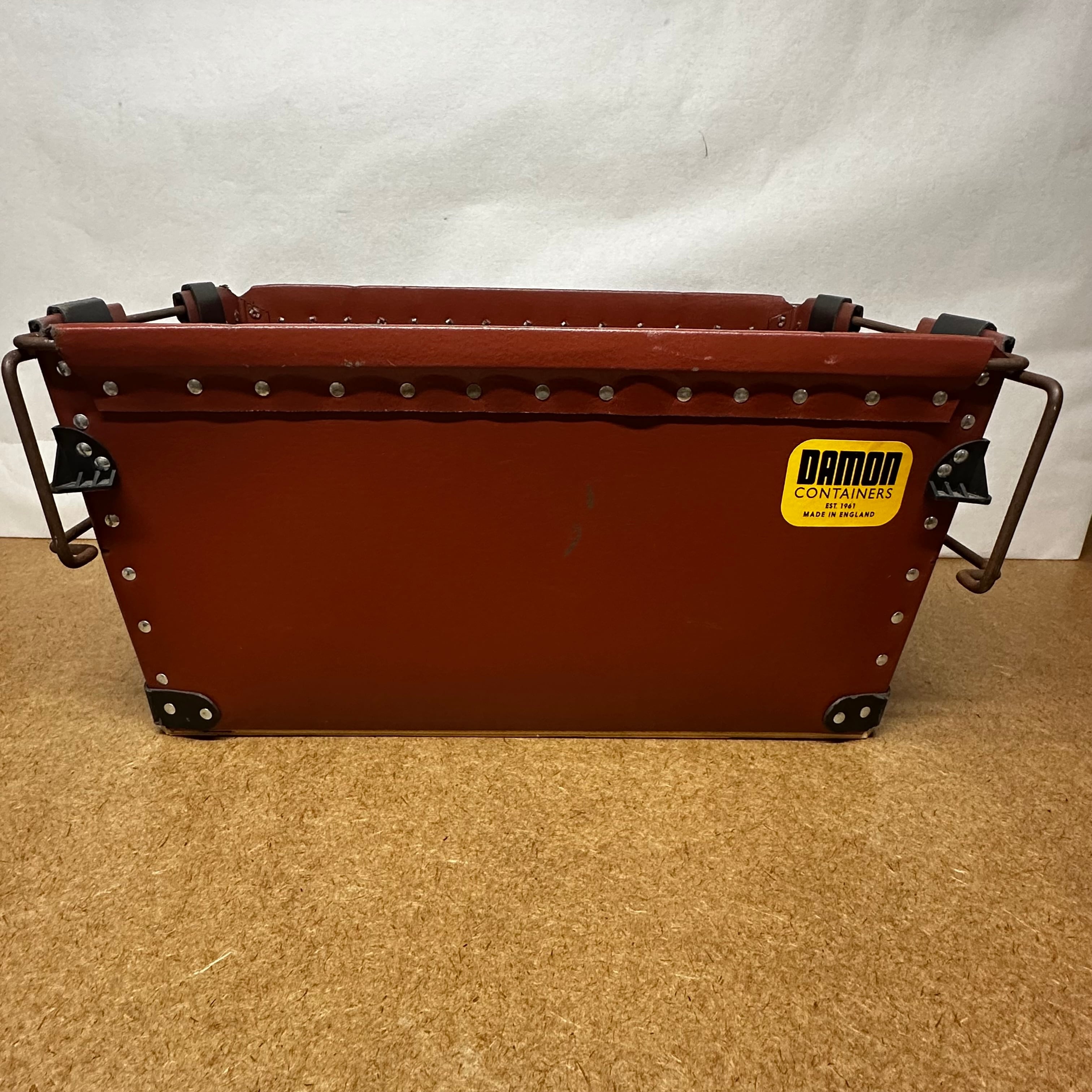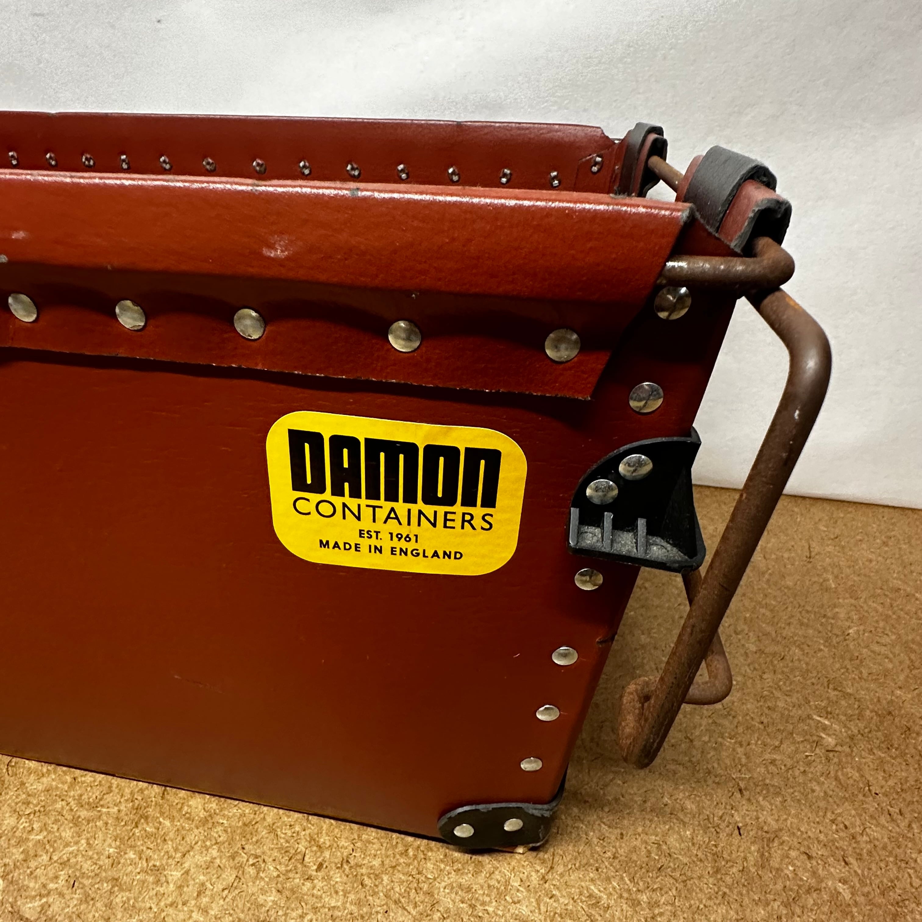 イギリスの老舗コンテナメーカー「DAMON CONTAINERS(デーモンコンテナ)」のヴィンテージコンテナです。1961年に創業された同社の製品は、ペーパーファイバーとスチール製リベット構造が特徴で、軽量でありながら頑丈な作りが魅力です。