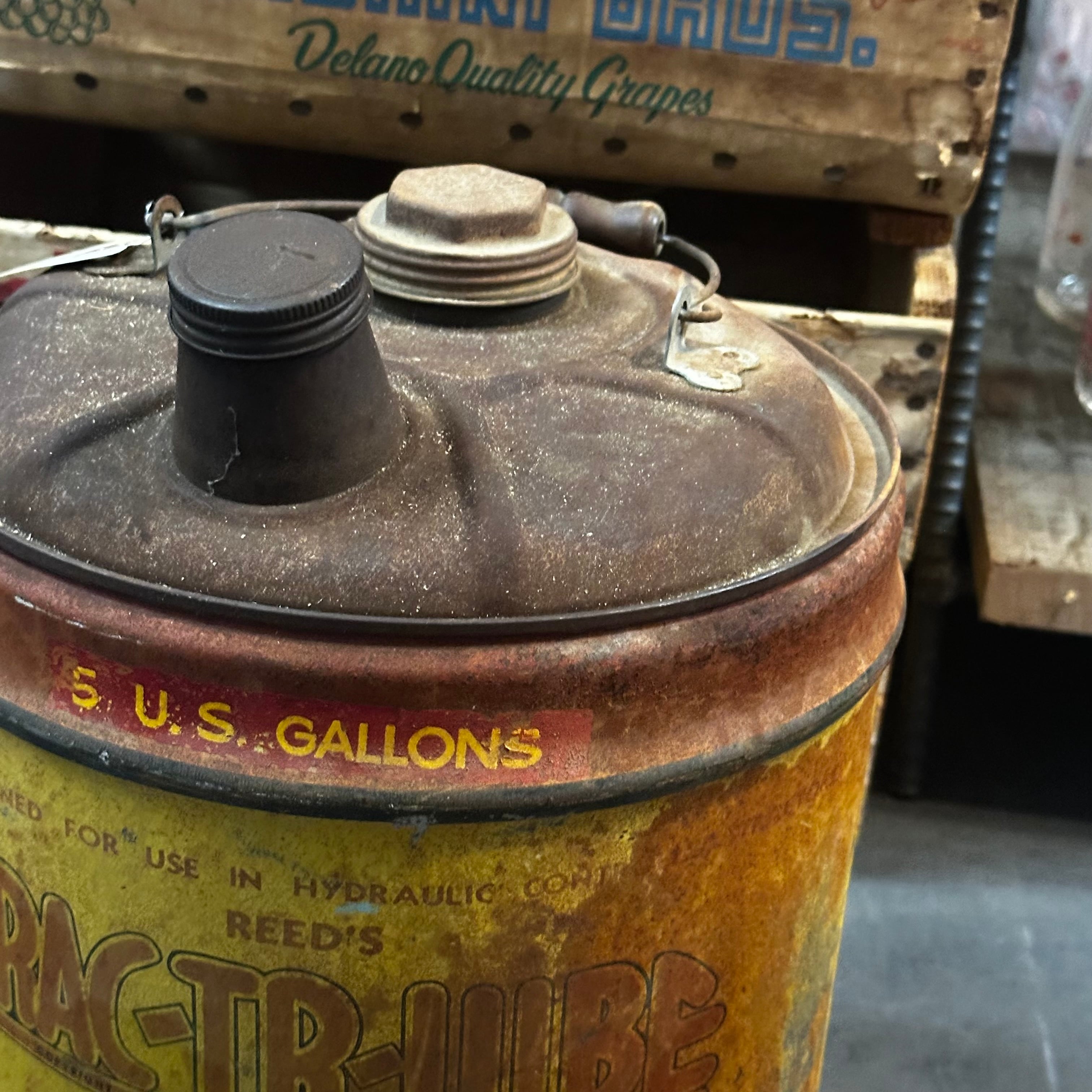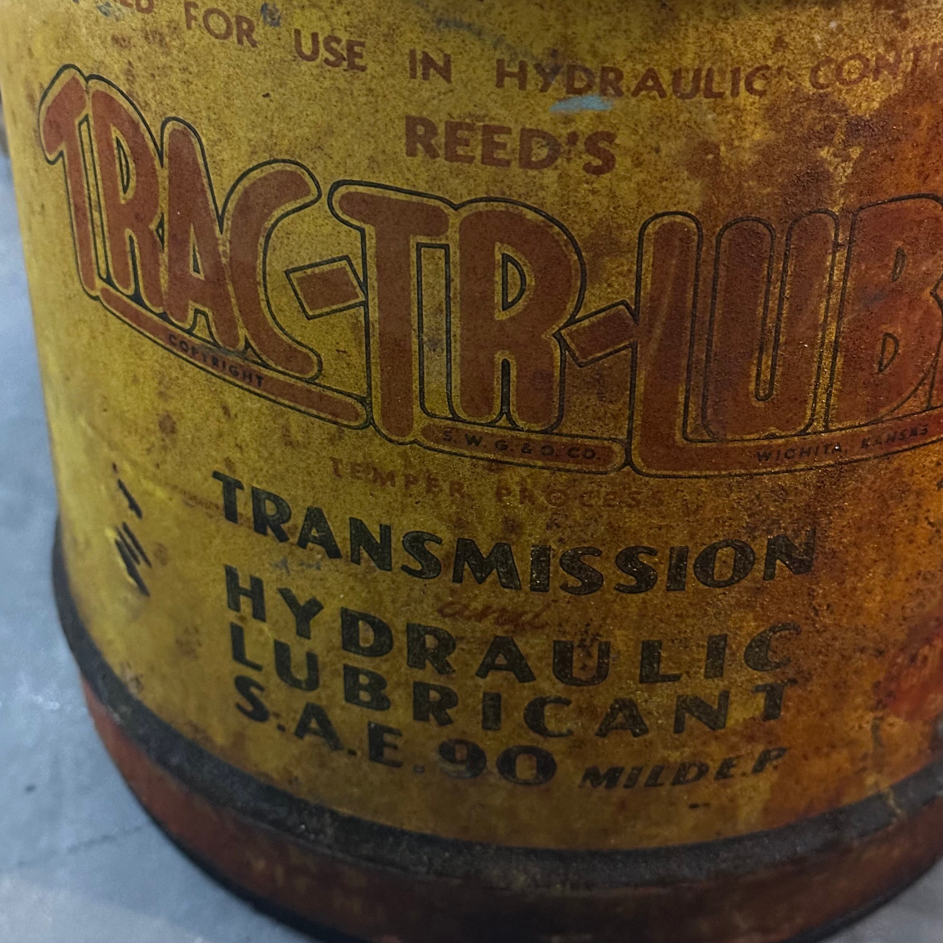 アメリカ製のヴィンテージオイル缶「Reed's TRAC-TR-LUBE」です。 トランスミッション用の油圧潤滑油缶で、存在感ある逸品です。ガレージスタイルやインダストリアルインテリアにぴったり!!ガレージや店舗のディスプレイ、インダストリアルな空間のアクセントとして最適です。