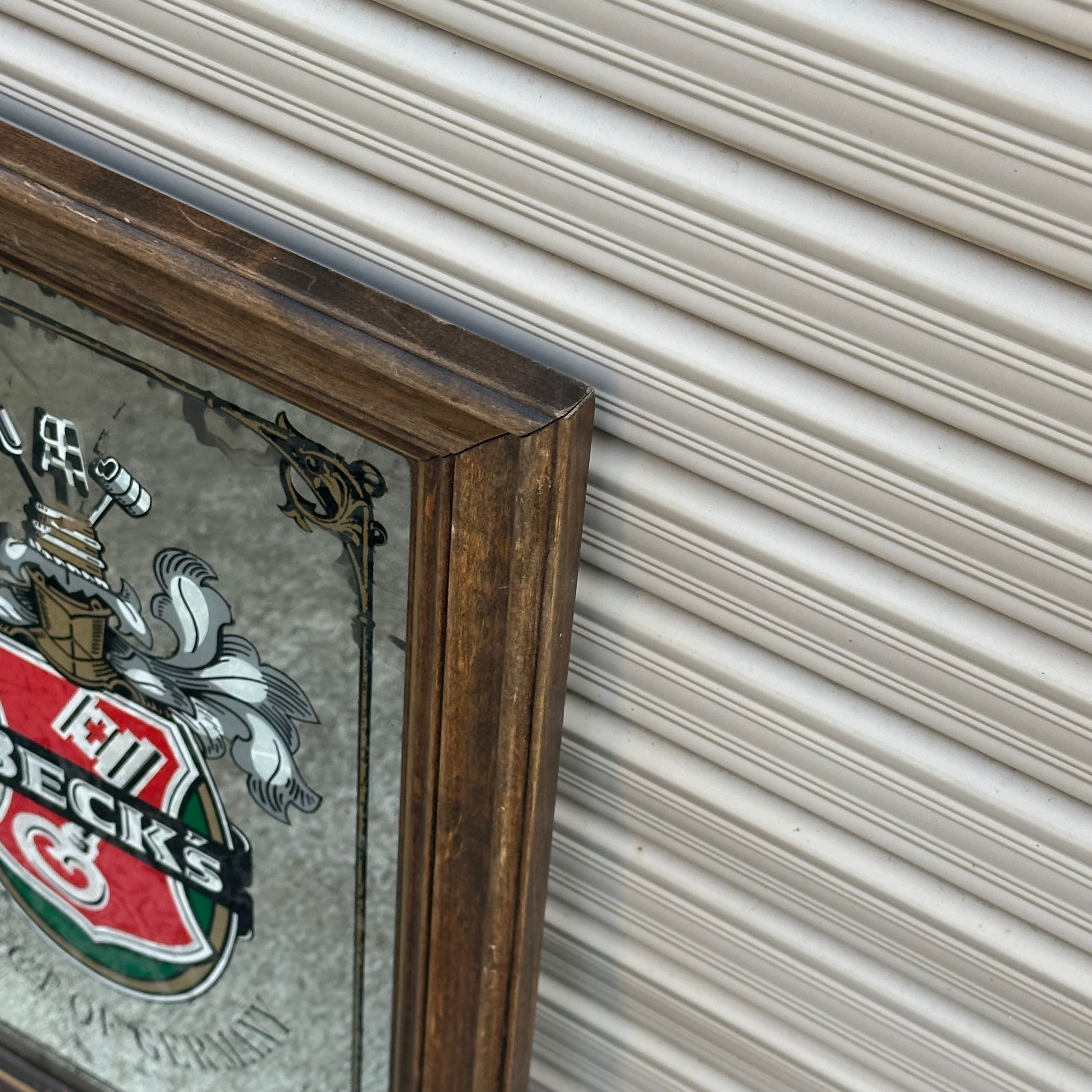 アメリカンヴィンテージの魅力をそのまま切り取った Beck's(ベックス)パブミラー が入荷しました。世界的に知られるドイツのビールブランド「Beck's」の広告デザインを、そのまま映し出すクラシックなミラーです。