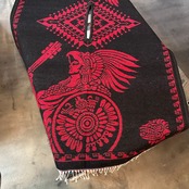 インスピレーション溢れるデザイン、アステカの戦士や鷲といった民族的なモチーフが大胆に織り込まれており、見ているだけで当時の文化に思いを馳せることができます。ポンチョとして着こなすのはもちろん、車内のシートカバーや、お部屋のラグ、タペストリー、キャンプやアウトドアのブランケットなど、様々なシーンで活躍します。