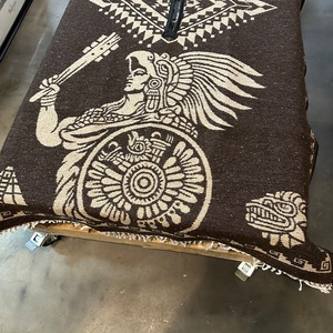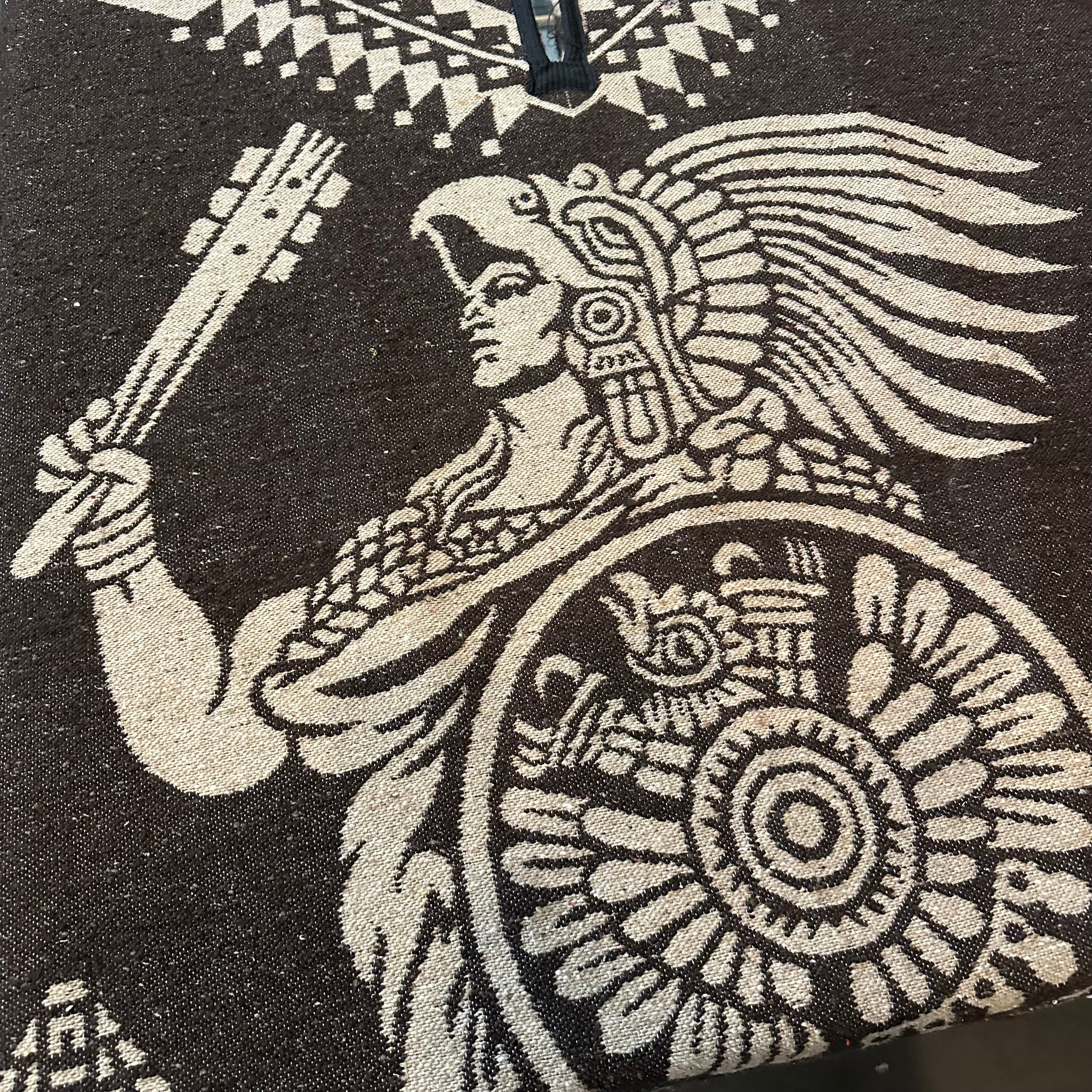 インスピレーション溢れるデザイン、アステカの戦士や鷲といった民族的なモチーフが大胆に織り込まれており、見ているだけで当時の文化に思いを馳せることができます。ポンチョとして着こなすのはもちろん、車内のシートカバーや、お部屋のラグ、タペストリー、キャンプやアウトドアのブランケットなど、様々なシーンで活躍します。