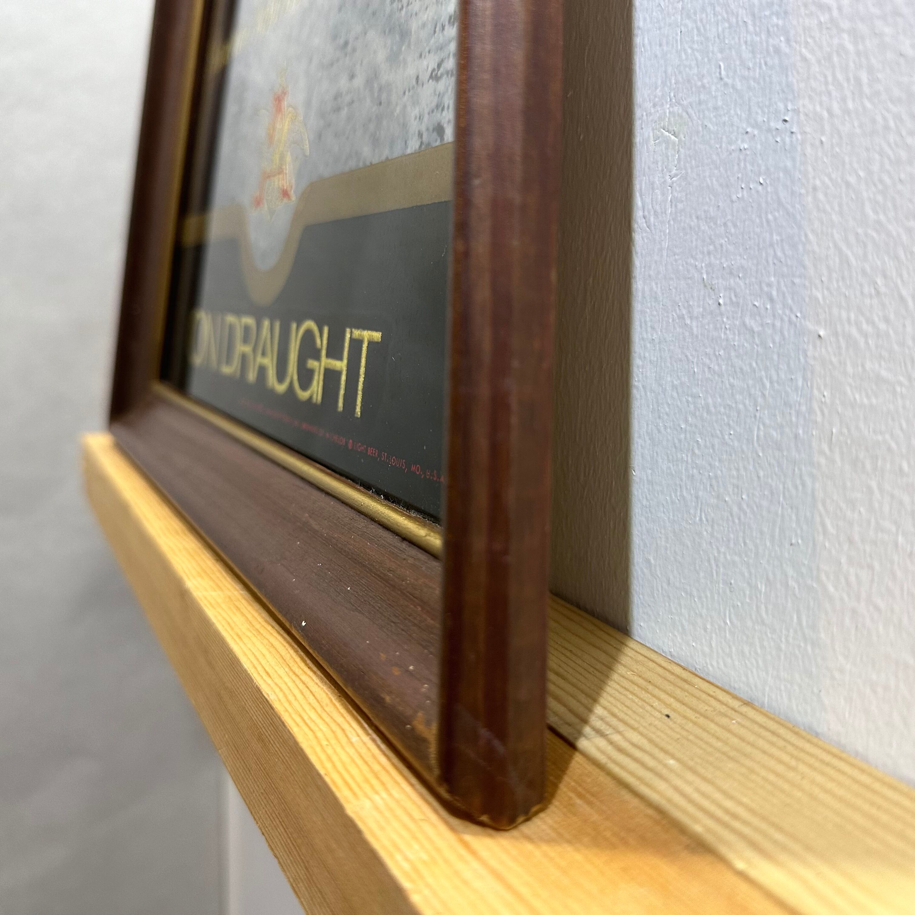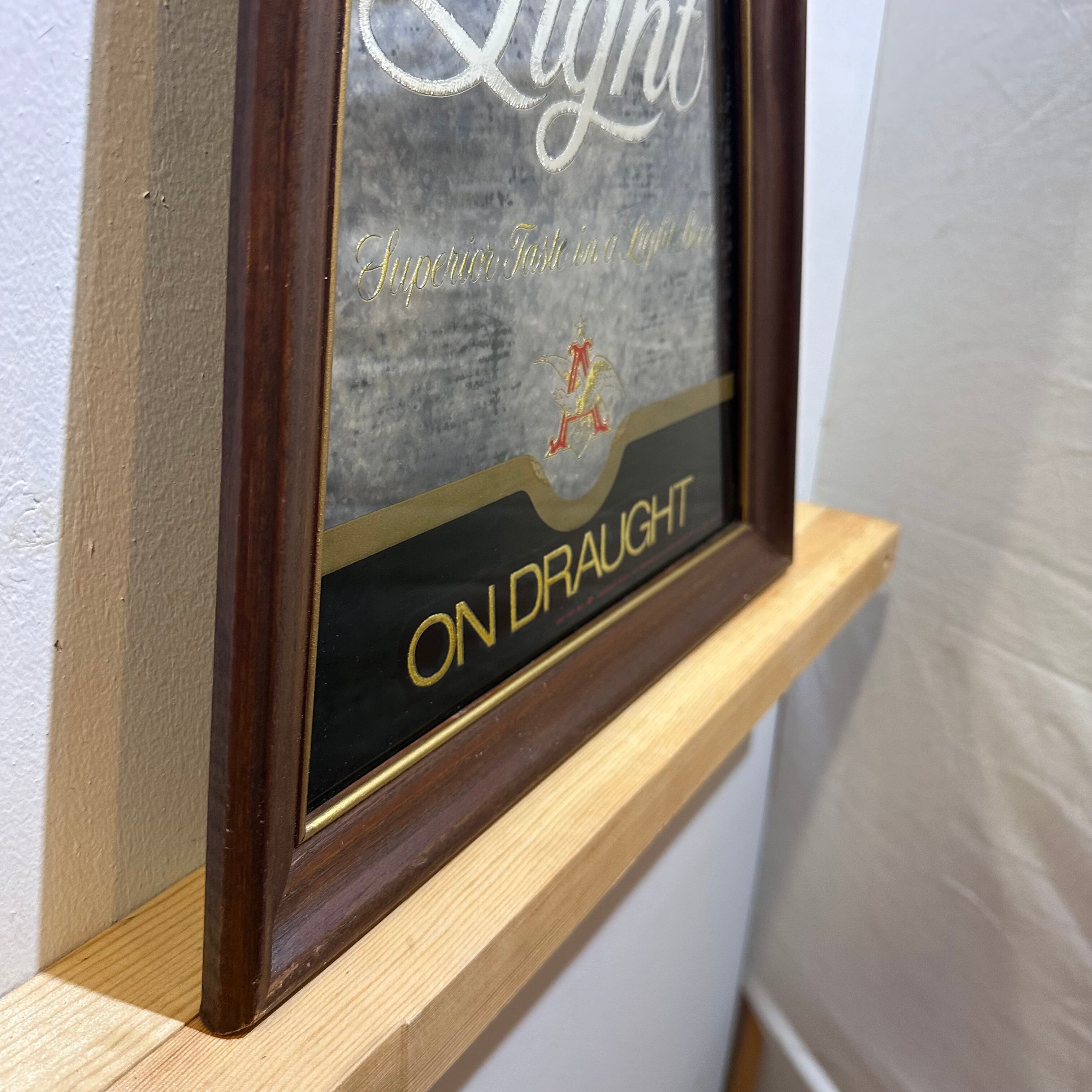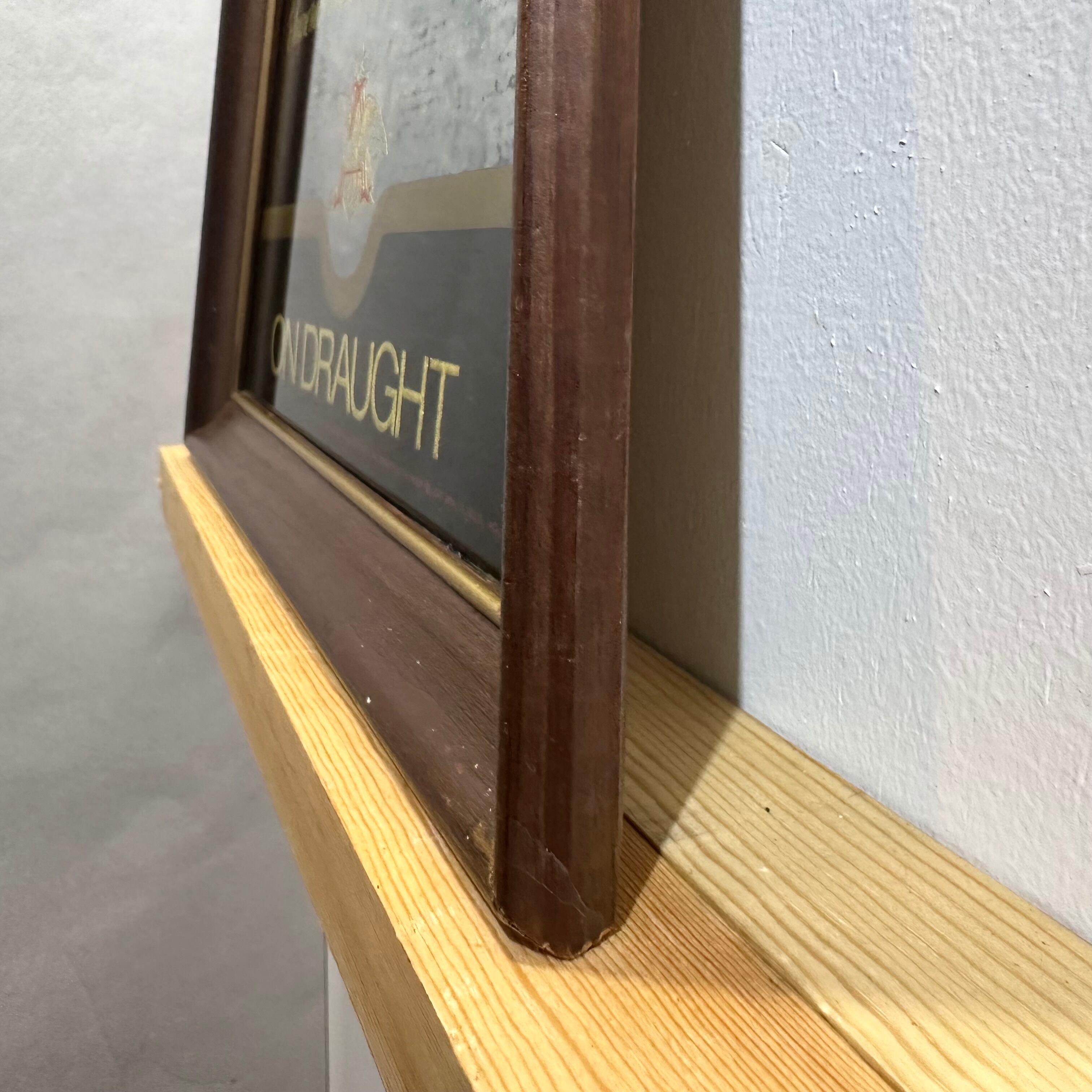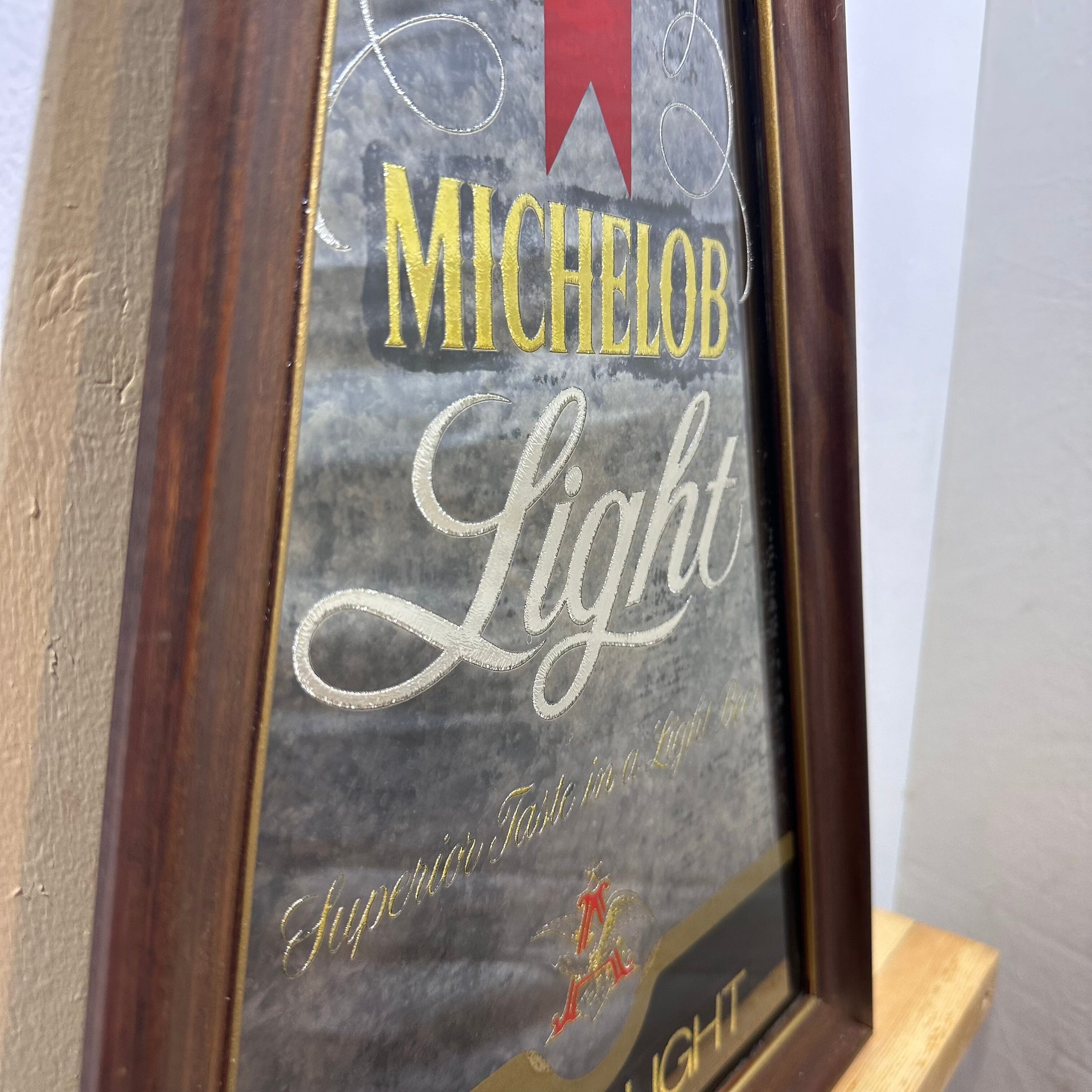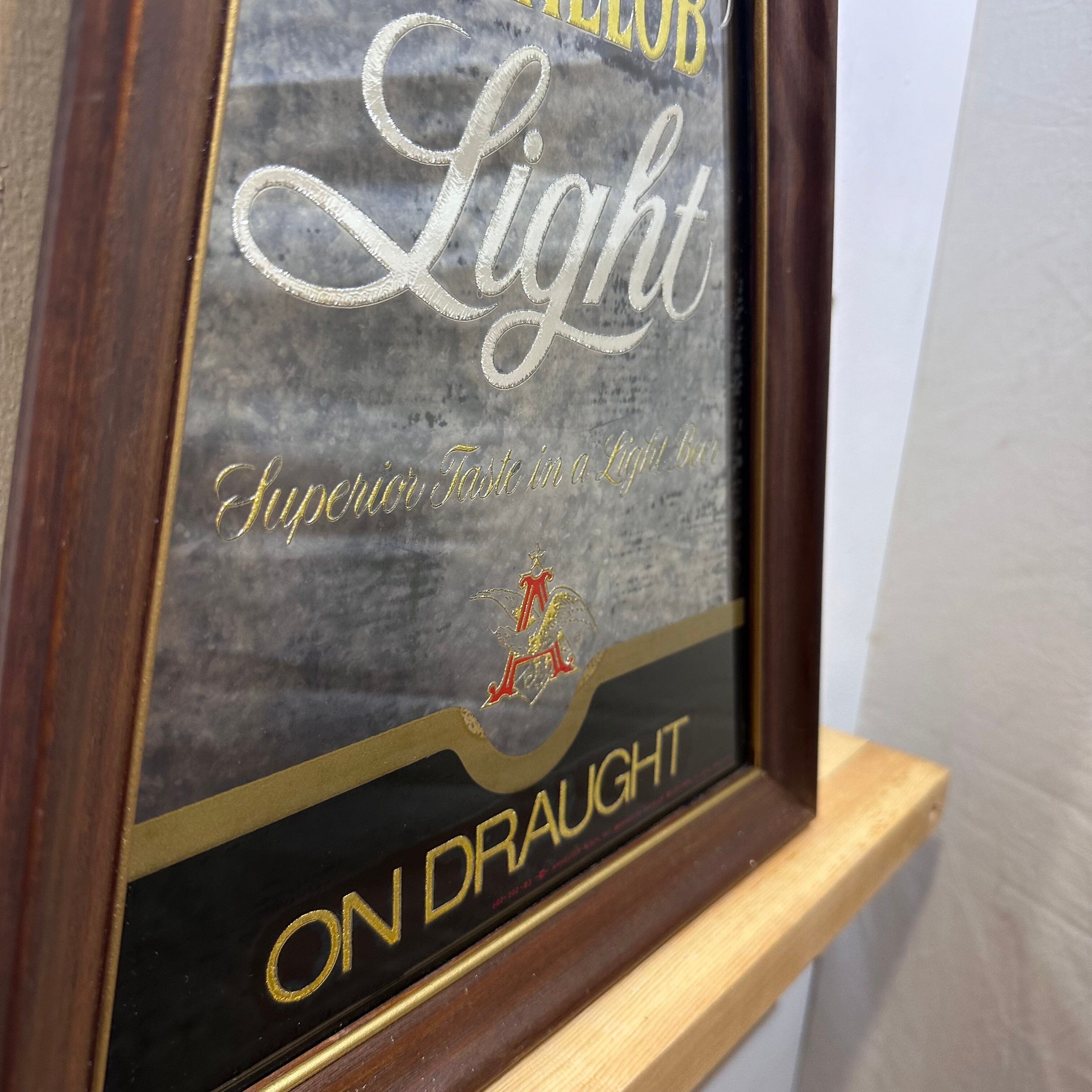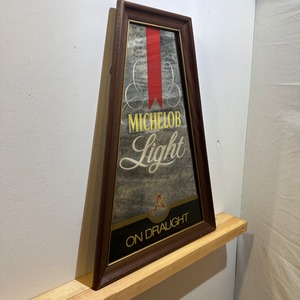 アメリカ ミズーリ州セントルイス に本社を置くビールメーカー アンハイザーブッシュ社 の人気ブランド ミケロブ のパブミラーです。特徴的な 台形デザイン は、お部屋やバー、ガレージに置くだけで目を引く存在感。アンハイザー・ブッシュの主力ビール 「バドワイザー」 は、スーパーやコンビニでもお馴染み。そんな名門ブランドのヴィンテージミラーが手に入るチャンスは貴重です。この 希少なアイテムを手に入れて、スタイリッシュな空間づくりを楽しんでみませんか?