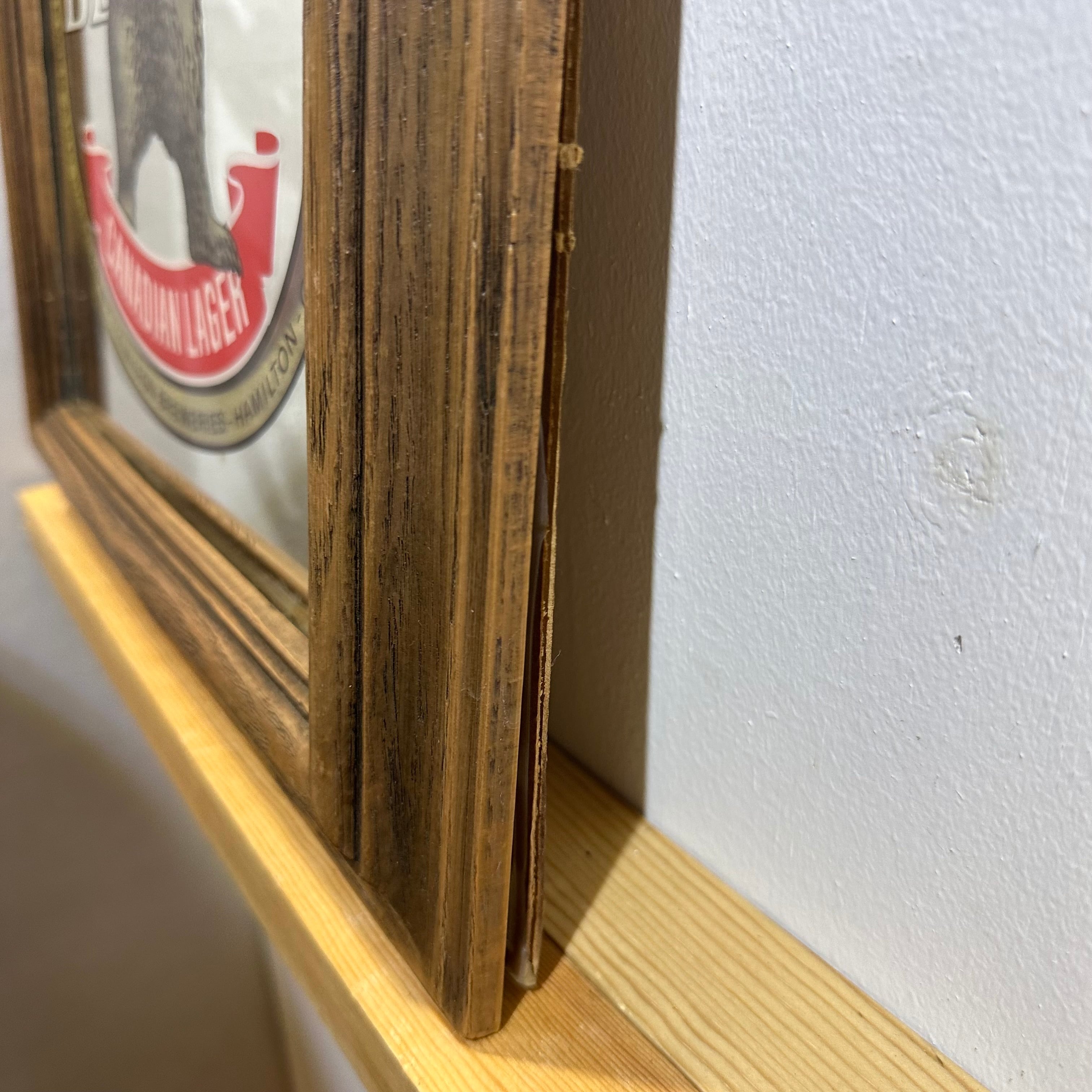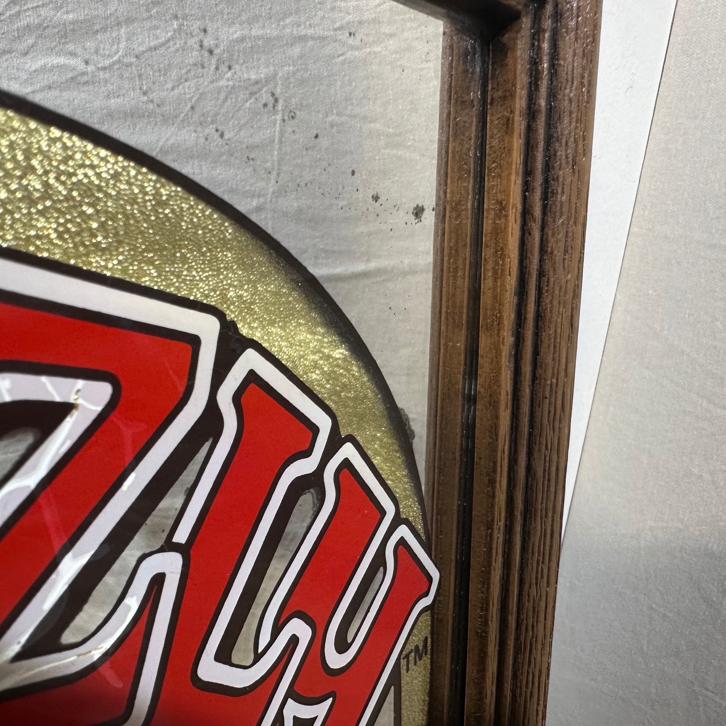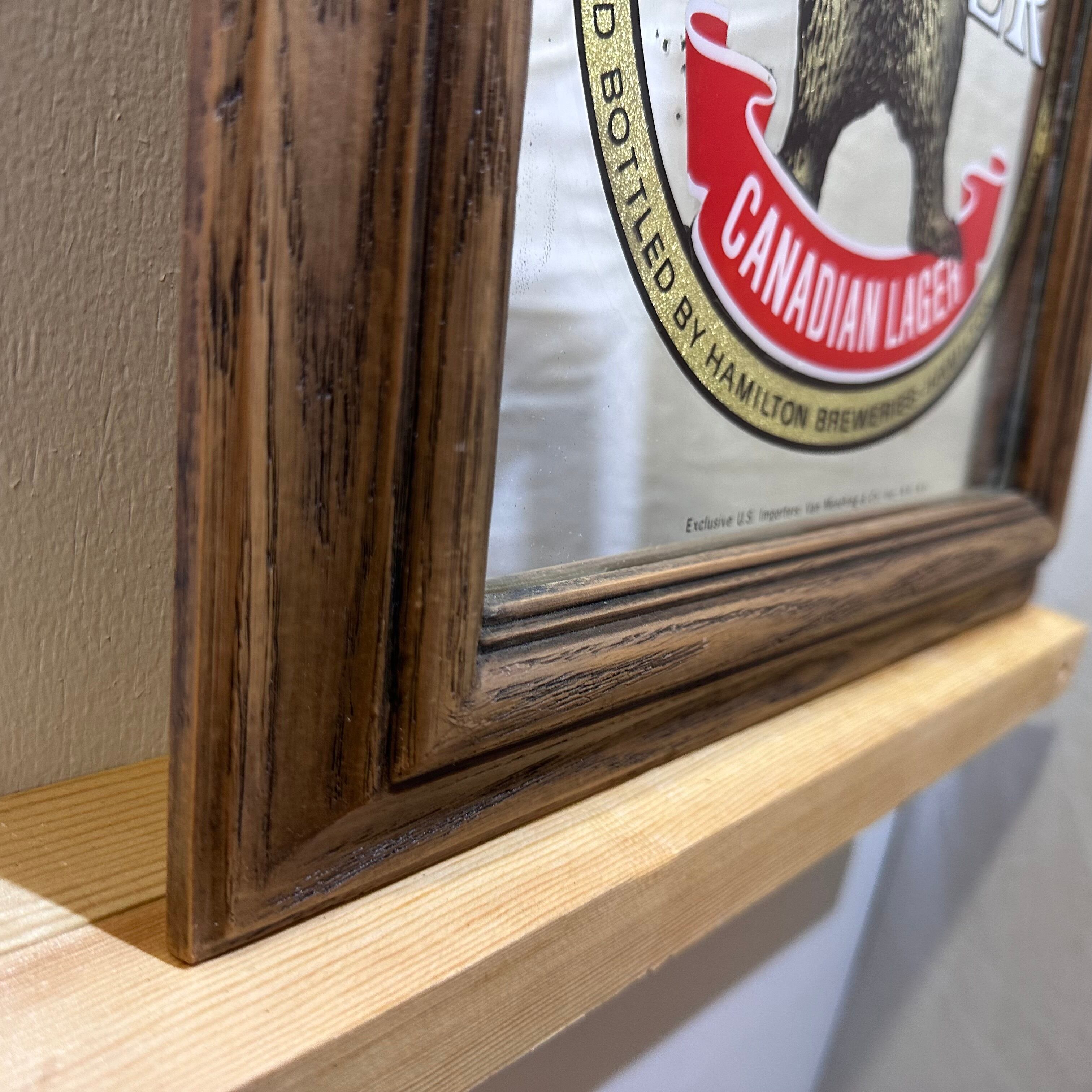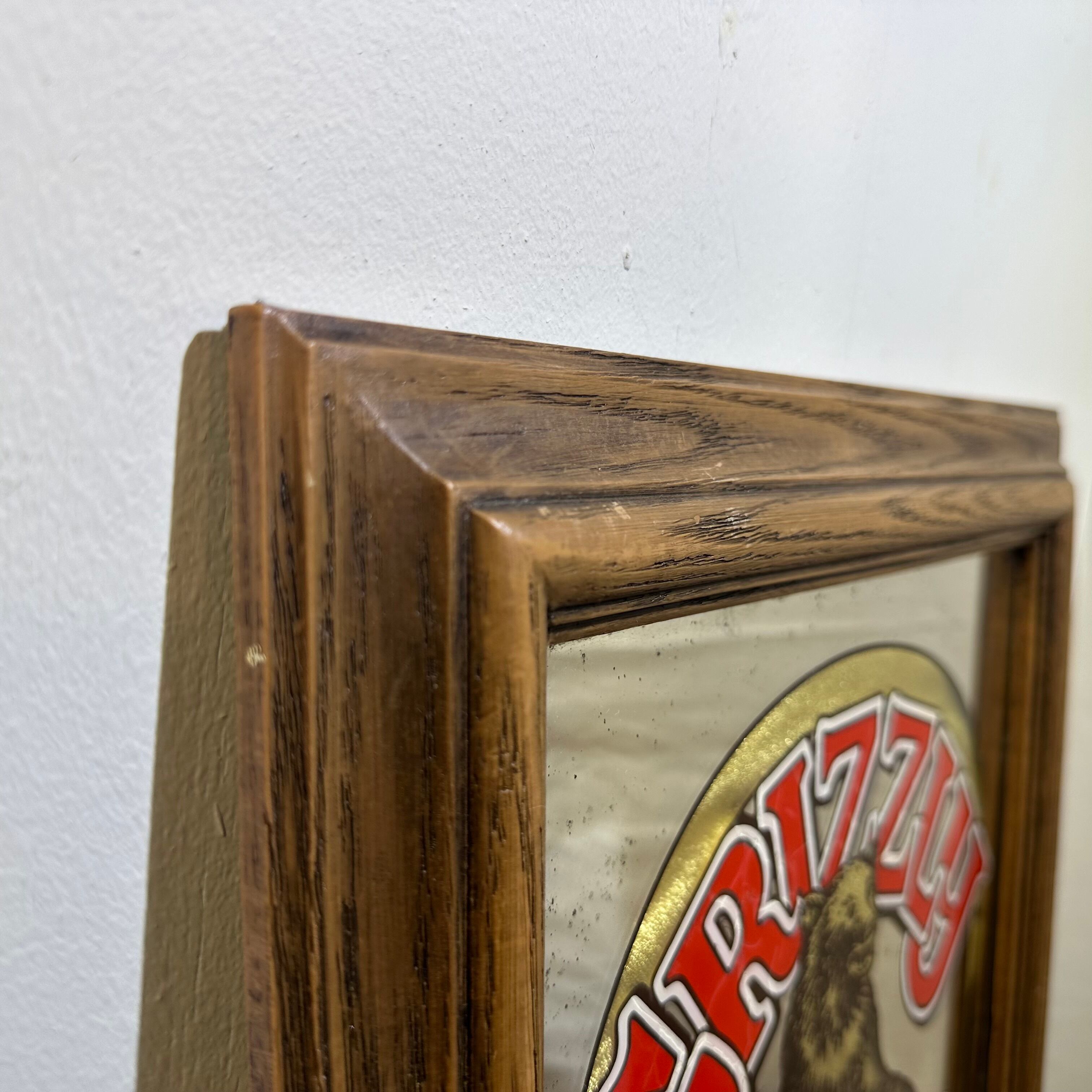カナダのビールブランド「Grizzly Beer(グリズリービール)」の広告用パブミラーです。力強く立ち上がったグリズリーベアのデザインと、鮮やかなロゴの組み合わせが目を引く、存在感のあるヴィンテージアイテムです。