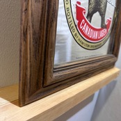 重厚な木製フレームは年月を経た風合いがあり、ガレージや書斎、バーカウンターなど、こだわりの空間に飾ることで、アメリカンヴィンテージやレトロな雰囲気を演出します。