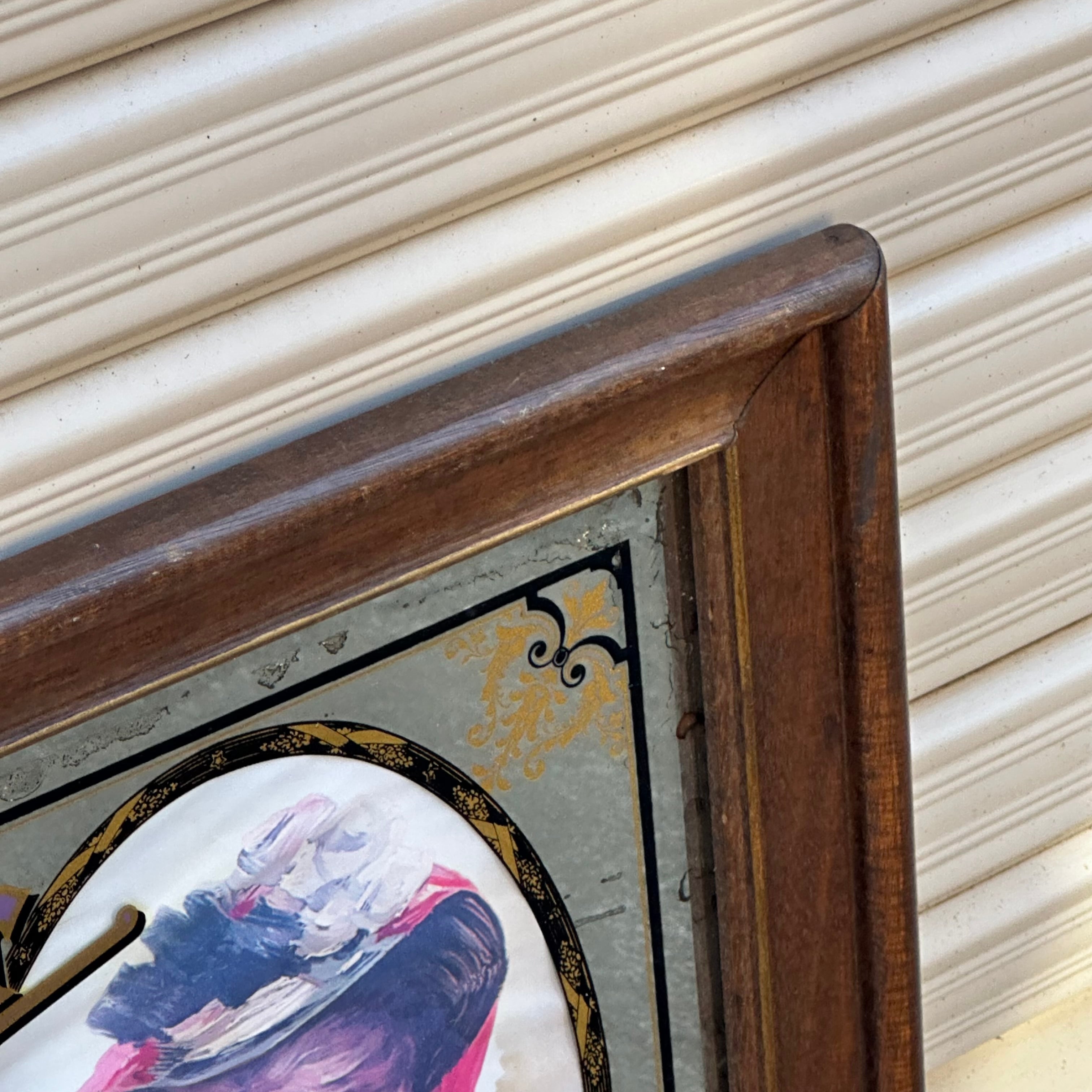 バーやパブで実際に使用されていたもので、経年による木製フレームの風合いが、空間に深い味わいとノスタルジックな雰囲気を演出します。リビングや書斎、ガレージなど、こだわりの空間のアクセントにいかがでしょうか。