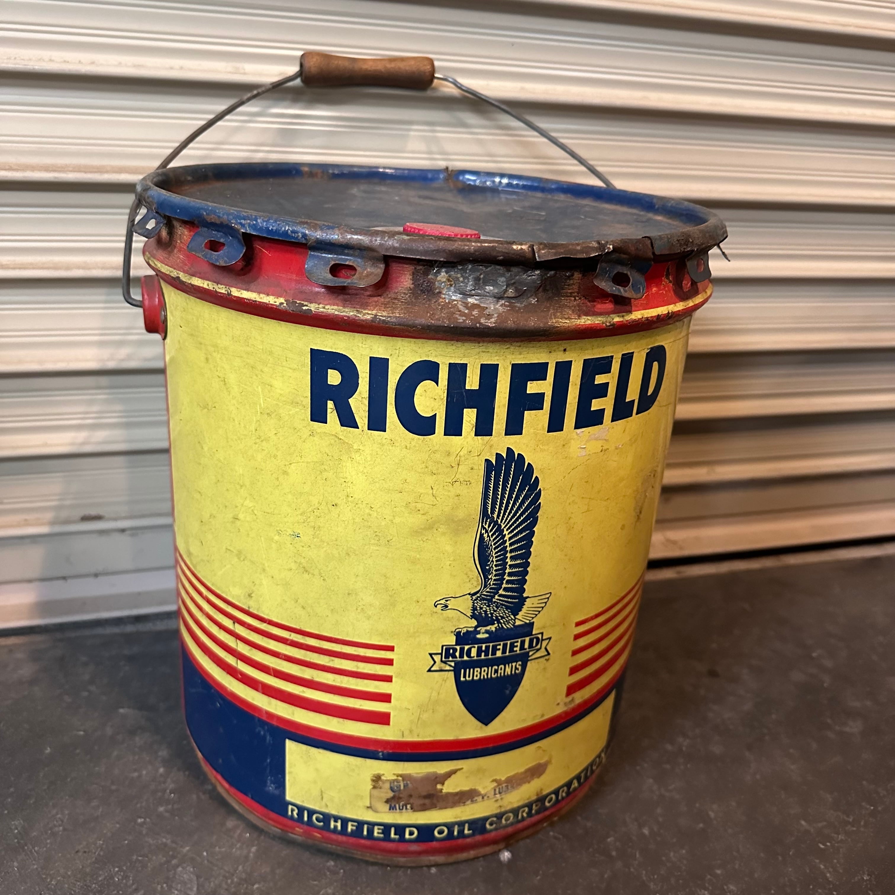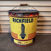 アメリカの老舗オイルメーカー、RICHFIELD(リッチフィールド)のヴィンテージギアオイル缶です。1905年から1966年にかけてカリフォルニア州に拠点を置いていた会社で、ハクトウワシのロゴが特徴的なコレクタブルアイテムです。