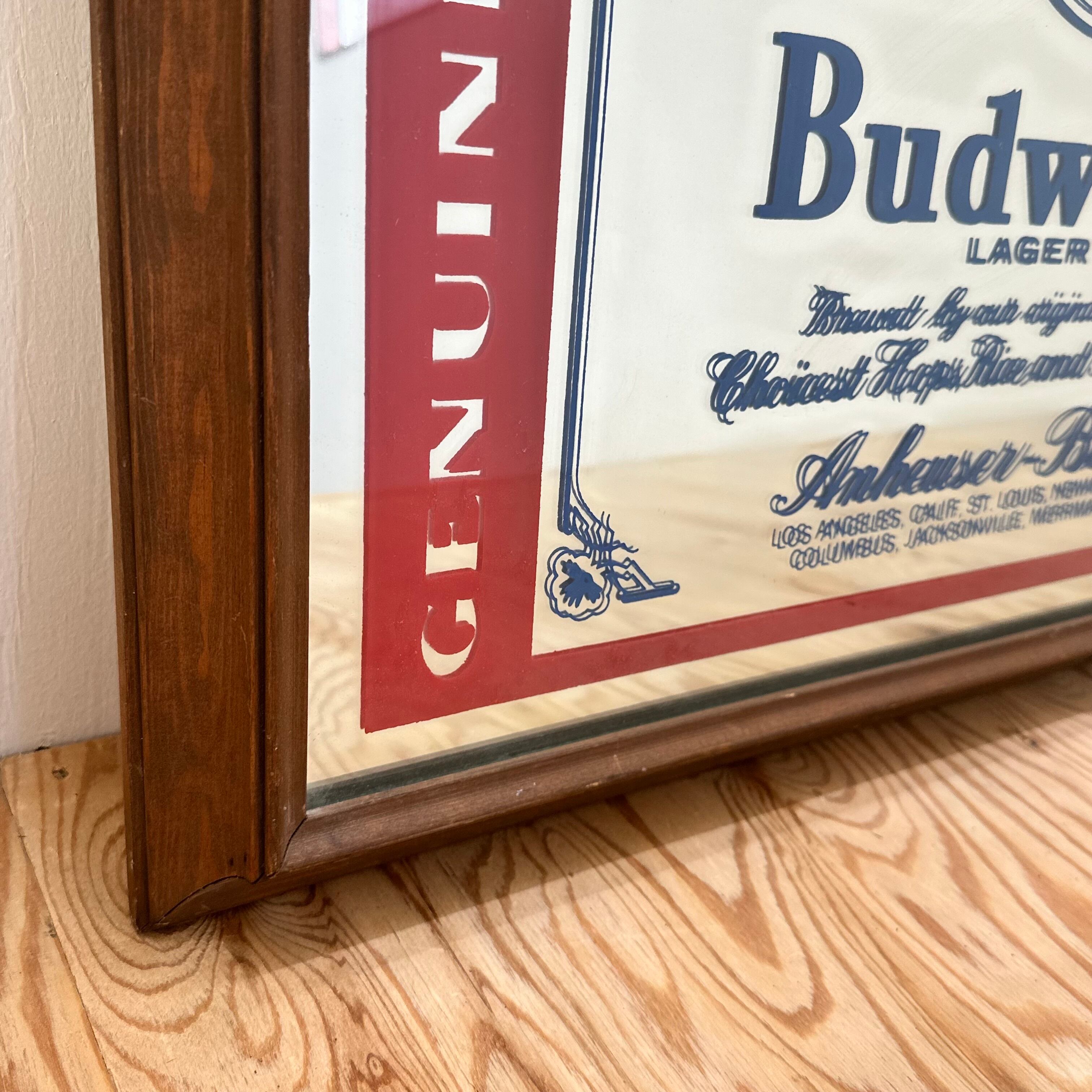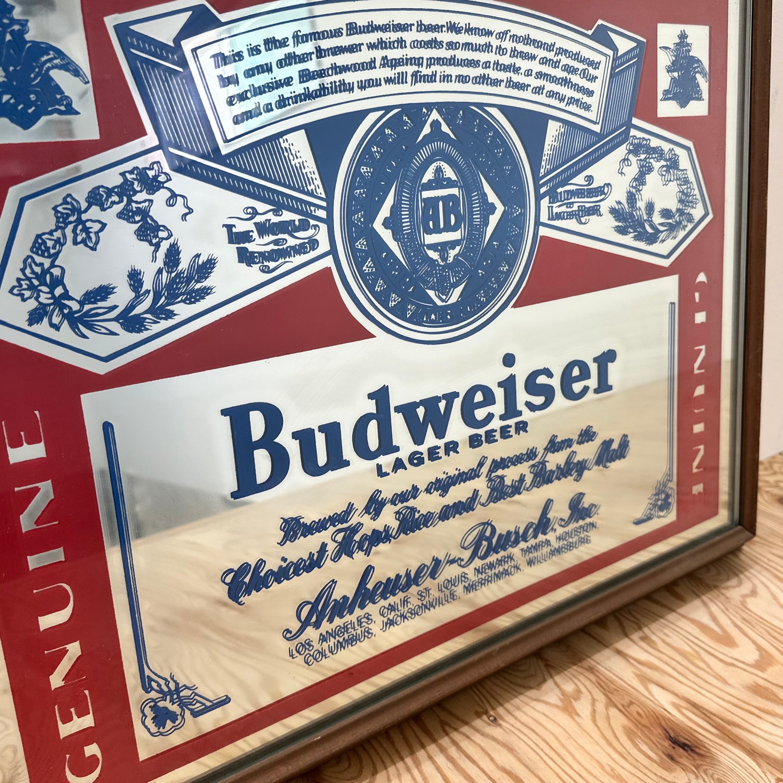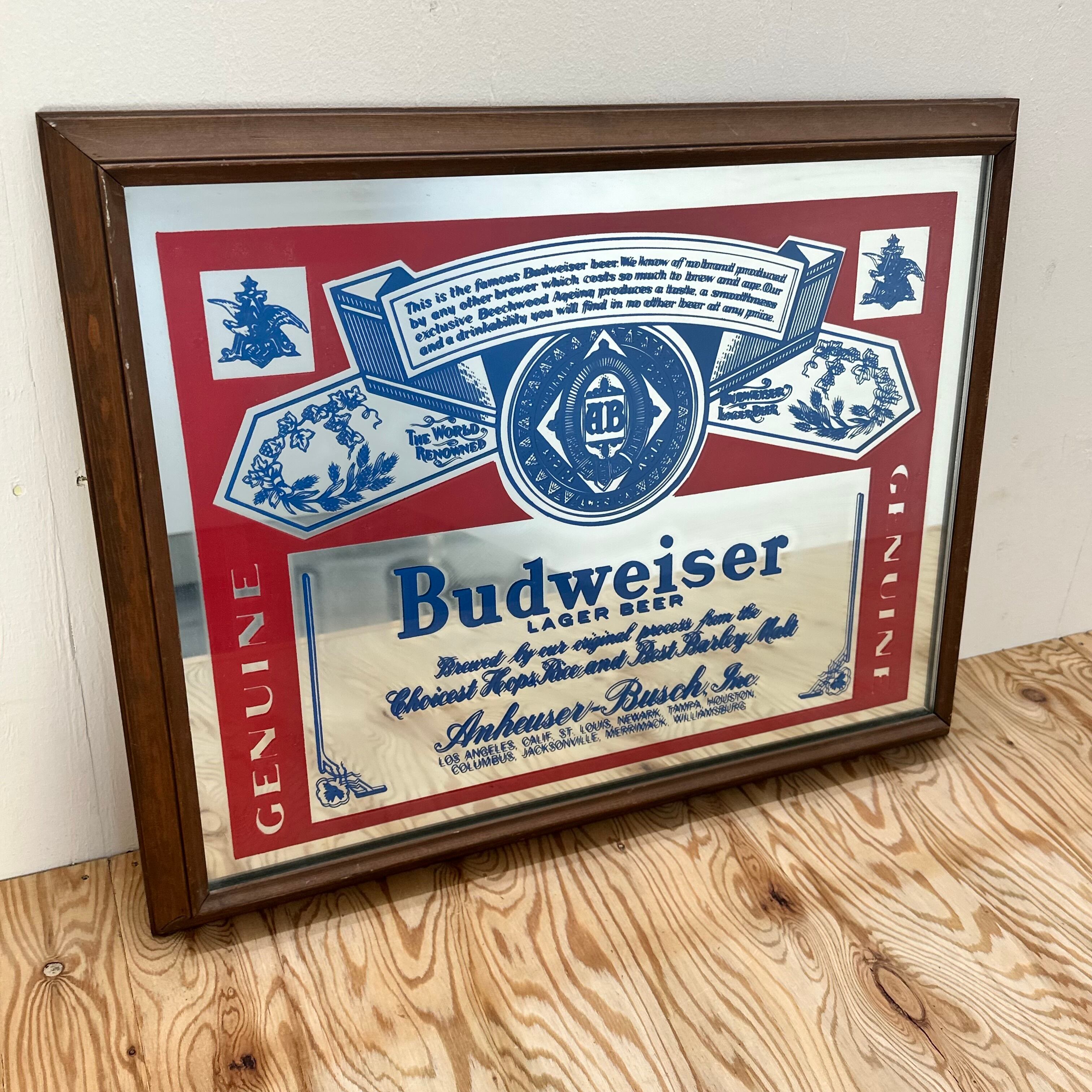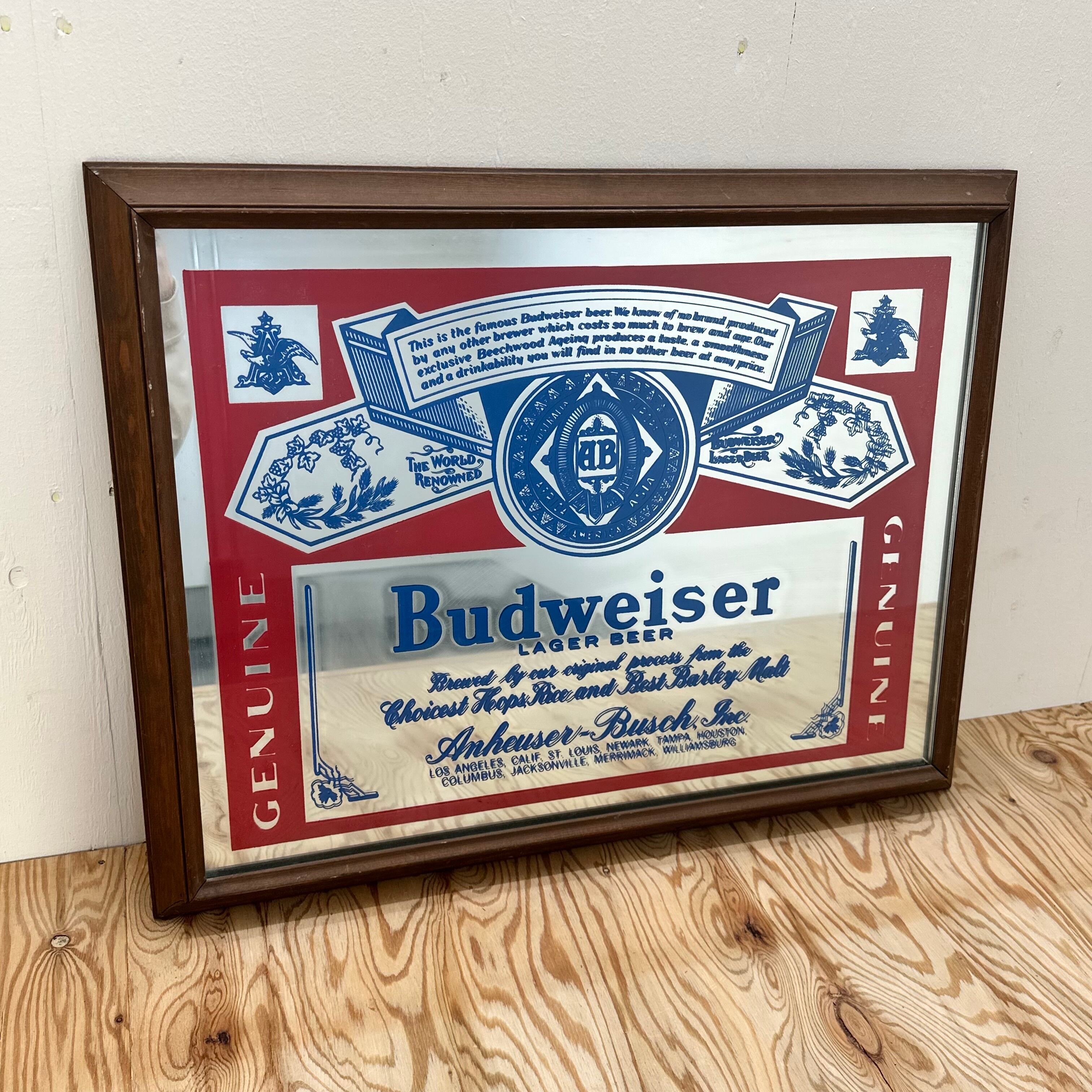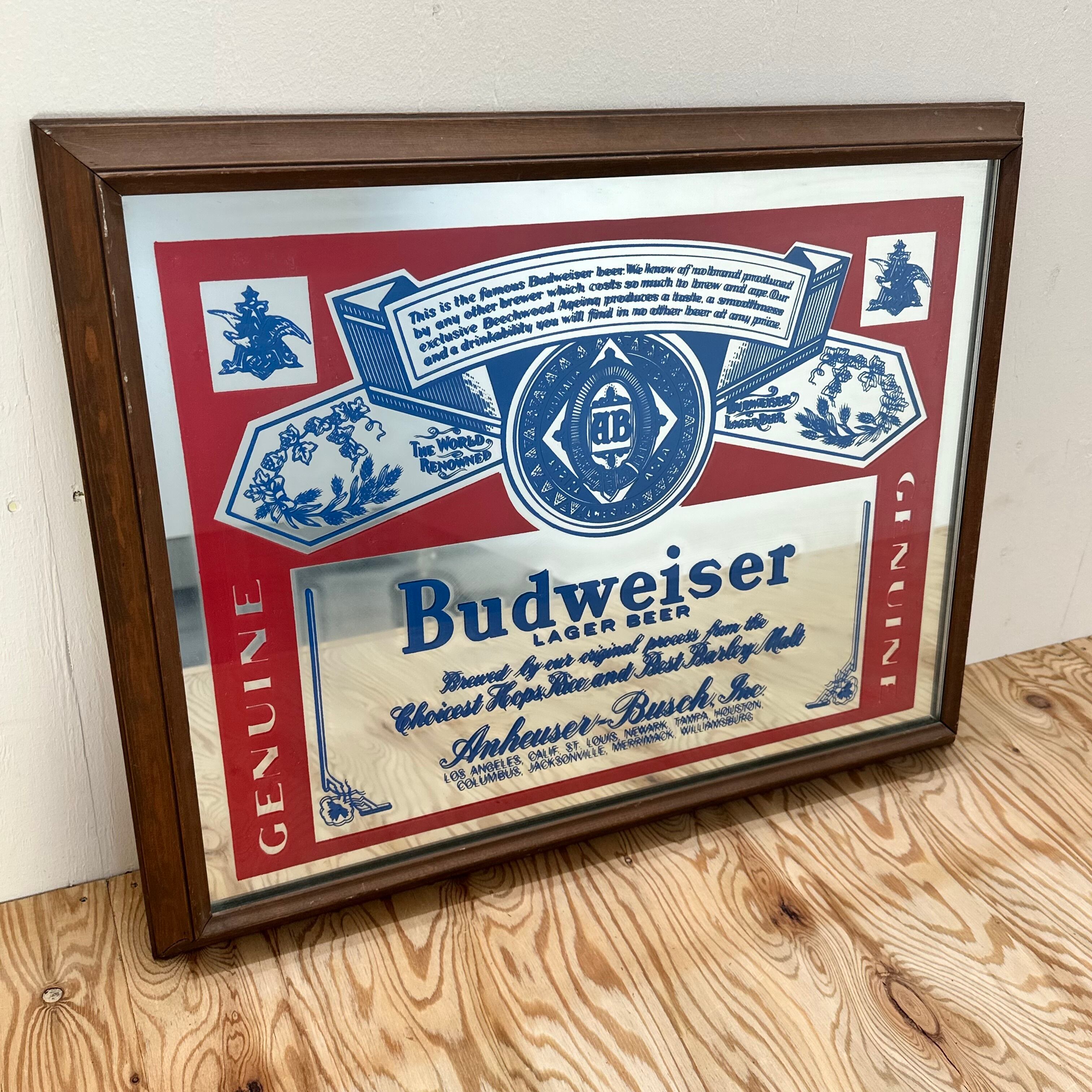 長きにわたり世界中で愛され続けるアメリカのビールブランド、Budweiserのヴィンテージミラーです。鮮やかな赤色の背景に、象徴的なロゴとデザインが目を引きます。大型のパブミラーで厚みもありますので、趣味部屋やガレージハウスに、このパブミラーを飾っていただくだけで雰囲気がガラッと変わります。
