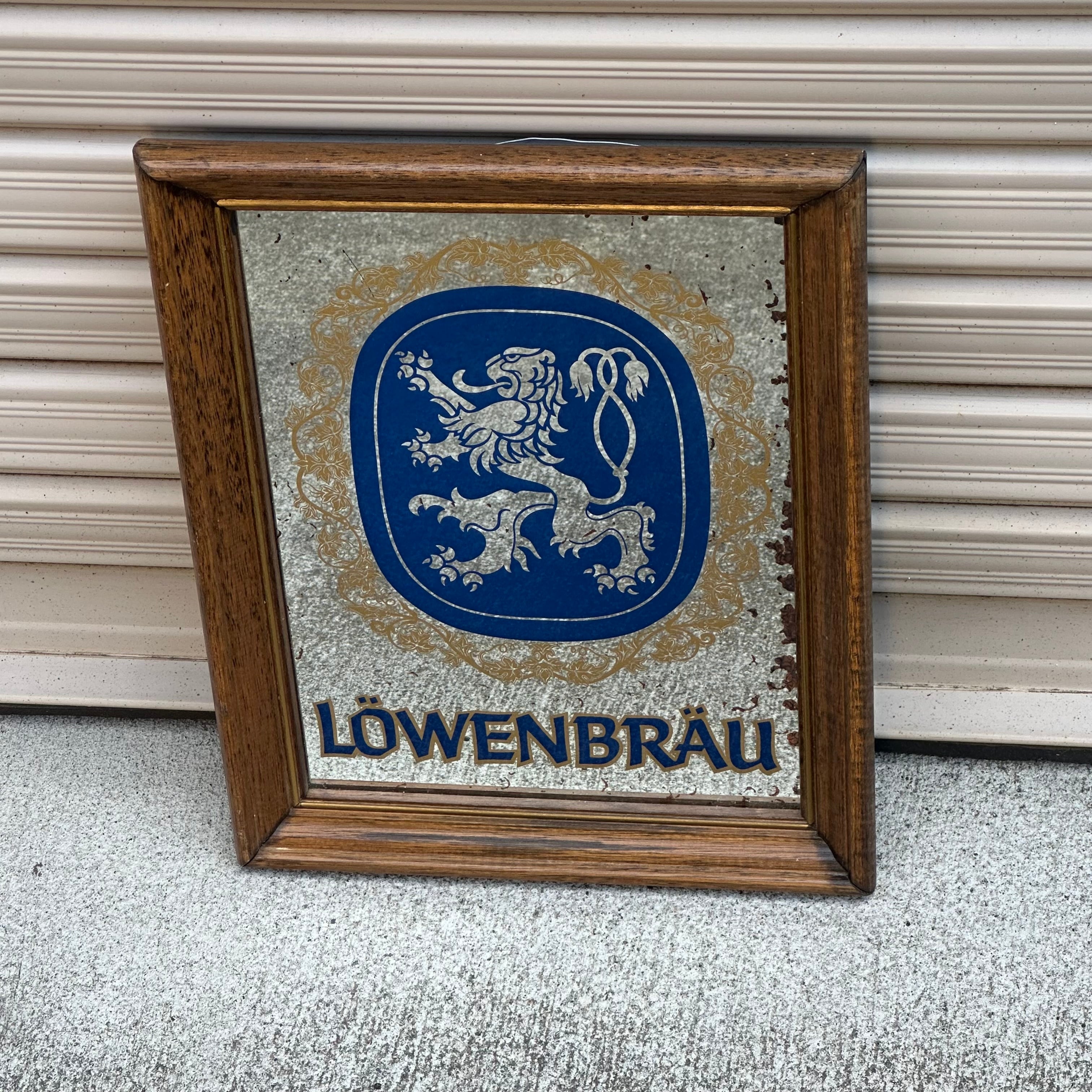 ドイツを代表するビールブランド、Löwenbräu(レーベンブロイ)のロゴが描かれた、ヴィンテージのパブミラーです。