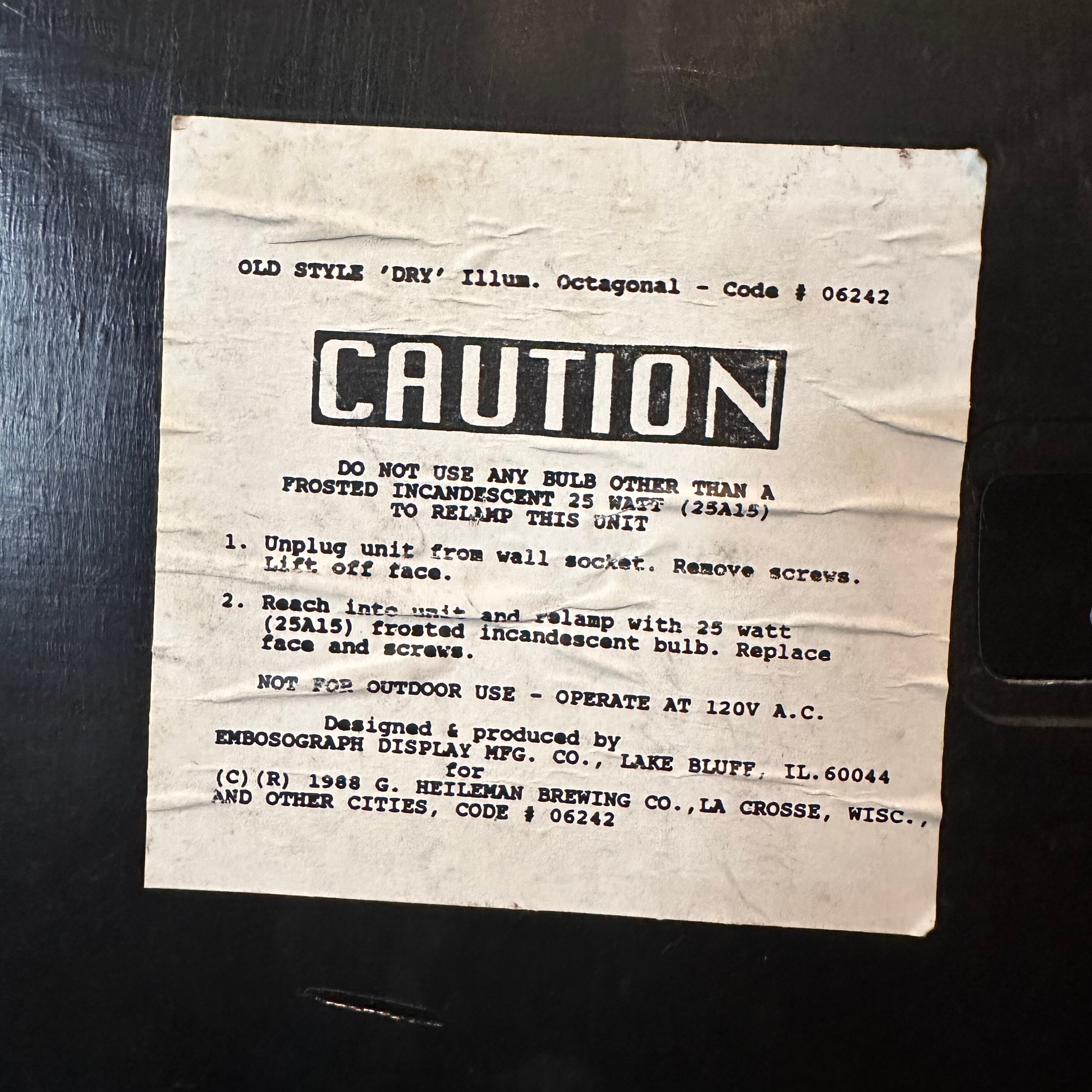 こちらはアメリカのビールメーカーHEILEMAN(ハイルマン)社の「オールドスタイル」の1988年製のライティングサインです。