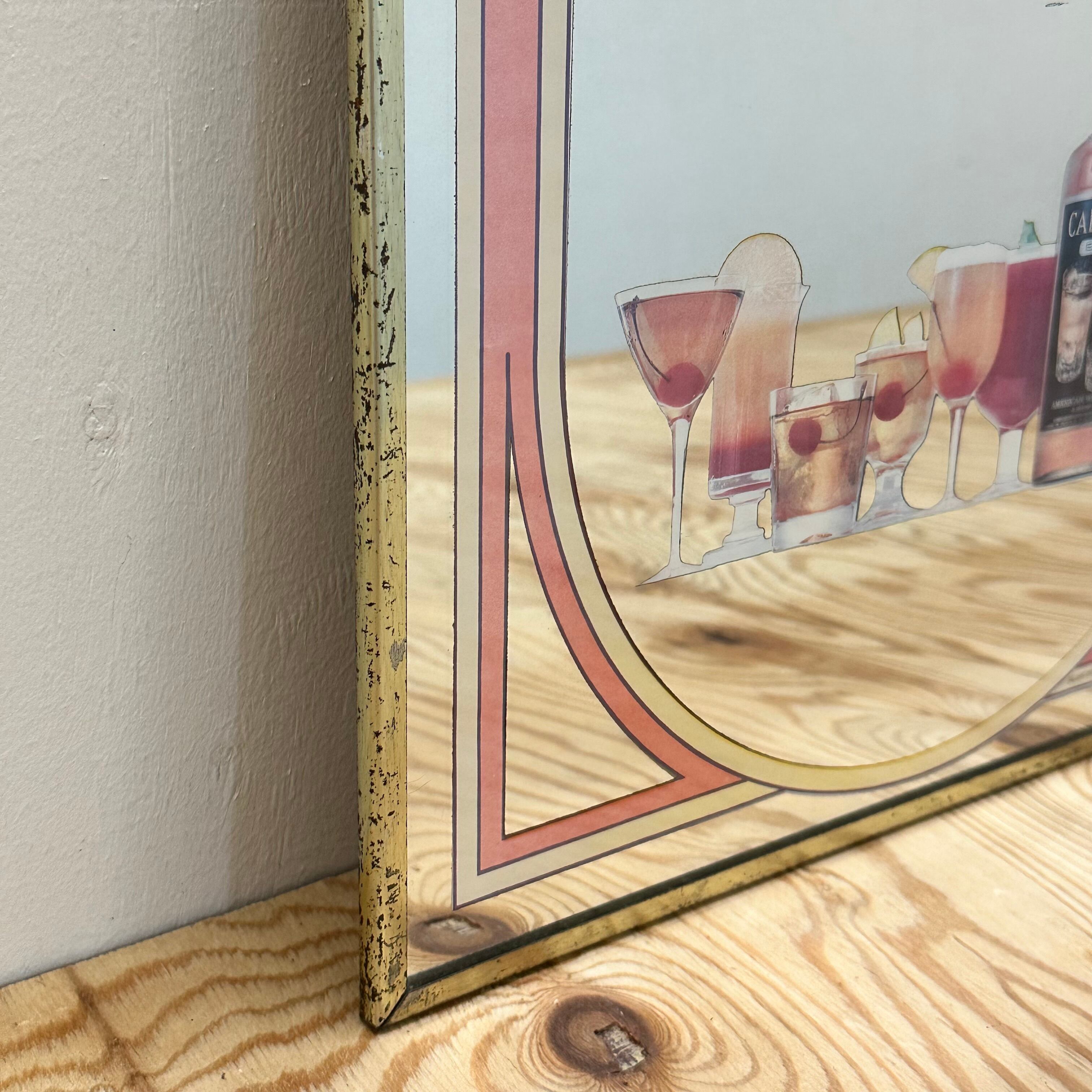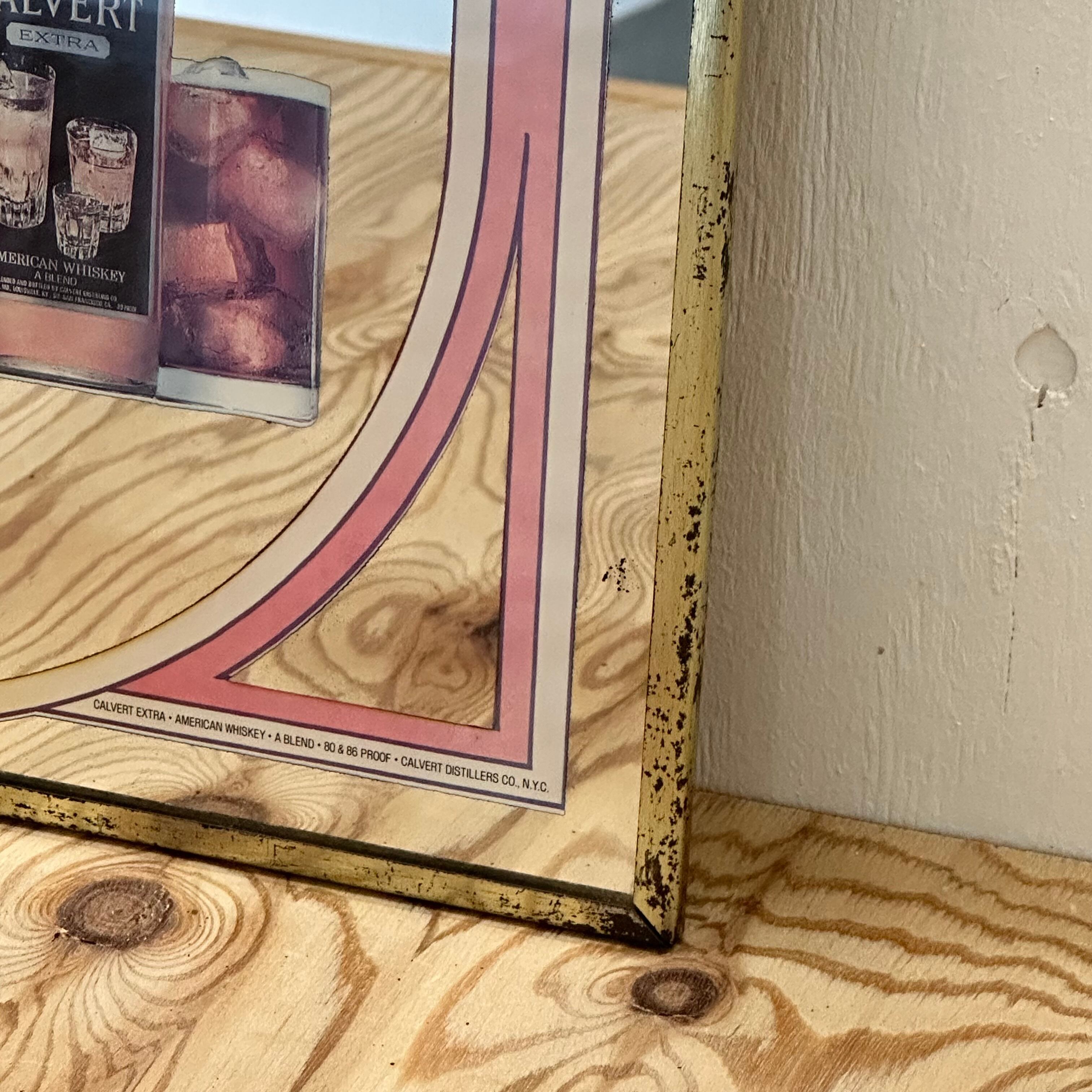 ケンタッキー州クレルモントで生産され、ミズーリ州セントルイスに本社を置くLuxcoが所有するブレンデッドウイスキー、CARVERT Extra Whiskey(カルバートエクストラウイスキー)のパブミラーです。デザインの中心に、カルバートウイスキーを使用したカクテルがデザインされています。お部屋や店舗のインテリアにいかがでしょうか。