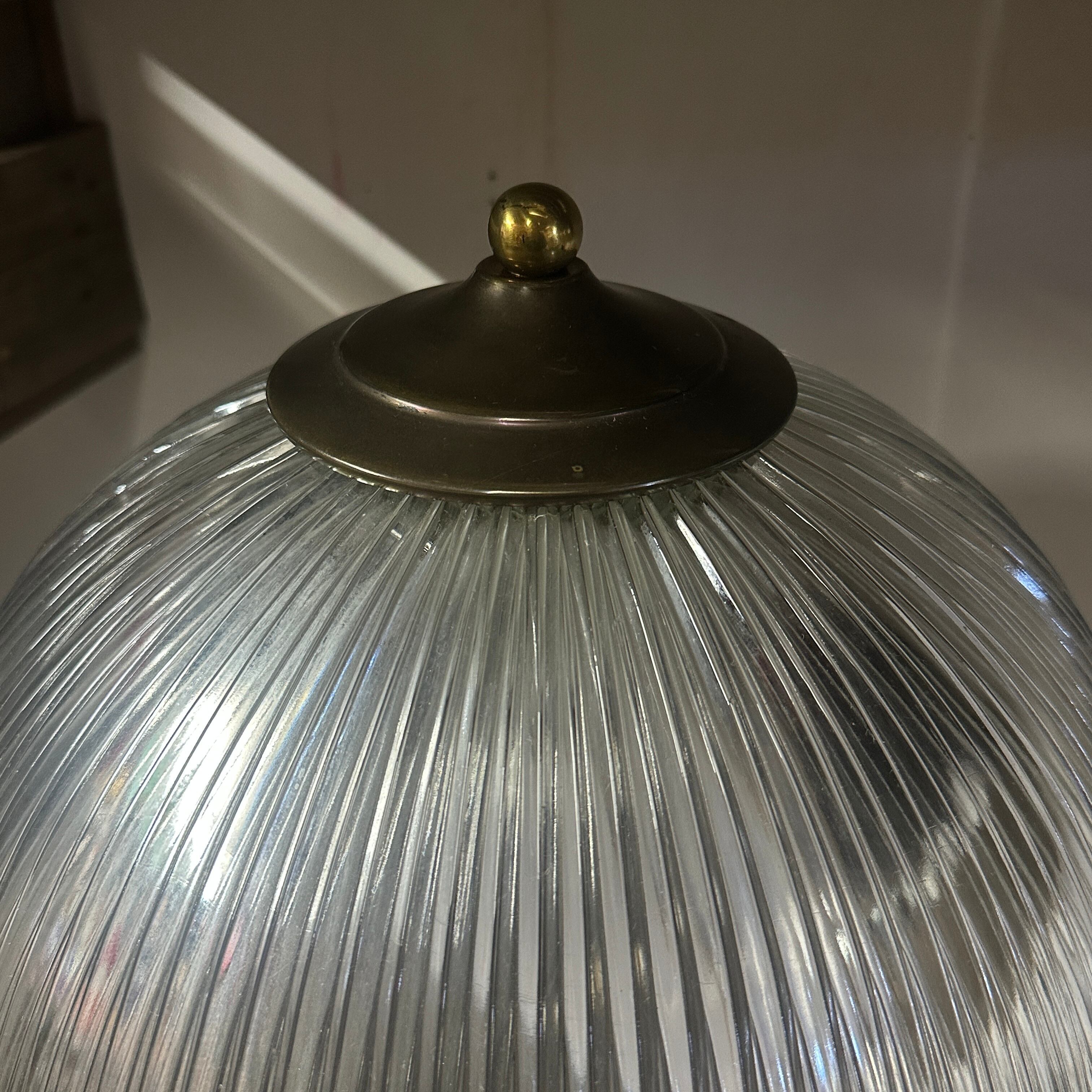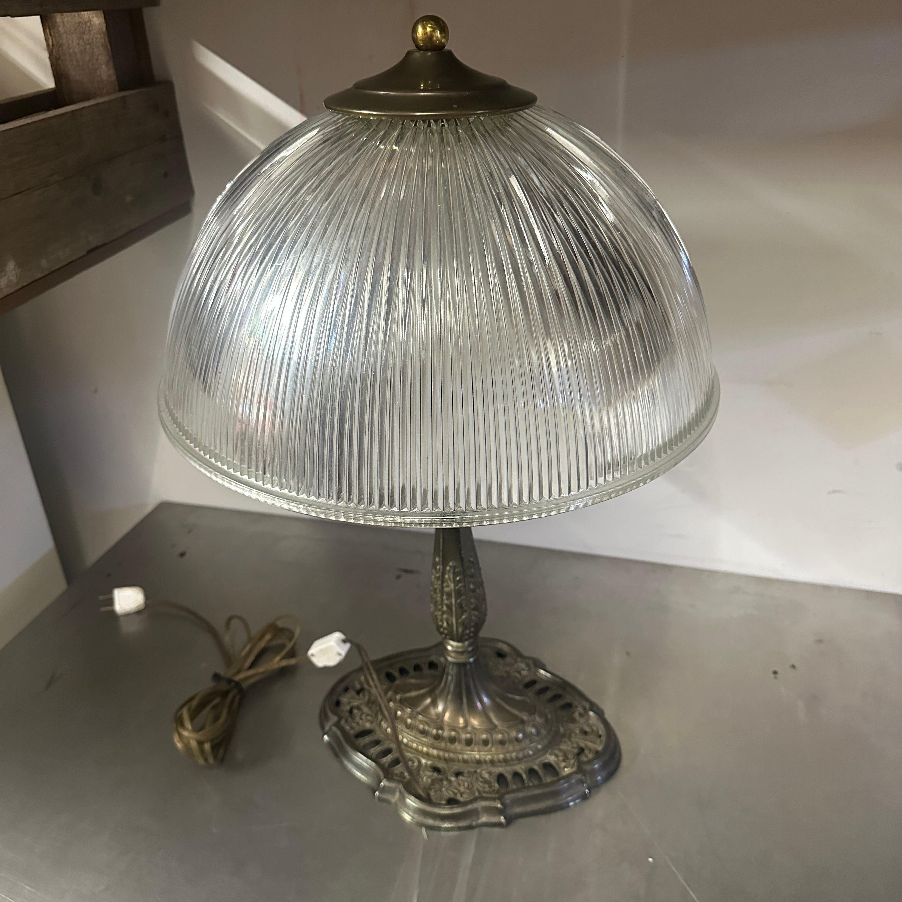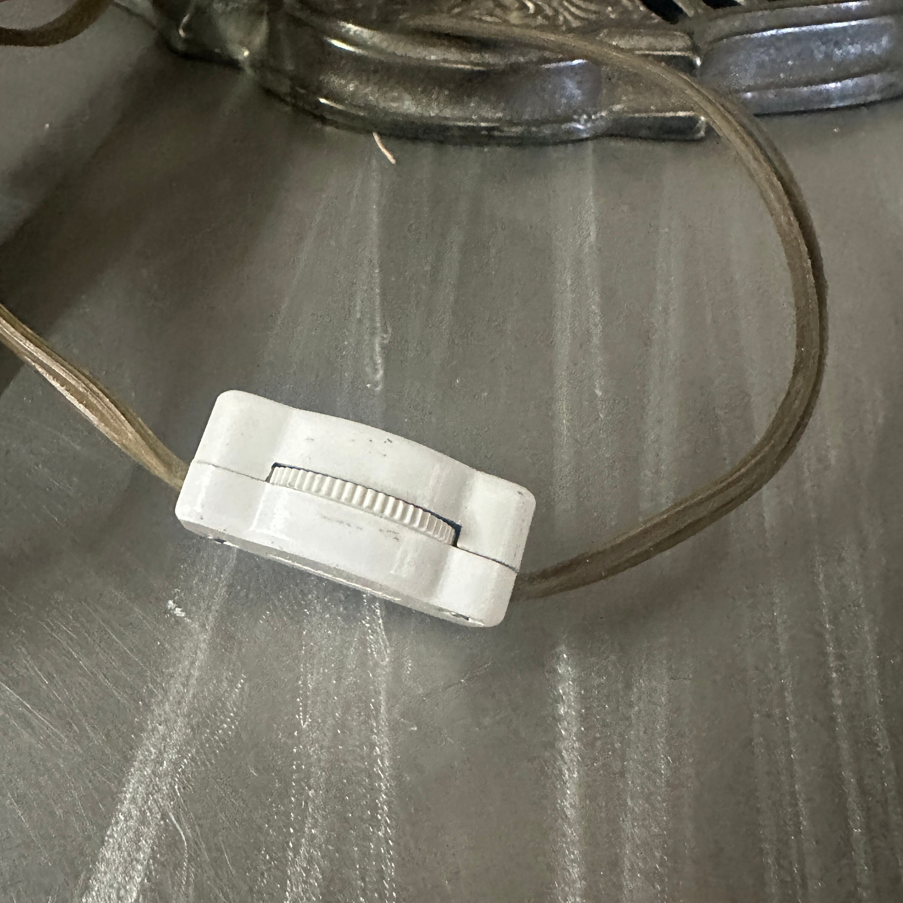 真鍮製の重厚なベースと、レトロな雰囲気のストライプガラスシェードが特徴的で、点灯すると温かみのある光がお部屋を照らします。消灯時もオブジェとして存在感があり、アンティークやヴィンテージがお好きな方におすすめの逸品です。LEVITONは高品質な照明部品を製造していることで知られるアメリカのメーカーであり、このランプが当時から丁寧に作られたものであることを示しています。ずっしりと重みのあるアイテムで高級感があります。お部屋のインテリアやお店のディスプレイにいかがでしょうか。