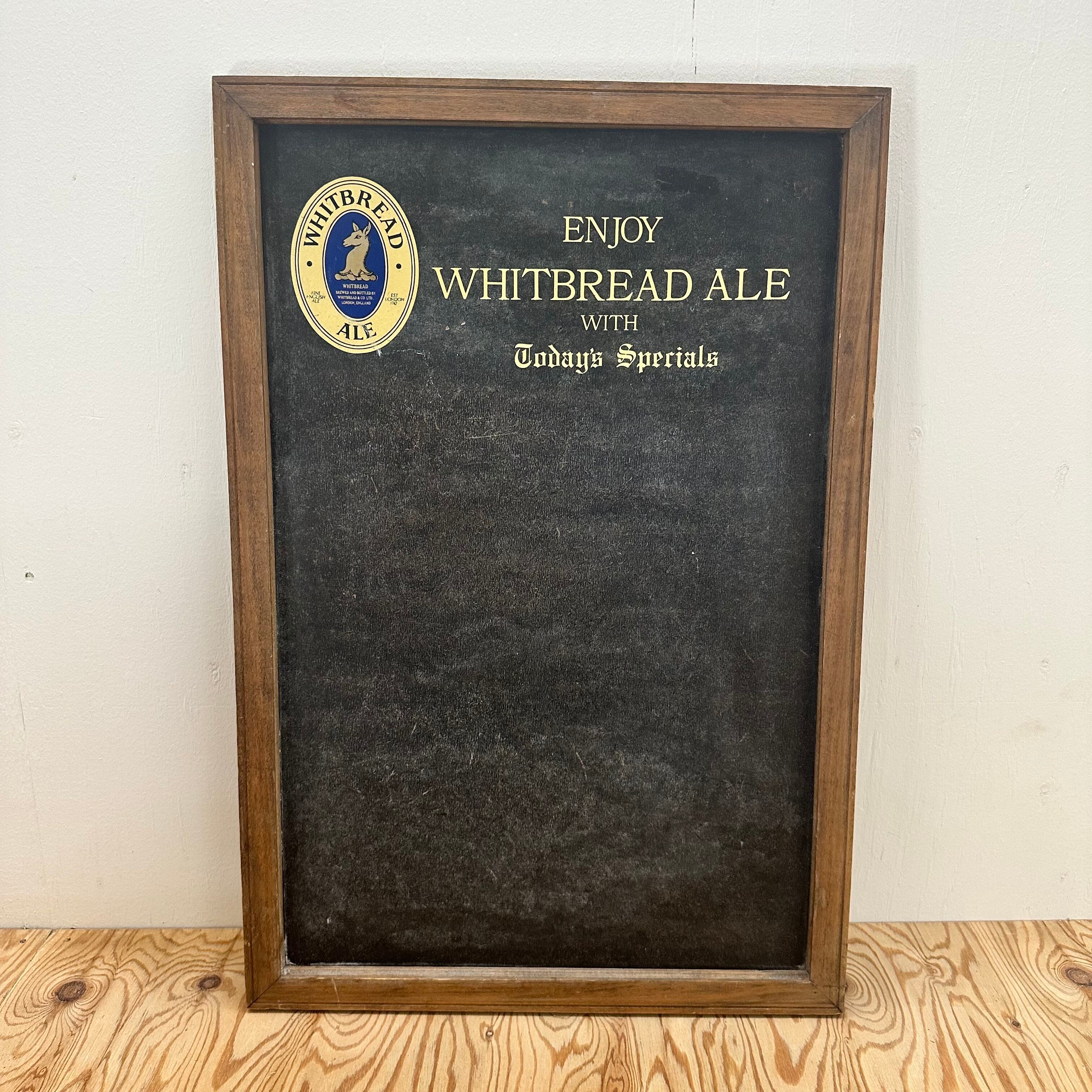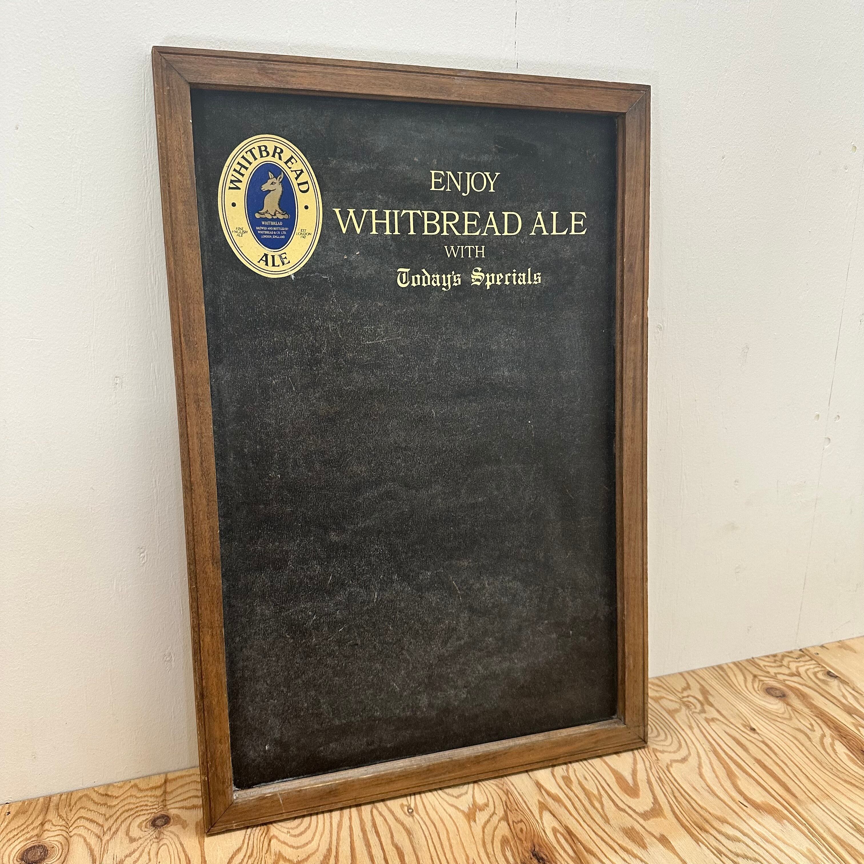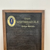 イギリスのビールメーカー「WHITBREAD」のヴィンテージチョークボードです。ウィットブレッドは、イギリス・ベッドフォードシャーのダンスタブルに本拠を置くホスピタリティ関連企業。現在はホテルチェーン「Premier Inn」とレストランチェーンの運営が中心となっています。創業は18世紀で、長くビール醸造業者として事業を行っていました。数少ない英国王室御用達ビールとして知られているそうです。使い込まれた風合いや、手書きの跡が残っておりますが、それもまた一点ものの魅力です。カフェやガレージ、お部屋のアクセントとして、時代を超えた存在感を放ちます。メニューボードやメッセージボードとして、おしゃれな空間を演出するのにいかがでしょうか。