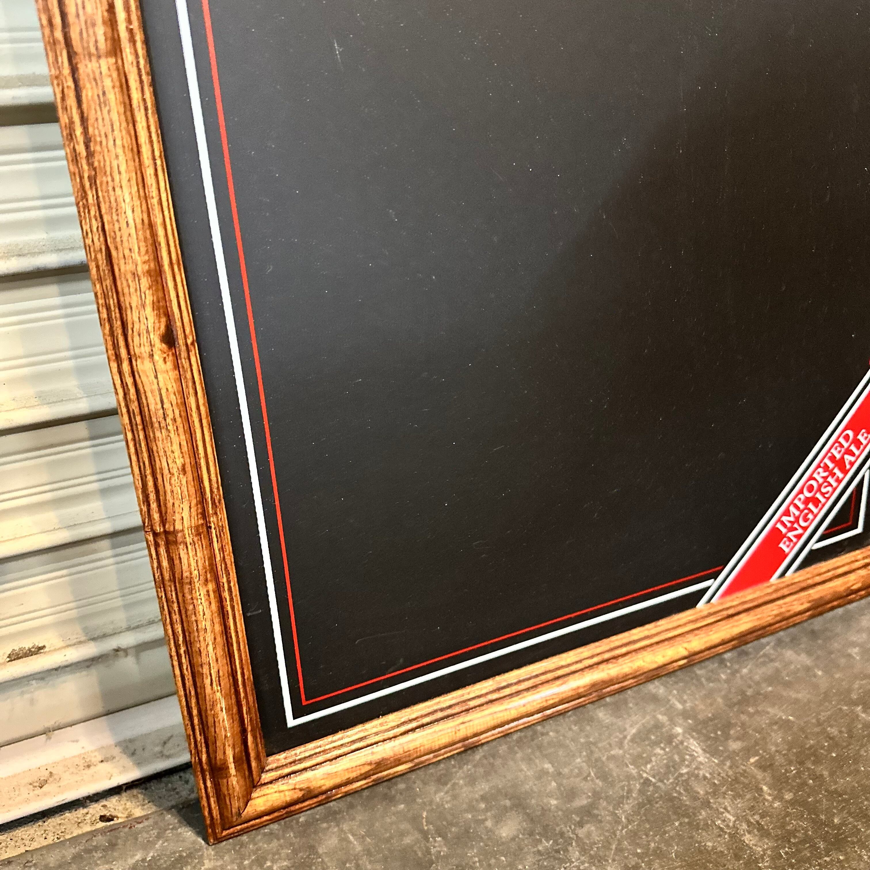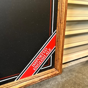 イギリスで有名な「DOUBLE DIAMONDビール」のチョークボードです。ダブルダイアモンドは、1950年代、1960年代、1970年代に英国で最も売れたビールの1つでした。木枠で囲まれ、デザイン性の高いロゴが入っているしっかりとした作りのアイテムです。ボード面の状態も良く、ご自宅内でのインテリアや伝言ボードとして、またはカフェや古着屋などの店舗でのご使用に最適です。壁掛けにも対応できる金具が背面に付いております。