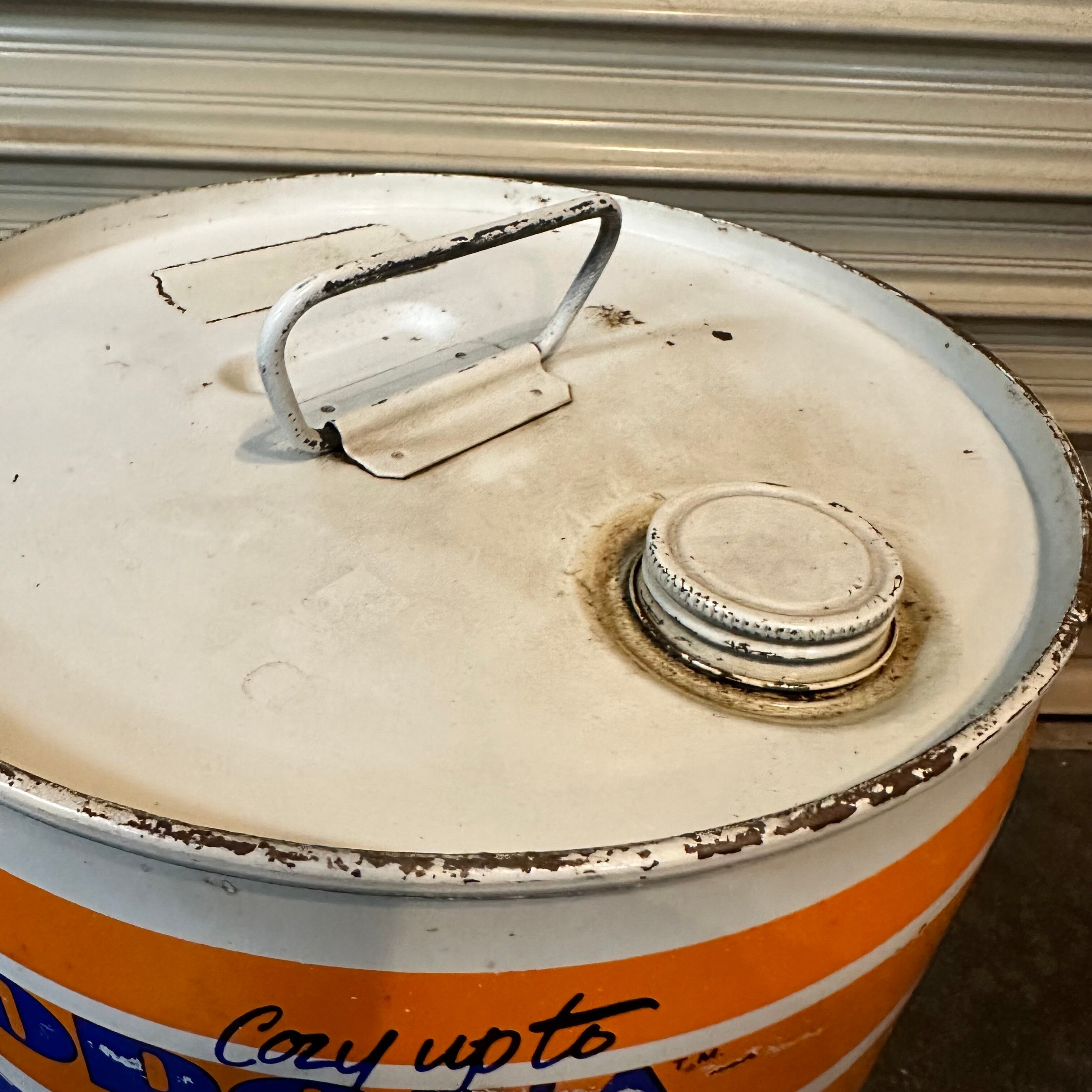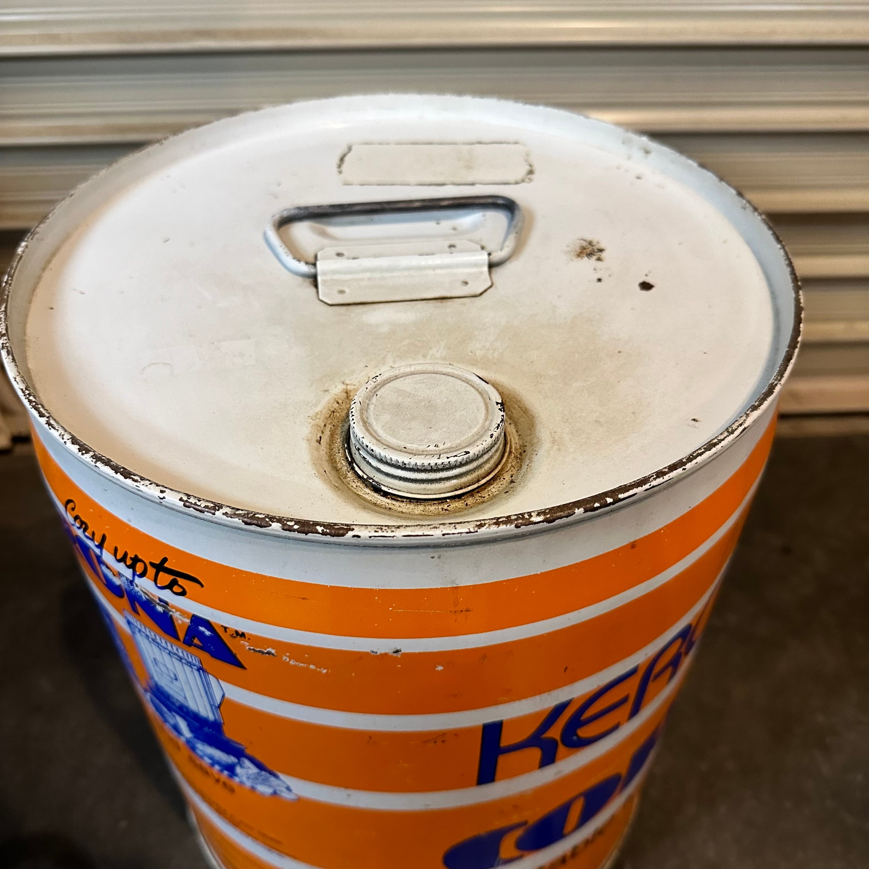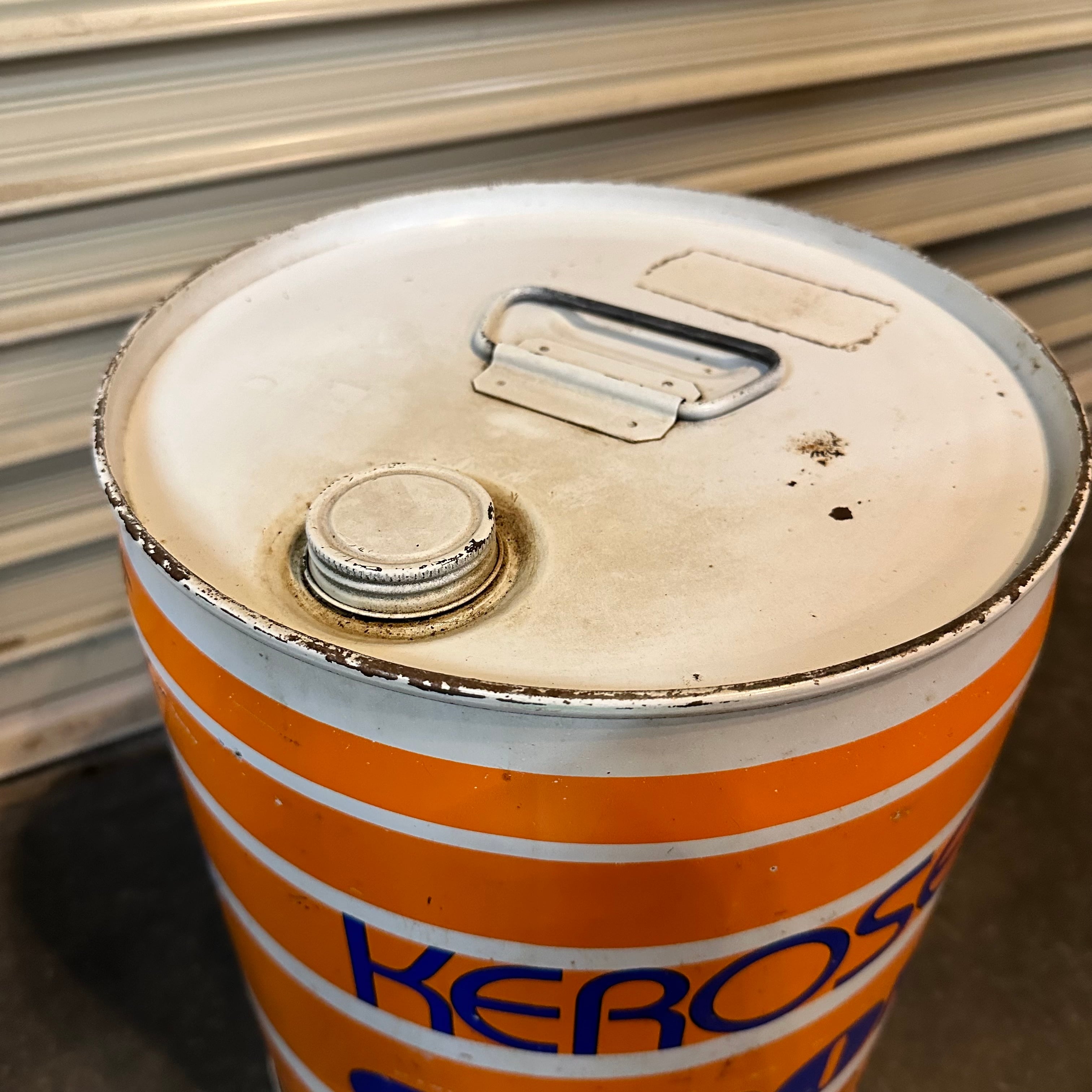 カラーパターンがクールなKEROSENEのヒーター用オイル缶です。1981年のものですが、屋内に保管されていたのか、状態が非常に良いです。もちろん小さなダメージはありますが、ヴィンテージ独特の味として雰囲気を楽しめます。店舗のディスプレイやガレージハウスのインテリアにいかがでしょうか。