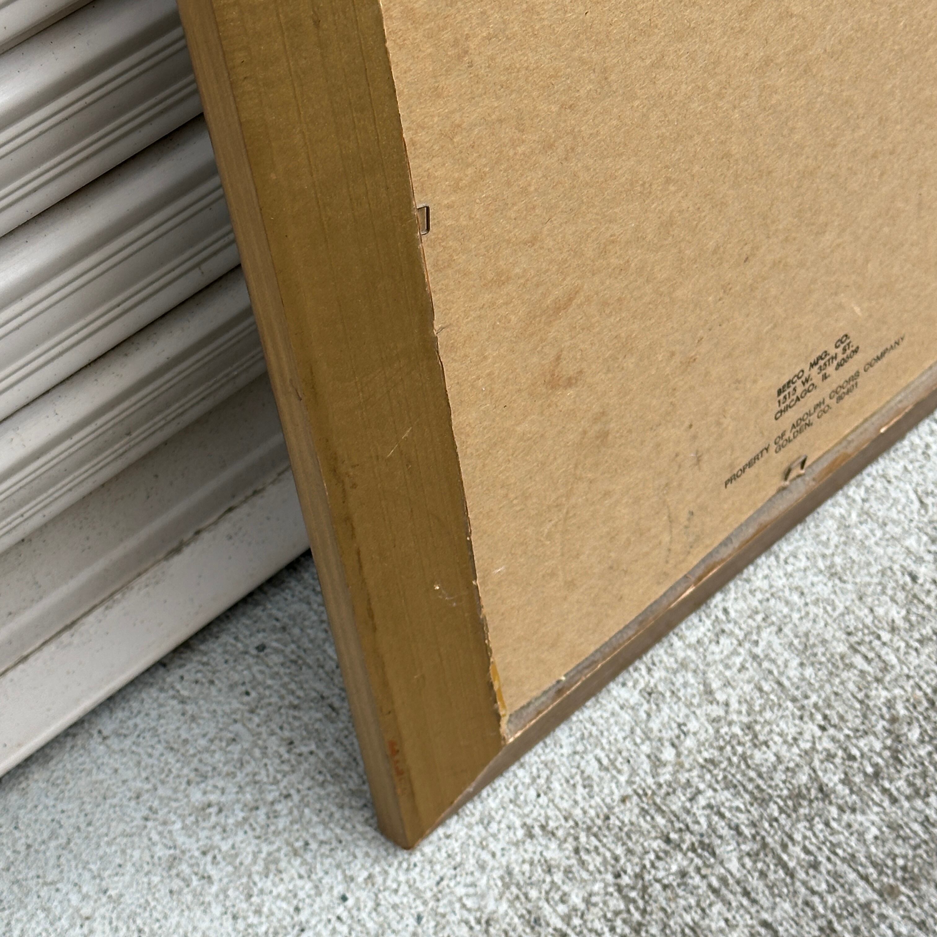 アメリカのビールメーカー「Coors (クアーズ)」の販促用パブミラーです。裏面には製造元である「Beeco Mfg. Co. (ビーコ・マニュファクチャリング)」の社名と、「PROPERTY OF ADOLPH COORS COMPANY (アドルフ・クアーズ・カンパニーの所有物)」という記載があり、バーやパブで実際に使用されていた希少なビンテージアイテムであることが分かります。Beeco Mfg. Co.は1930年代から1970年代にかけて多くのビールメーカーのガラス製看板やミラーを製造しており、第二次世界大戦中の金属不足の時期に特に人気がありました。