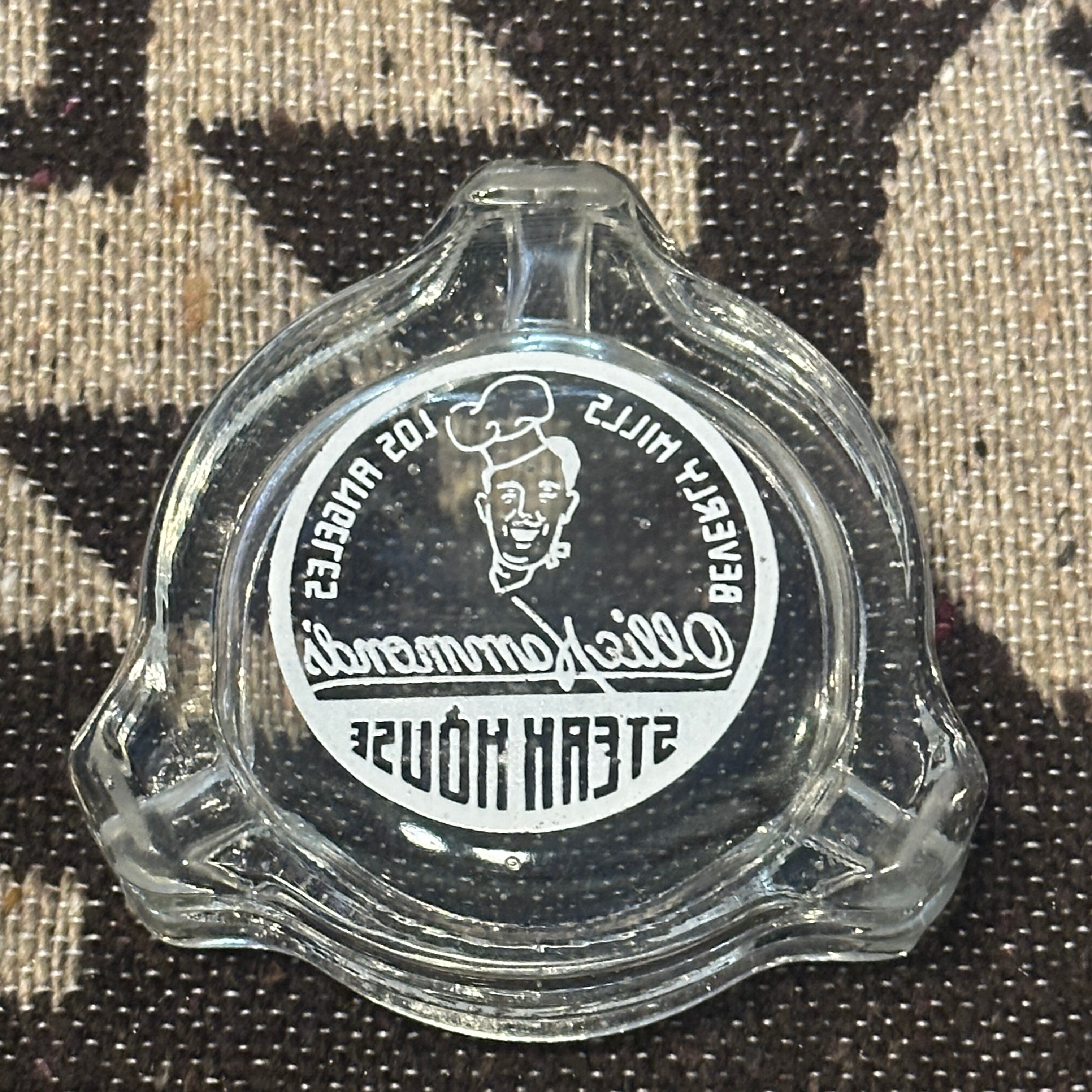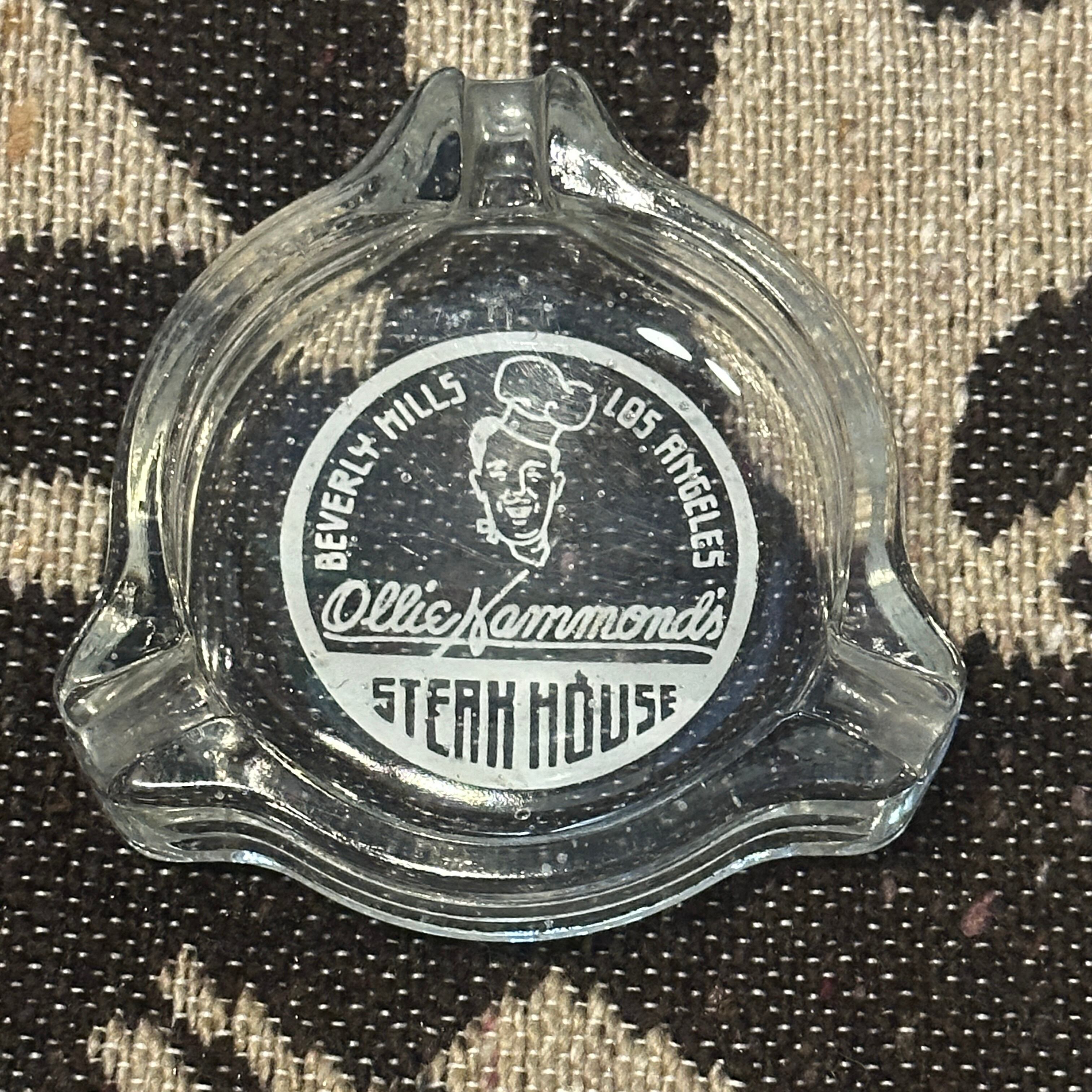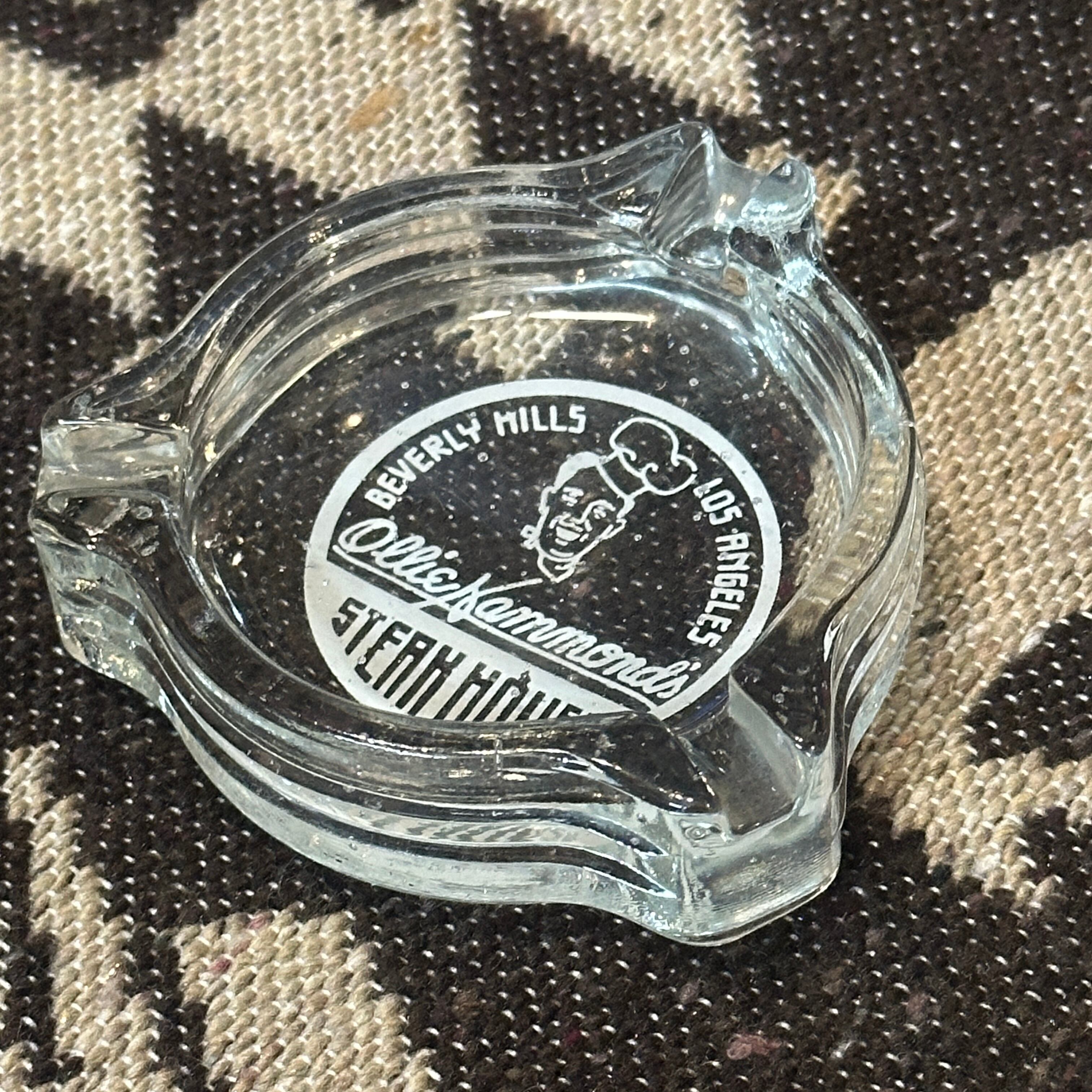 ロサンゼルスの象徴的なレストラン「Ollie Kammond's Steak House(オリー・カモンズ・ステーキハウス)」のロゴが入った、ガラス製ヴィンテージ灰皿です。かつてハリウッドのビジネスマンや俳優、家族連れに愛された人気店の貴重な記念品です。