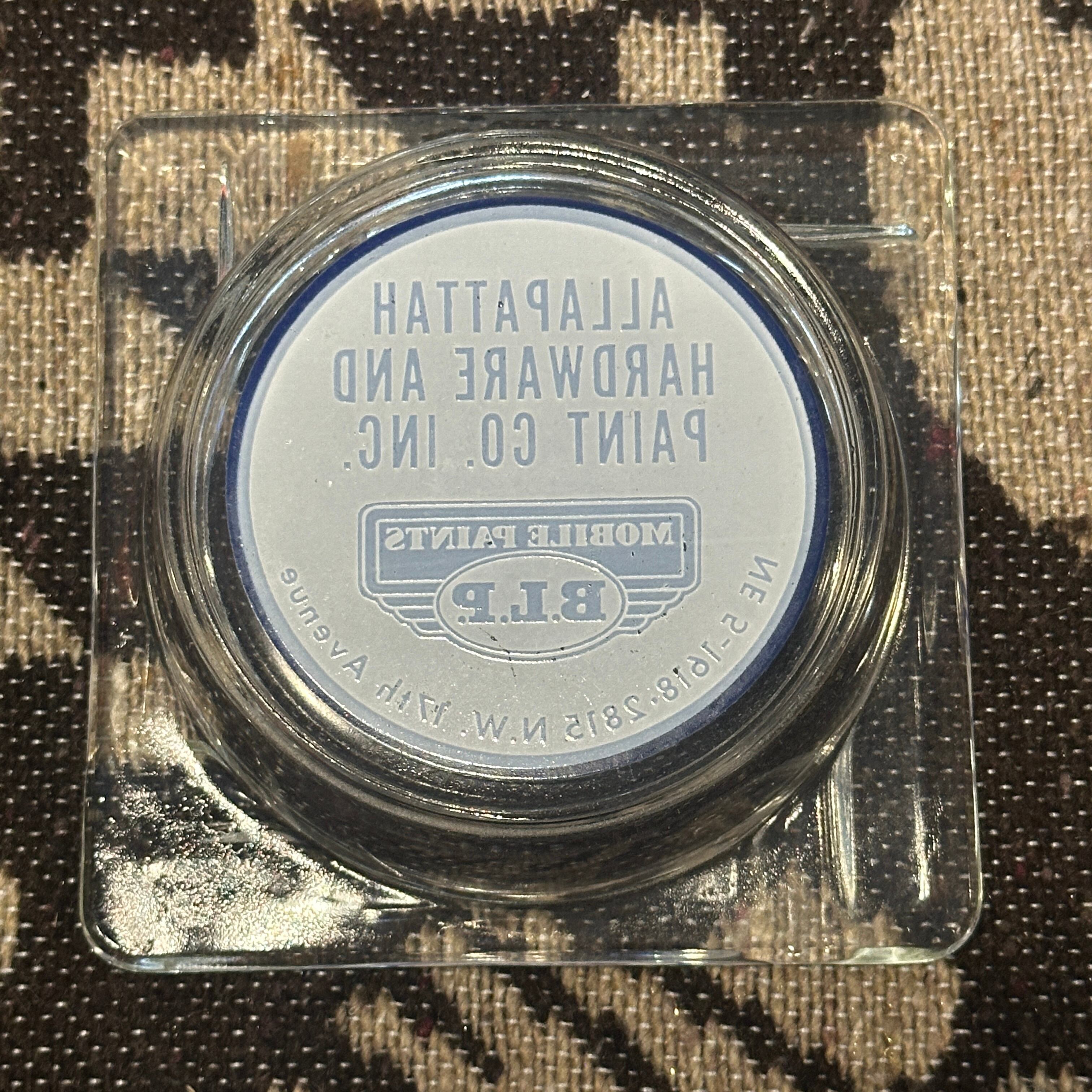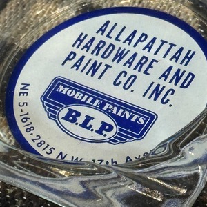 フロリダ州マイアミにあった「Allapattah Hardware and Paint Co. Inc.(アラパタ・ハードウェア・アンド・ペイント)」のロゴが入った、ガラス製ヴィンテージ灰皿です。アラバマ州の歴史ある塗料メーカー「B.L.P. Mobile Paints」の販売代理店でもあったようです。アメリカンヴィンテージやガレージ雑貨のコレクターに人気があります。