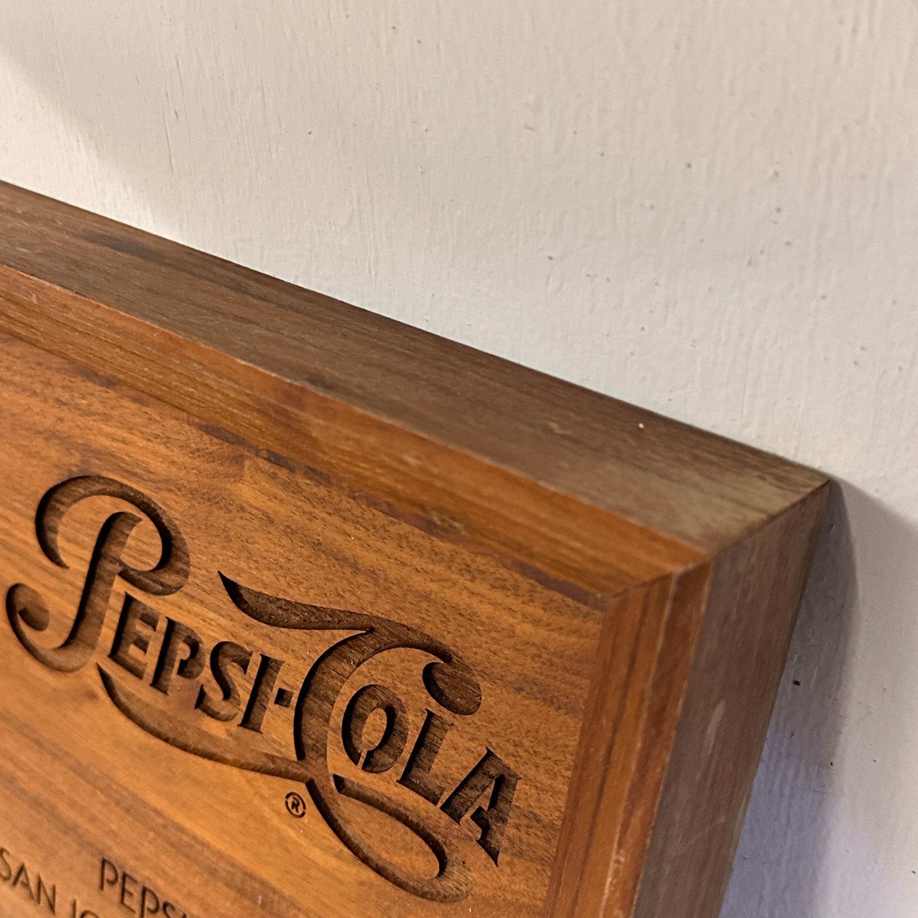 当時の最新技術であったレーザー刻印(Laser Engraved)が施された、重厚感のある木製フレーム仕様。単なるレトロ雑貨ではなく、ペプシの歴史を感じさせる極めて希少なコレクターズアイテムです。