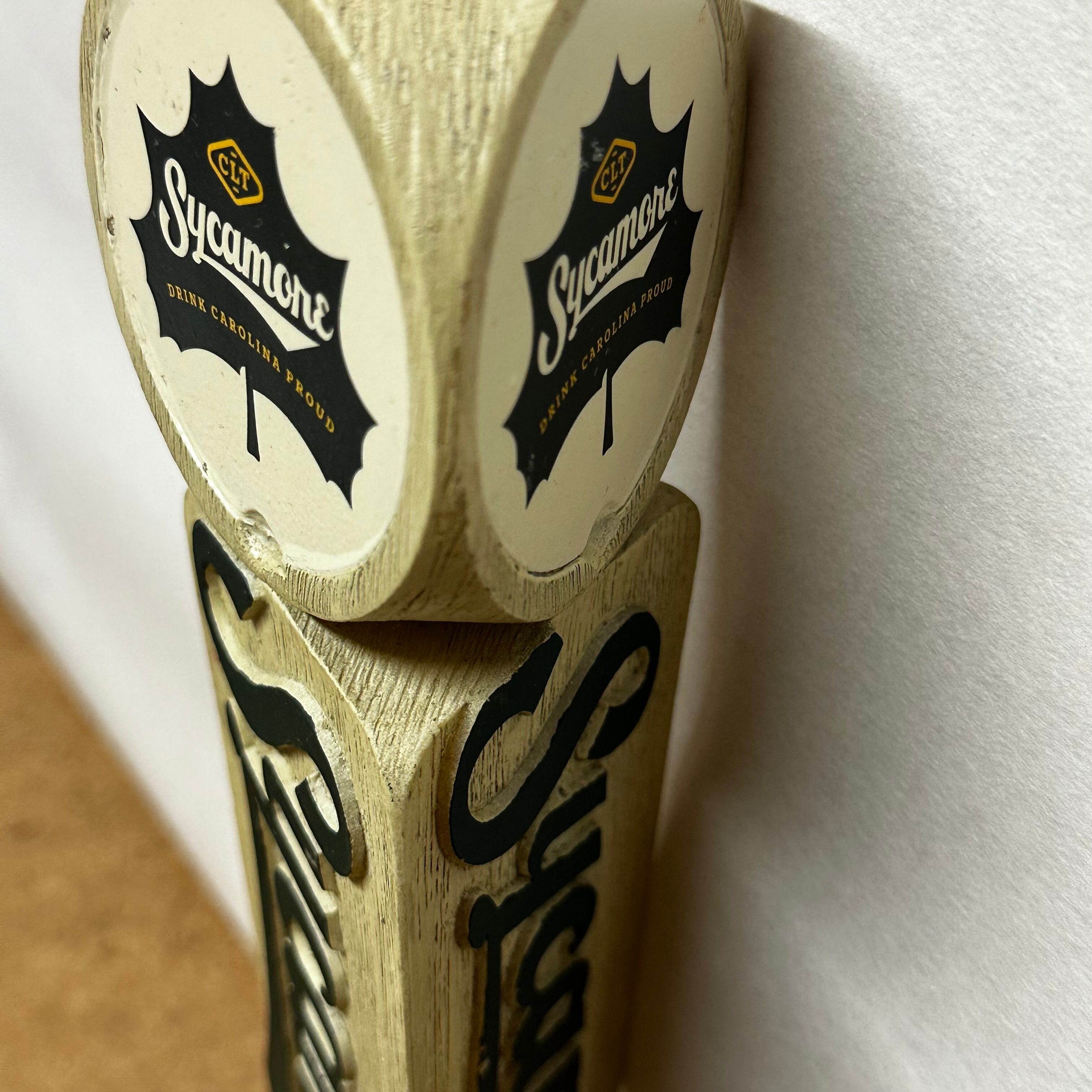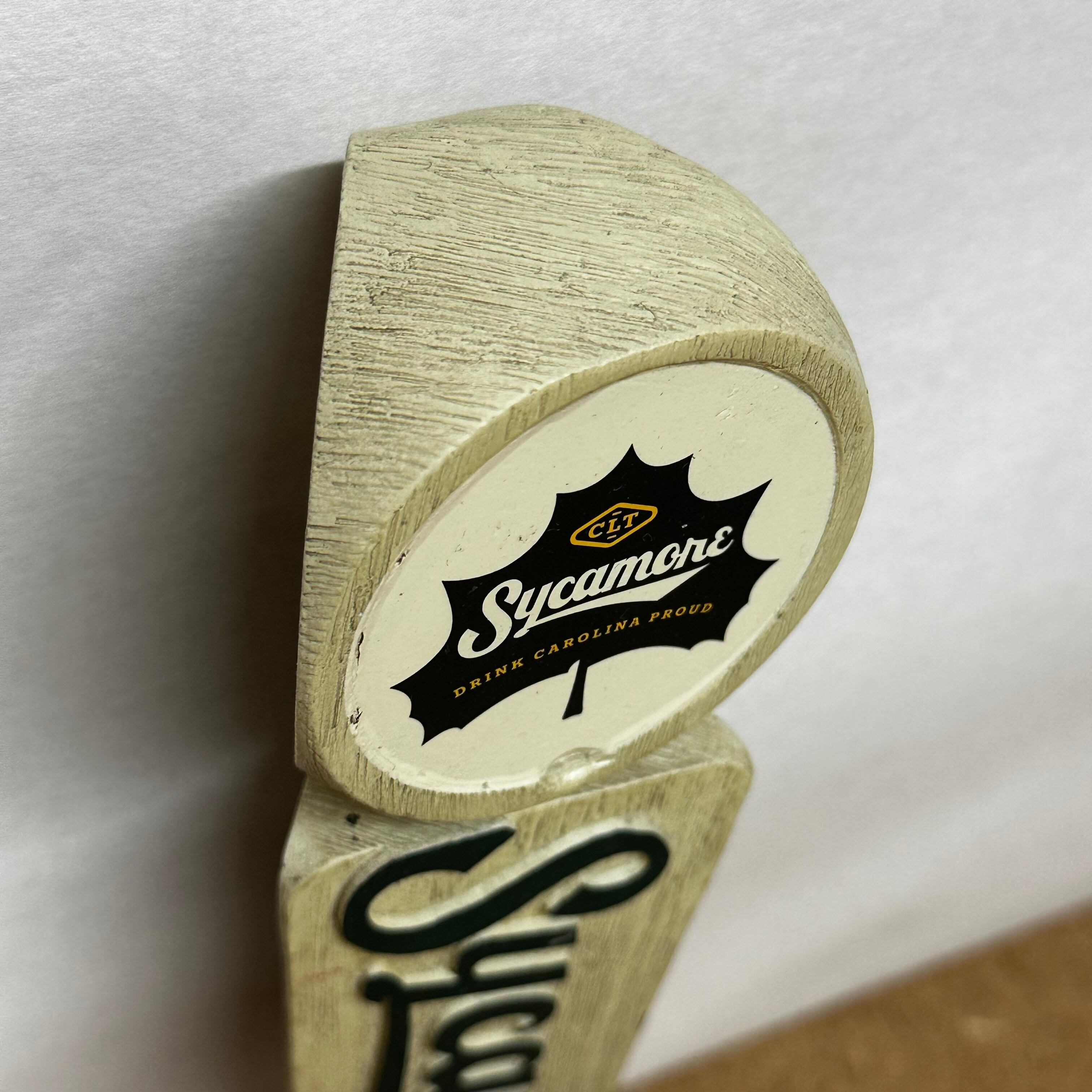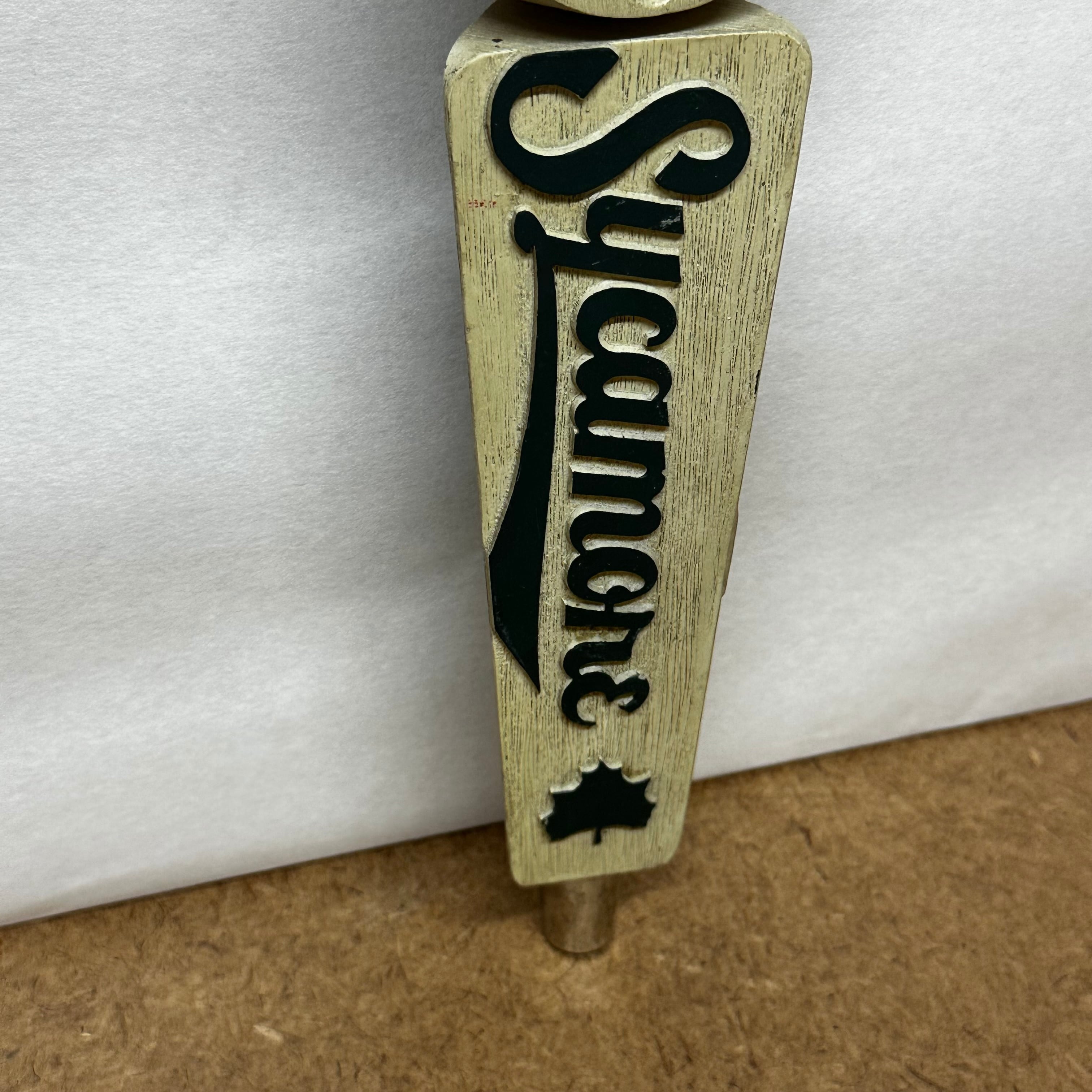 アメリカ・ノースカロライナ州発のクラフトビールブランド「Sycamore」のビアタップハンドルです。ナチュラルなウッド調の質感に、立体的なロゴとリーフマークが施されたデザインで、バーやショップのディスプレイとしても映えるおしゃれなアイテムです。クラフトビール関連グッズやビアタップハンドルをコレクションしている方、またはアメリカンテイストのインテリアをお探しの方におすすめです。また、アイデア次第で車のシフトノブとしてもご活用いただけます(※加工が必要な場合があります)。