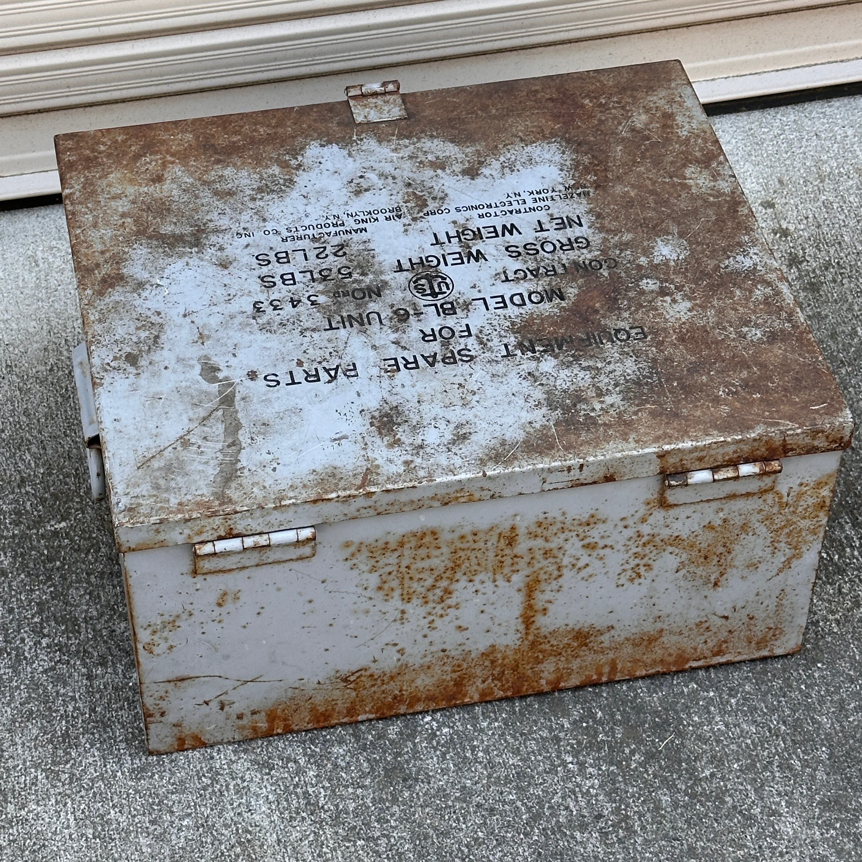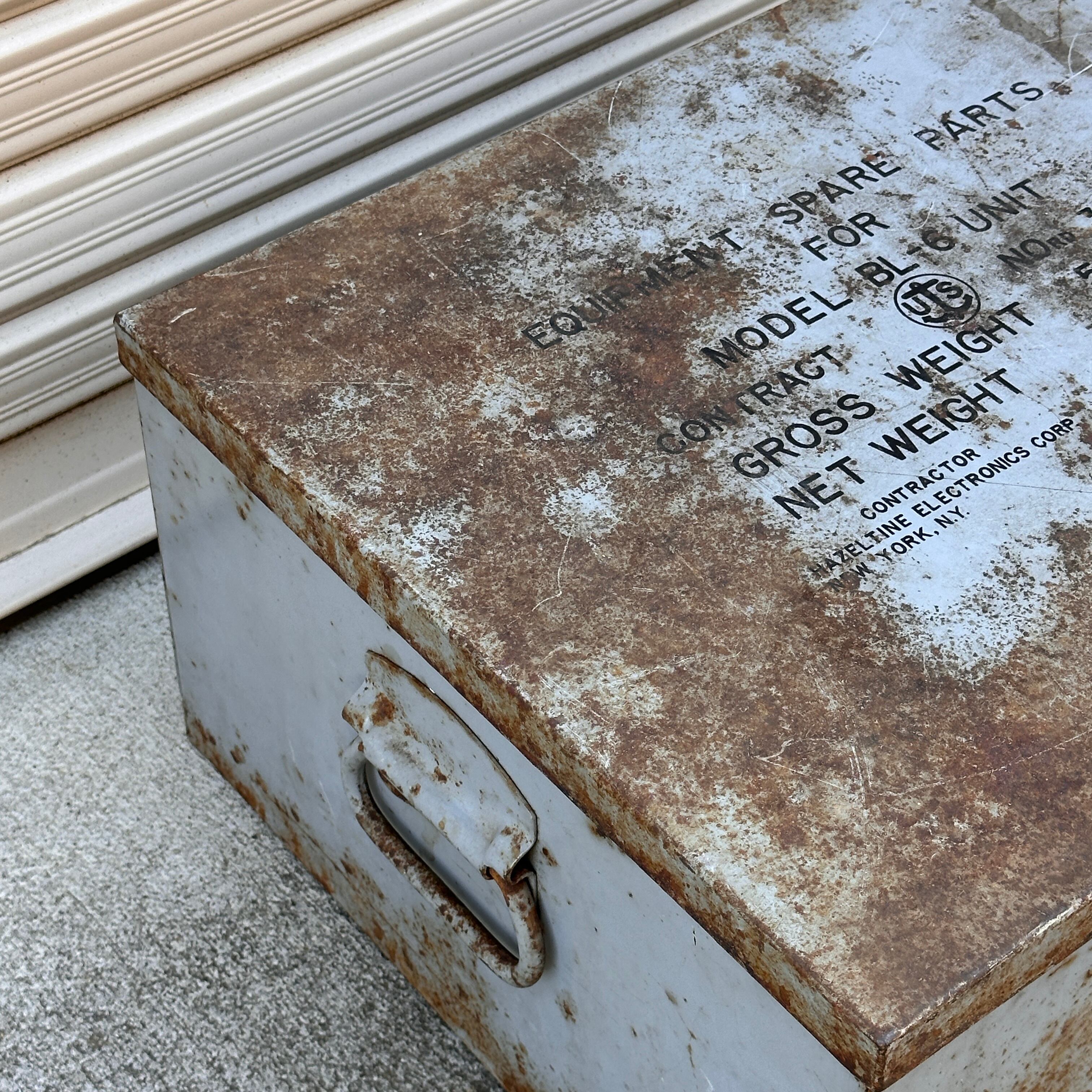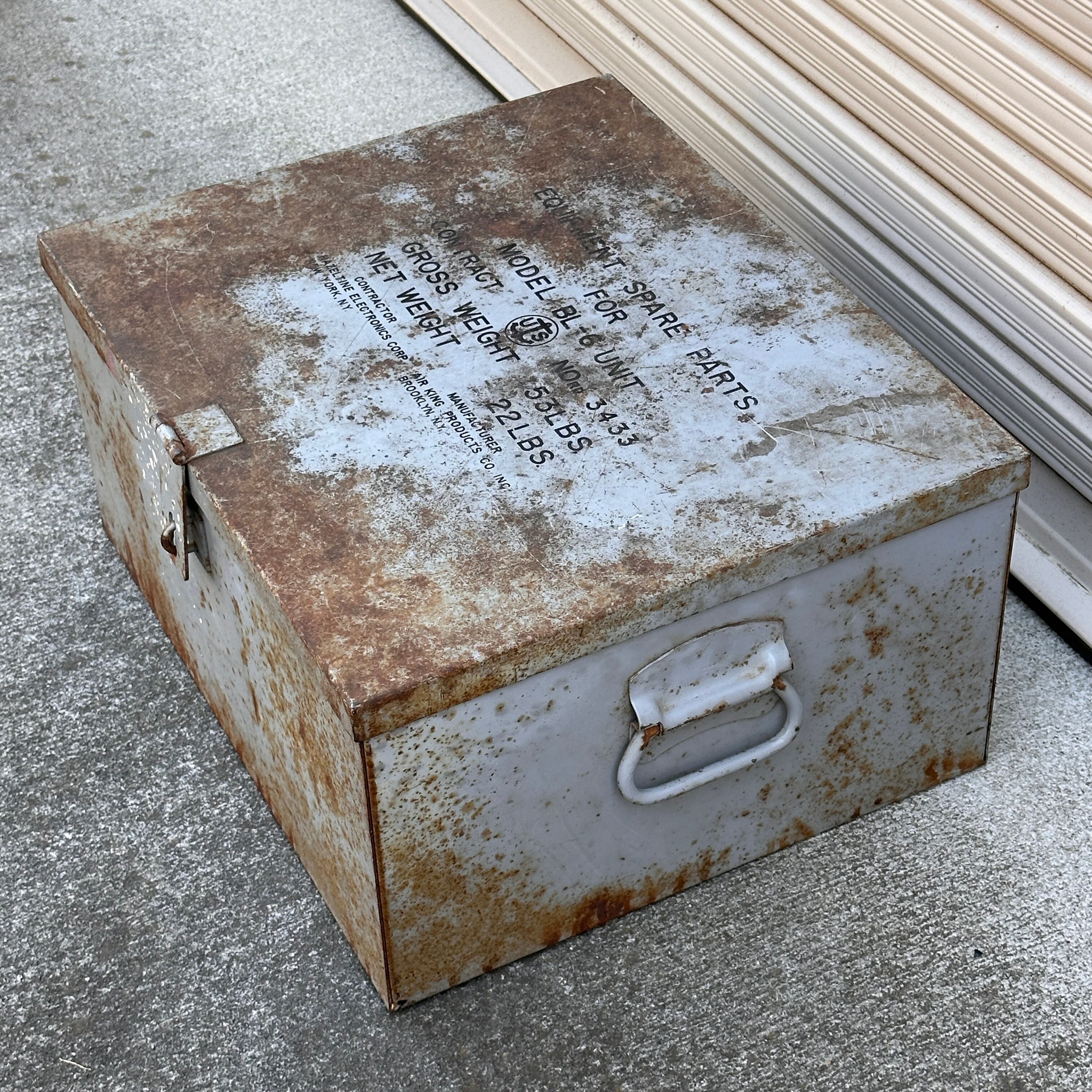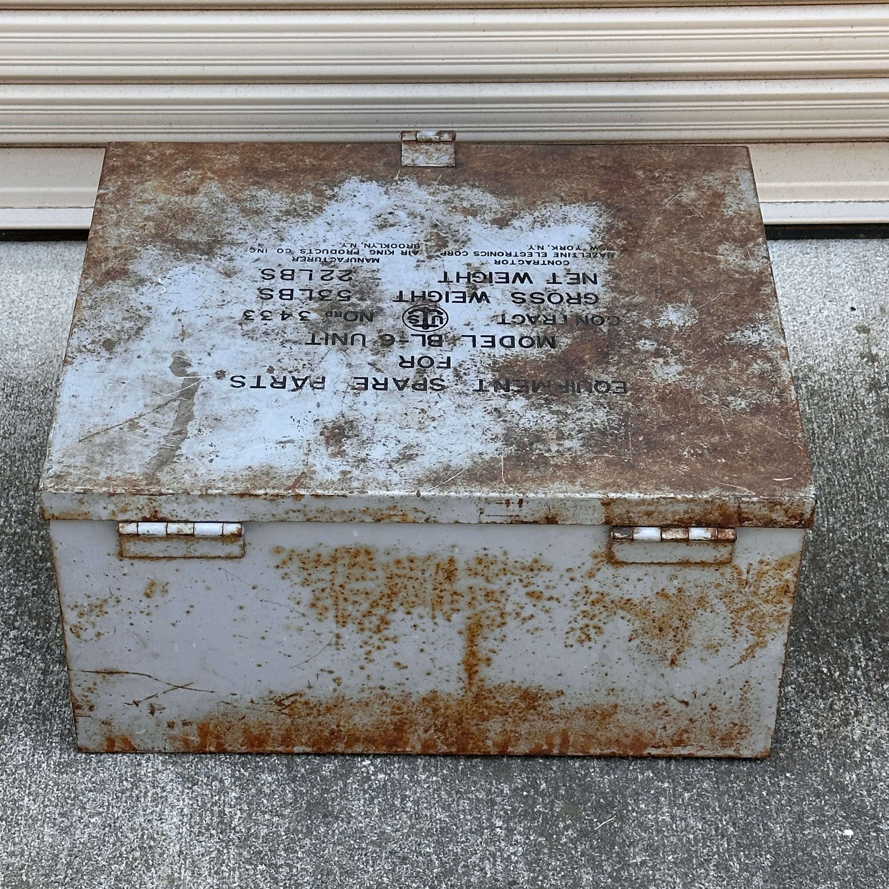 アメリカ軍で使用されていた、通信機器等のスペアパーツ(MODEL BL-6 UNIT)を収納するためのスチール製ミリタリーボックスです。