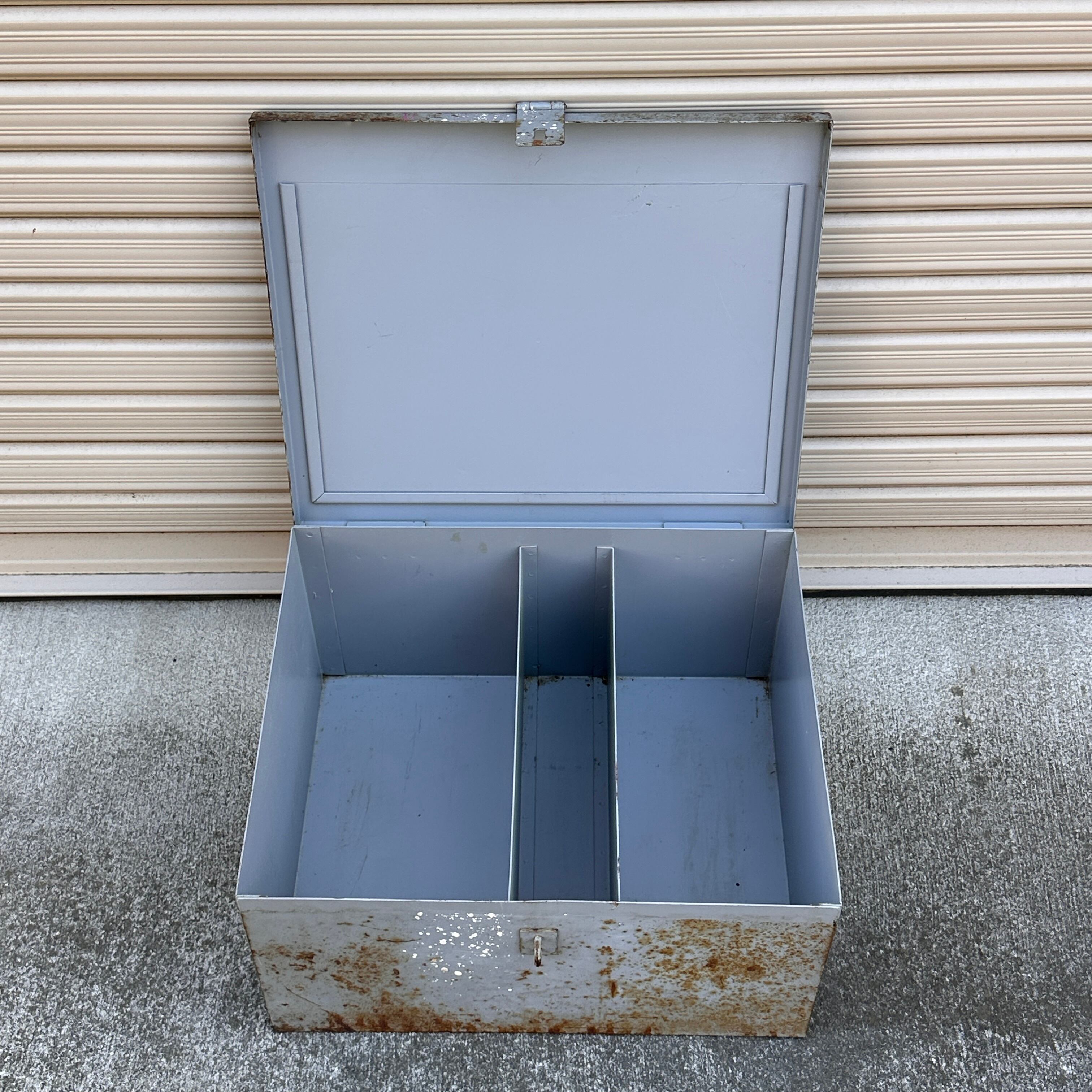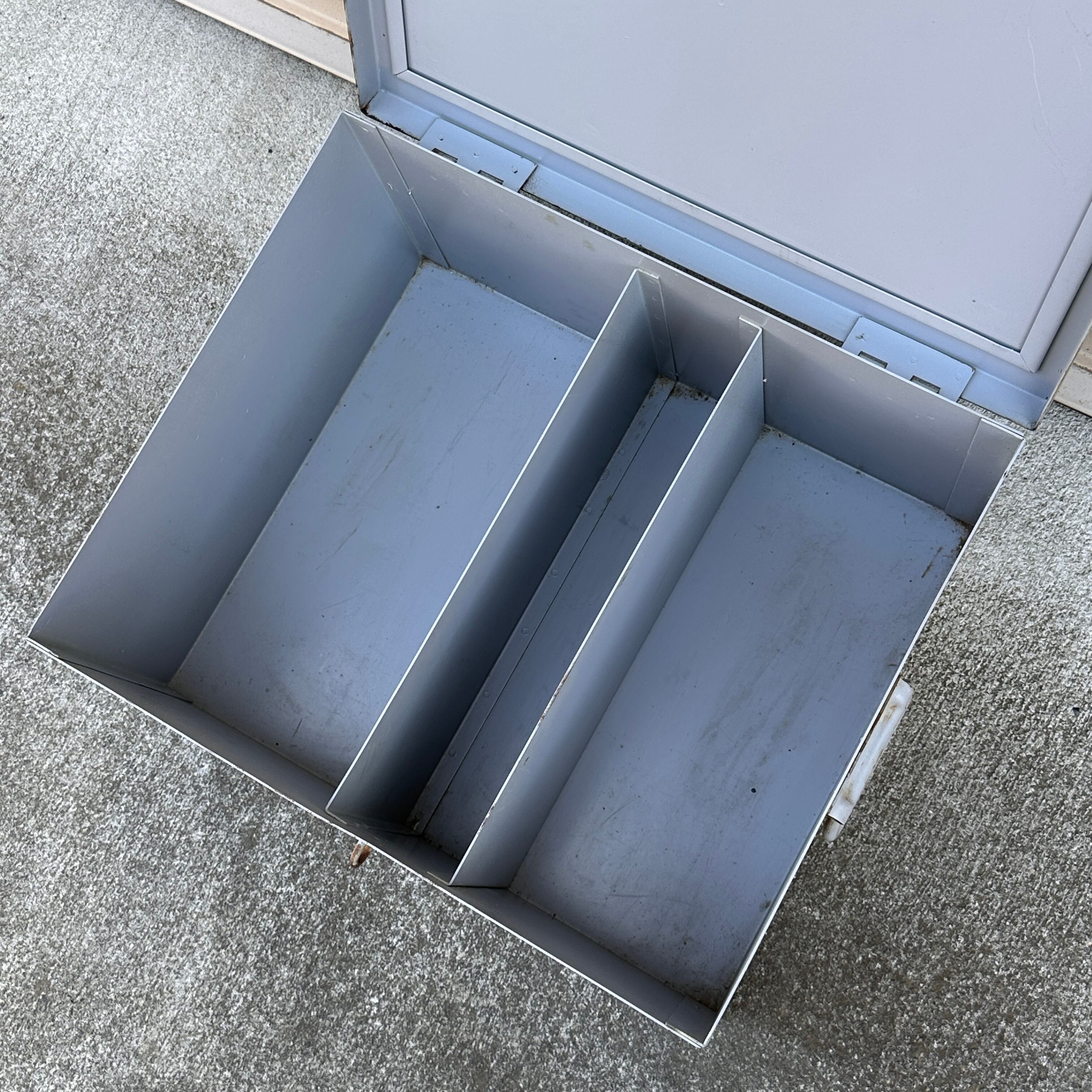 無骨なデザインを活かし、ガレージやインダストリアルなインテリアの主役として小物入れやディスプレイに最適です。また、スチール製で非常に頑丈な造りのため、キャンプギアの収納やペグケースといったアウトドアシーンでも、ハードな使用に耐える頼もしい相棒となります。実用的なDIYの工具箱(ツールボックス)としても使い勝手が良く、置くだけで空間にヴィンテージな雰囲気をプラスしてくれるアイテムです。