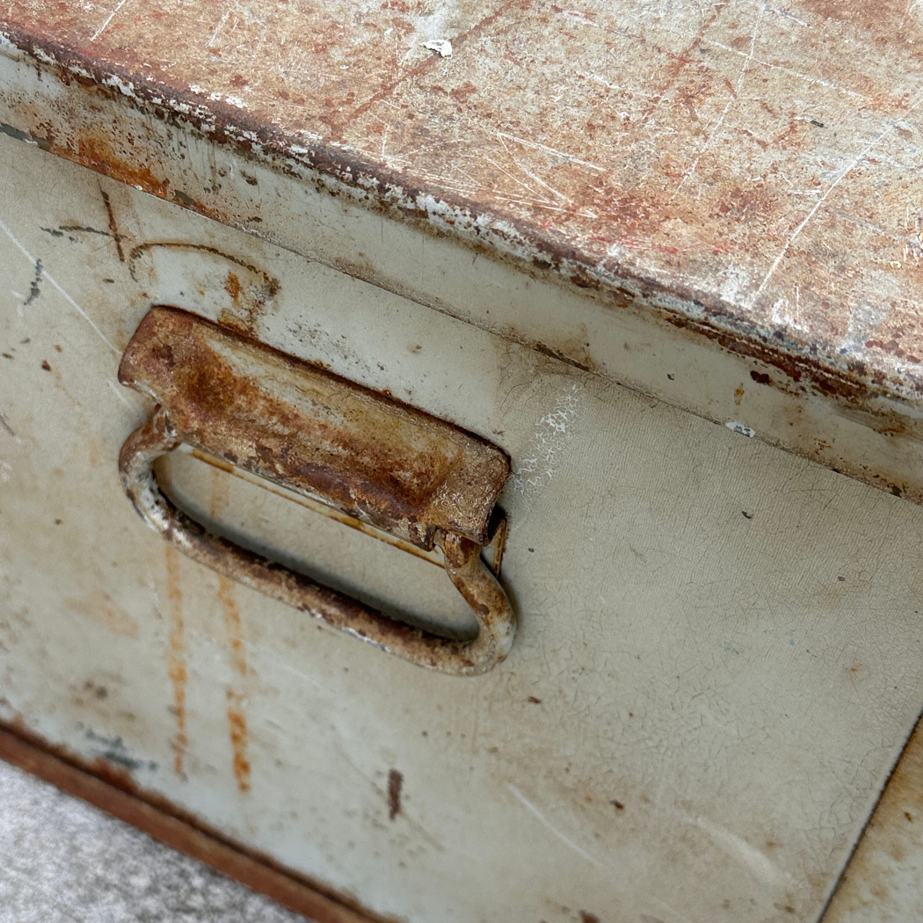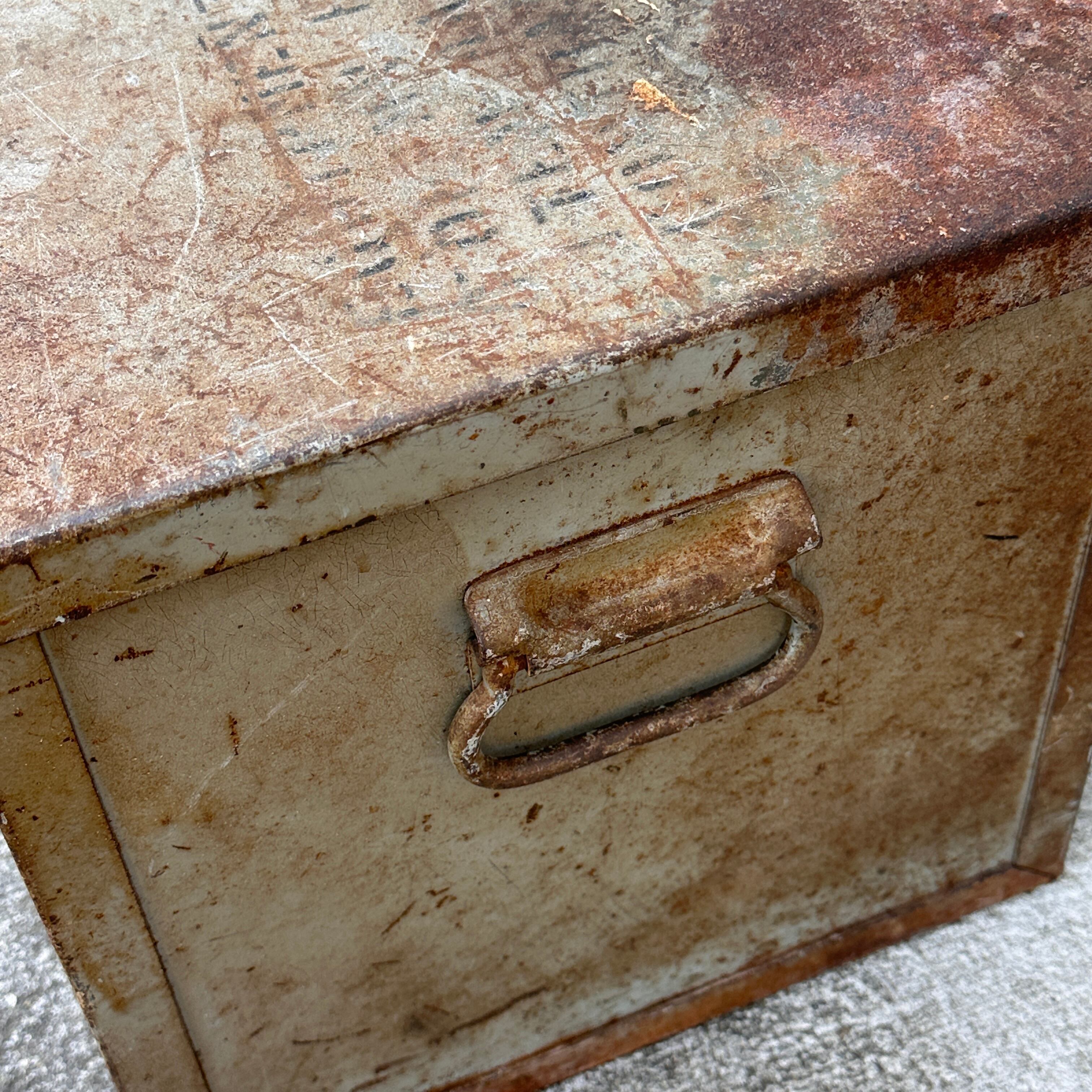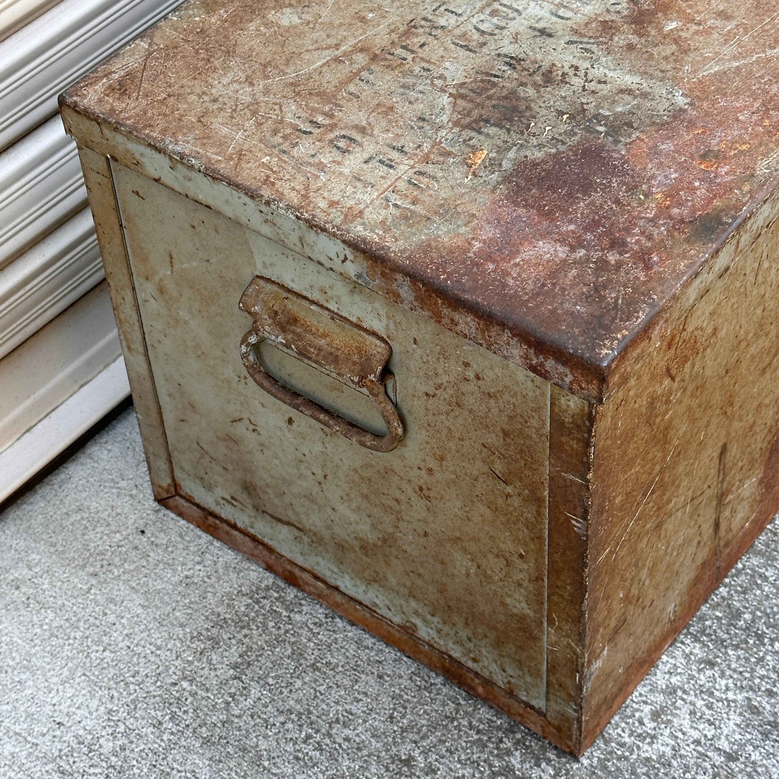 無骨なデザインを活かし、ガレージやインダストリアルなお部屋の主役として、小物入れやディスプレイに最適です。また、素材は非常に頑丈なヘビーデューティースチール(鋼鉄)製のため、キャンプでのペグケースや焚き火道具入れとしても、ハードな使用に耐える頼もしい相棒となります。置くだけで空間にヴィンテージな深みを与えてくれるアイテムです。