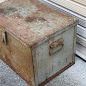 アメリカ軍で実際に使用されていた、通信機器(MODEL BL-6)用のスペアパーツ収納用スチールボックスです。ミリタリーファンの間で「アンモボックス(弾薬箱)」として親しまれている形状で、現行のレプリカ品には絶対に出せない圧倒的な存在感を放っています。
